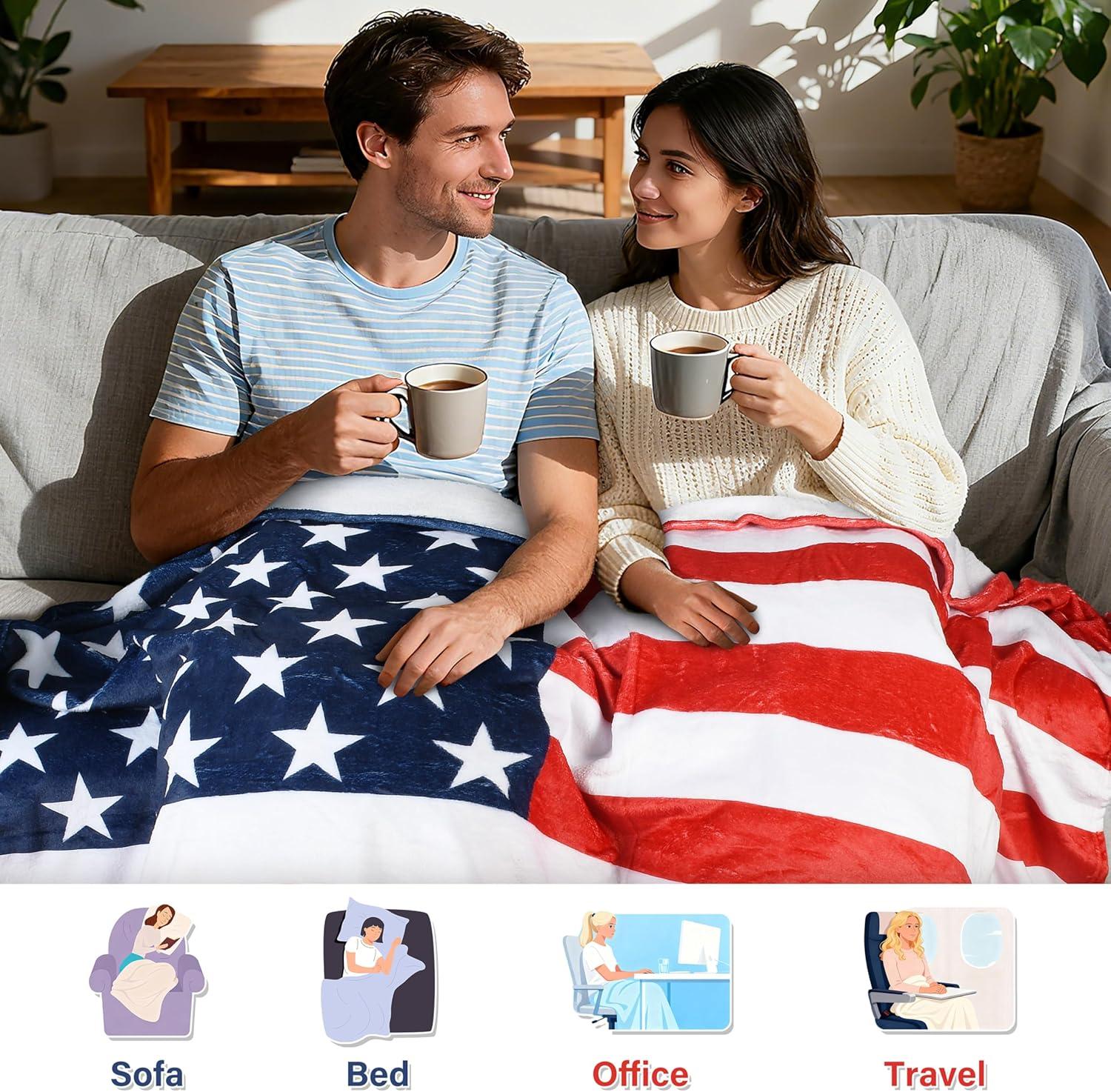 Catalonia American Flag Blanket – Soft & Cozy USA Patriotic Throw for 4th of July, Independence Day, Memorial Day, Veterans – Gift for Men, Women, US Citizenship Ceremonies