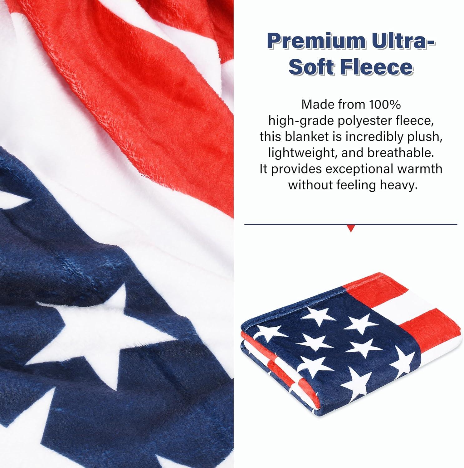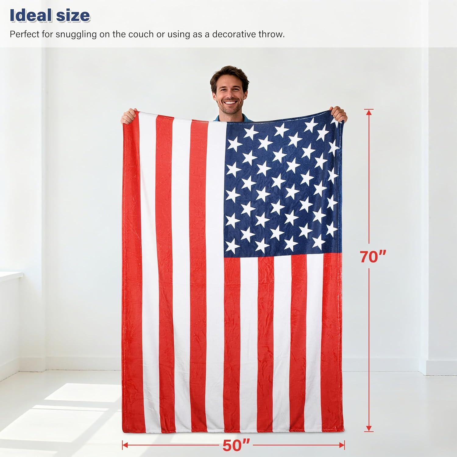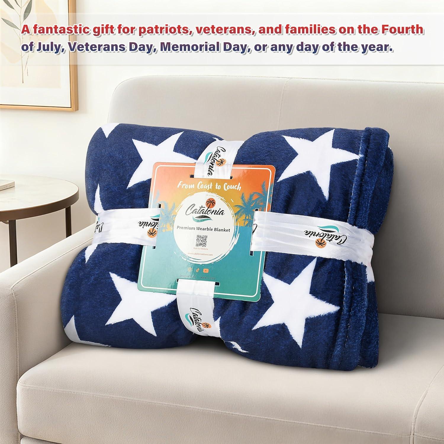 Catalonia American Flag Blanket - Soft & Cozy USA Patriotic Throw for 4th of July, Independence Day, Memorial Day, Veterans - Gift for Men, Women, US Citizenship Ceremonies