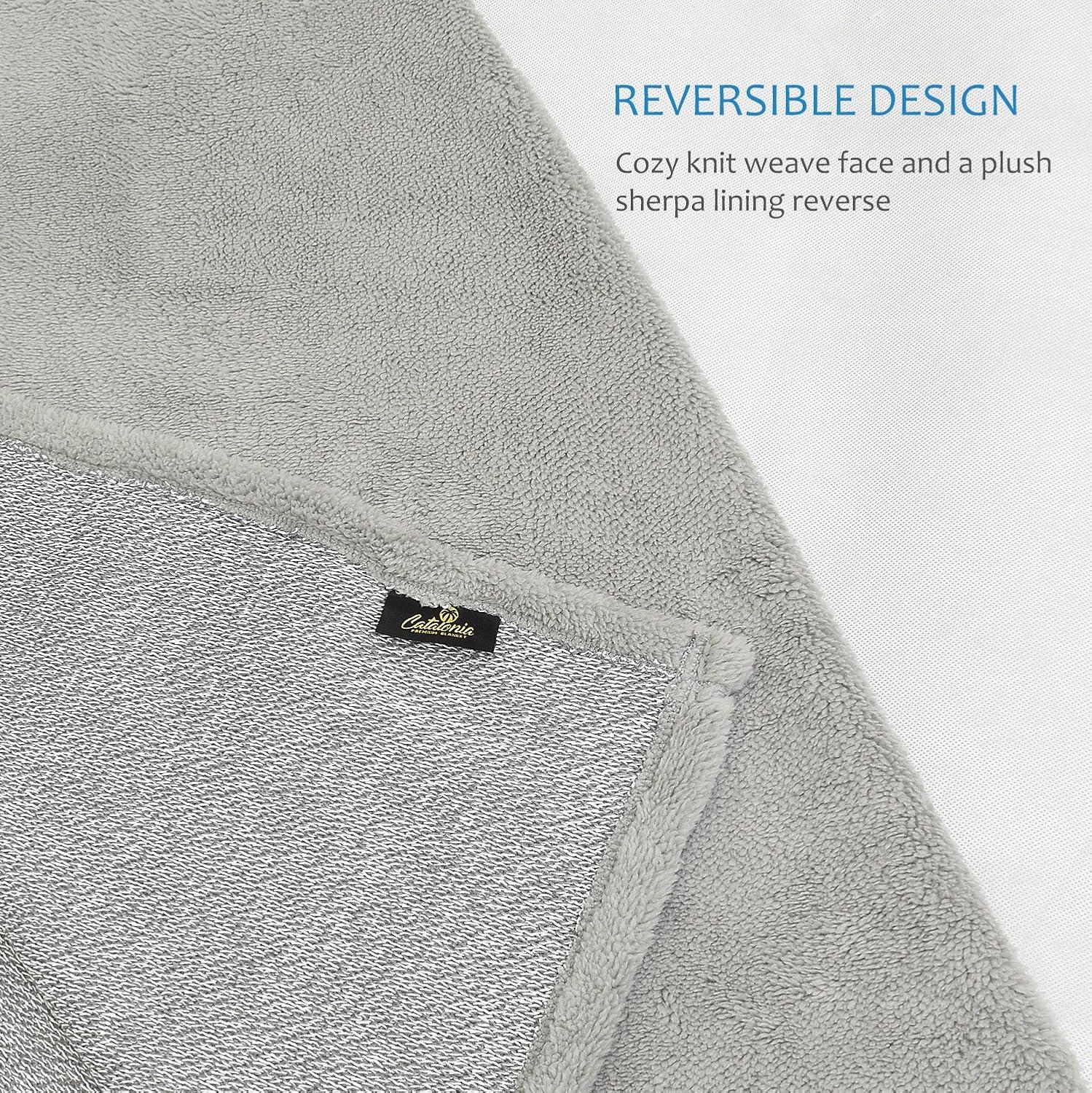 imageCatalonia Cable Knit Throw Blanket Reversible Soft Pom Pom Throws Warm Crochet Sweater Blanket with Gift Box for Bed Couch Travelling 60x50 BrownLight Gray