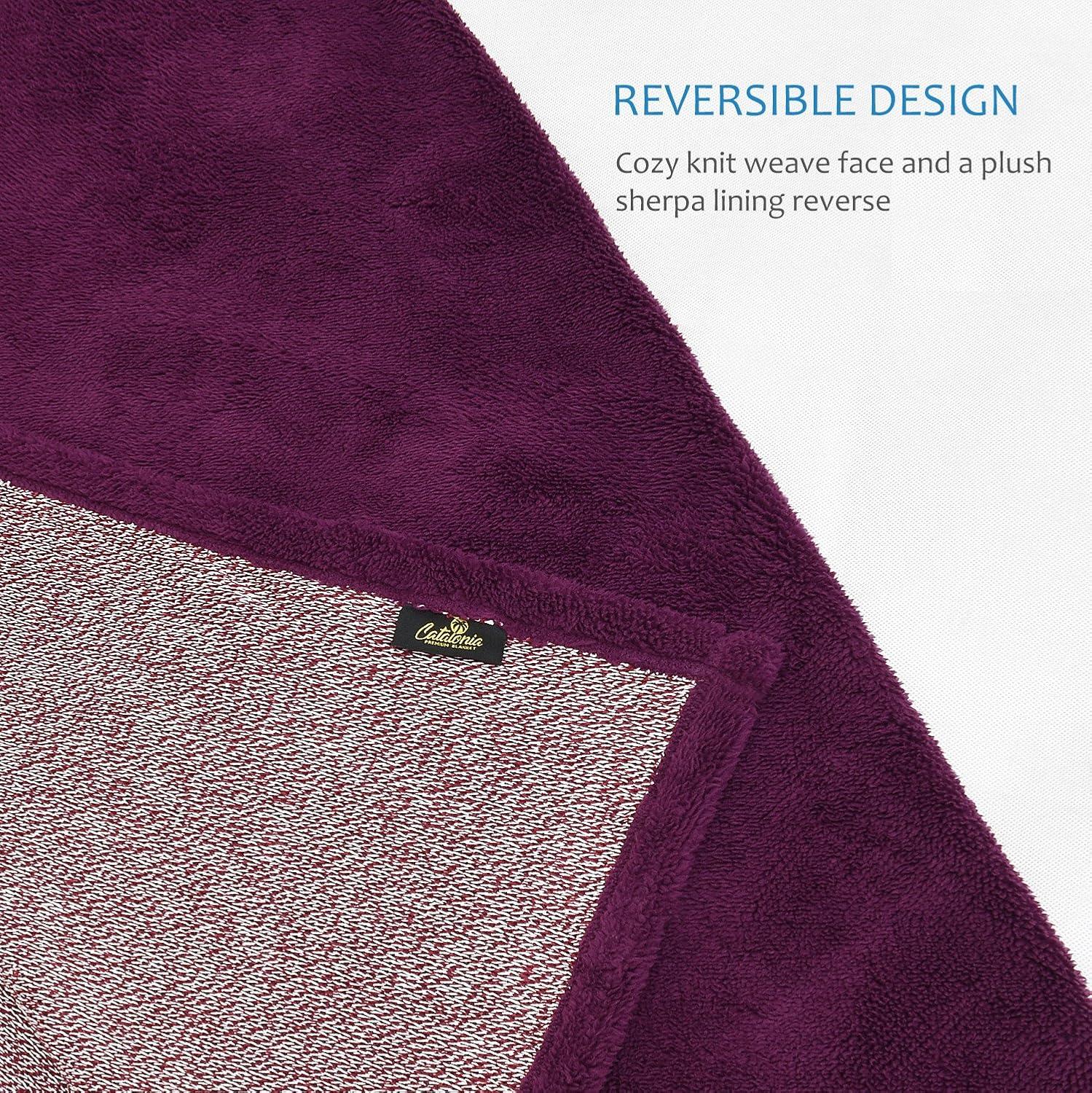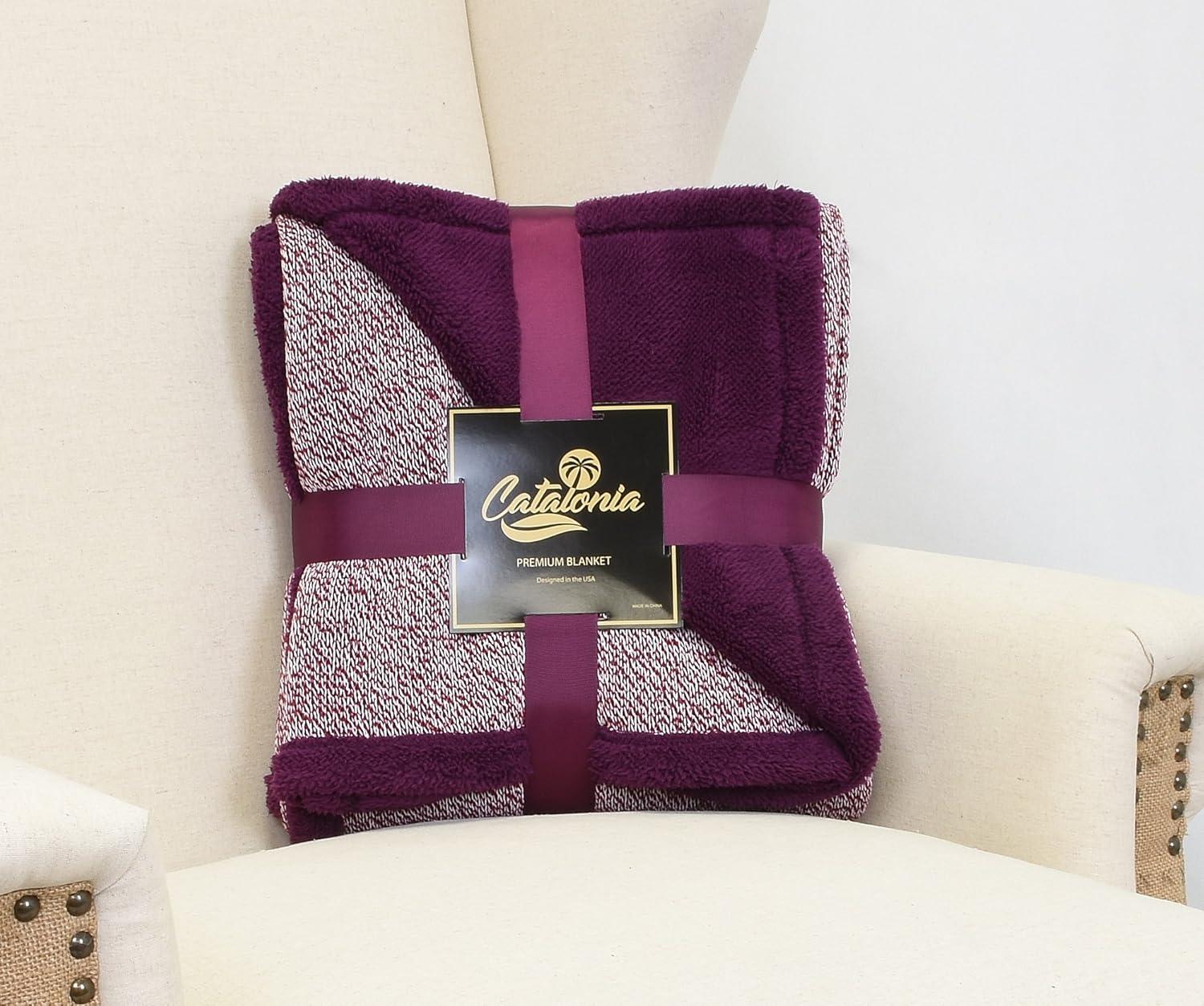 imageCatalonia Cable Knit Throw Blanket Reversible Soft Pom Pom Throws Warm Crochet Sweater Blanket with Gift Box for Bed Couch Travelling 60x50 BrownWine