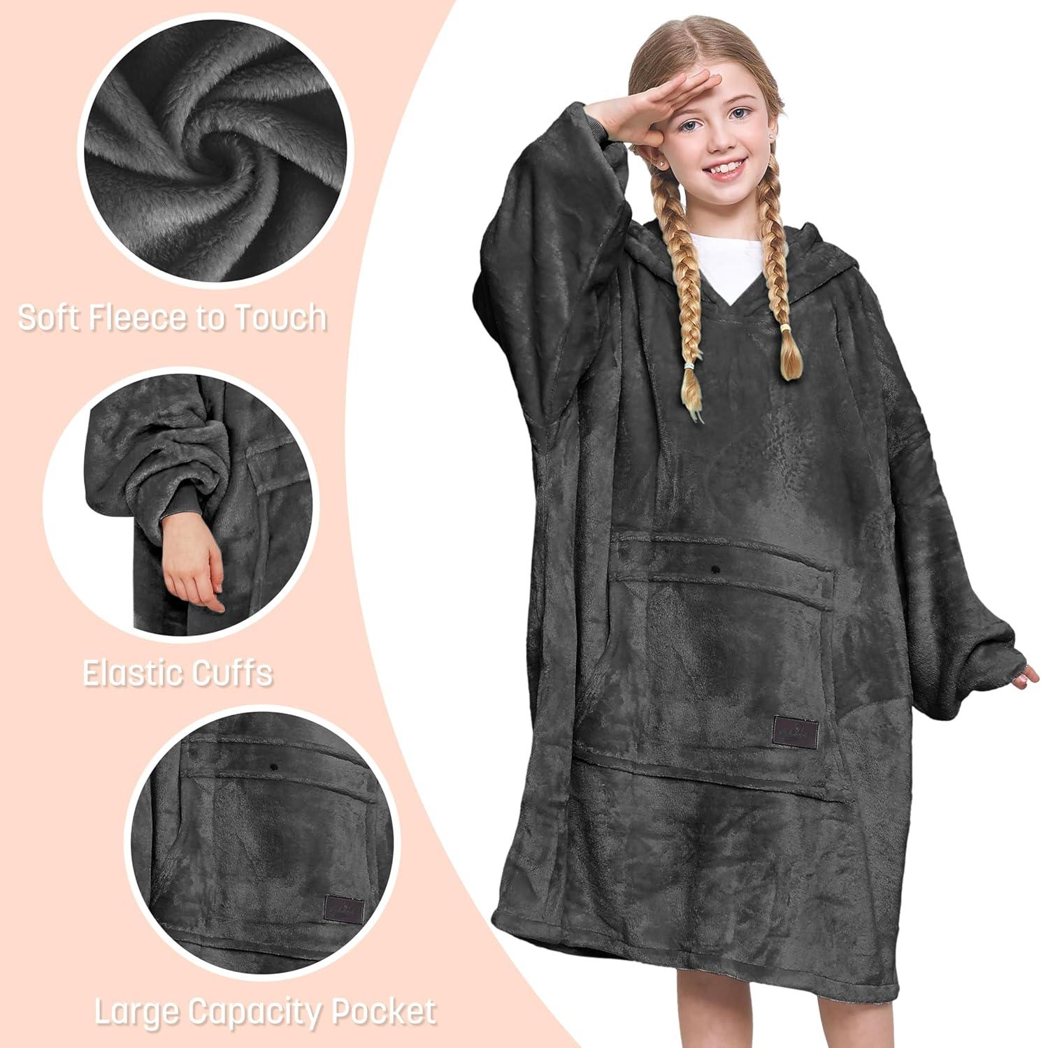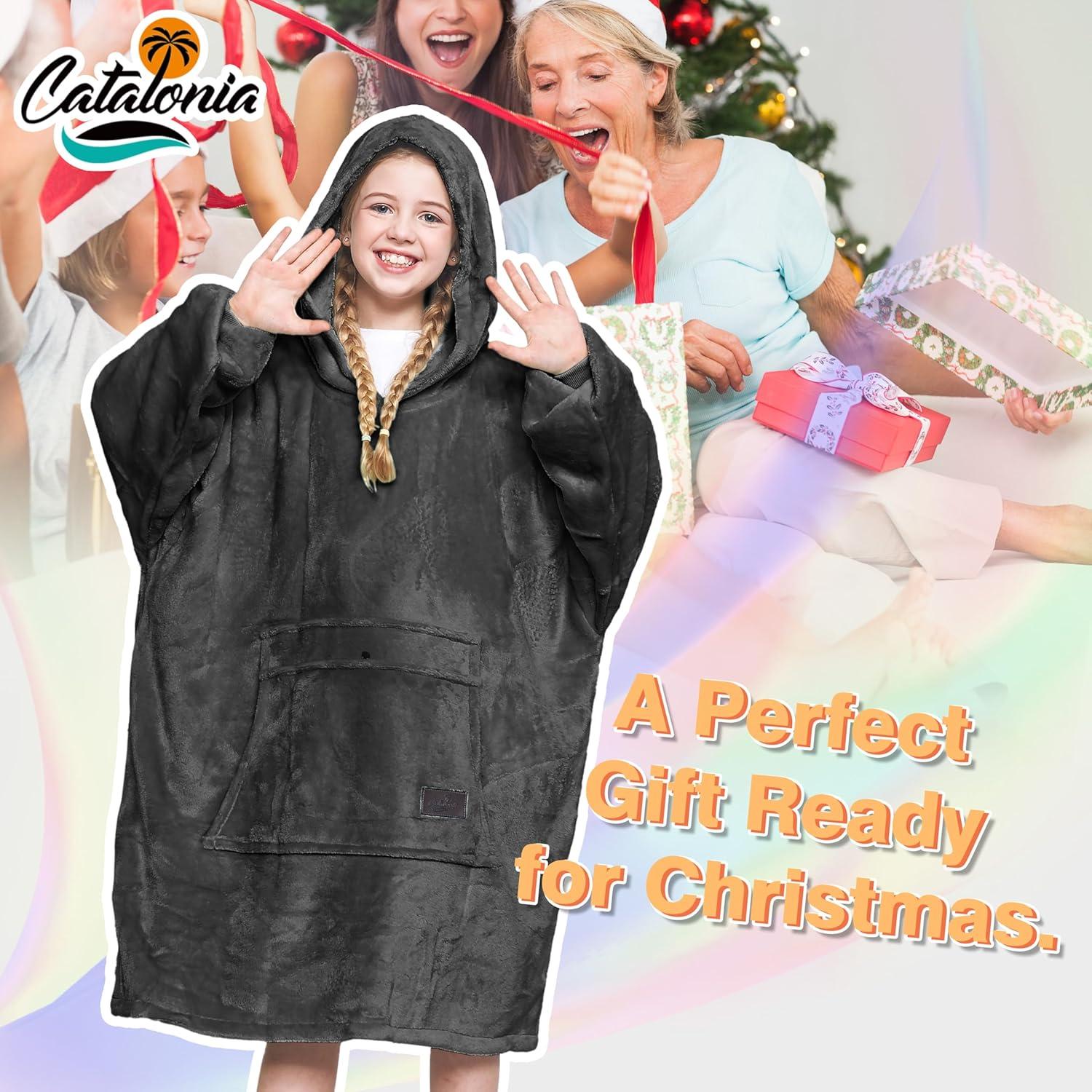 Catalonia Galaxy Blanket Hoodie for Kids, Oversized Fleece Blanket Sweatshirt, Warm Cozy Wearable Hooded Pullover for Boys & Girls(Black)