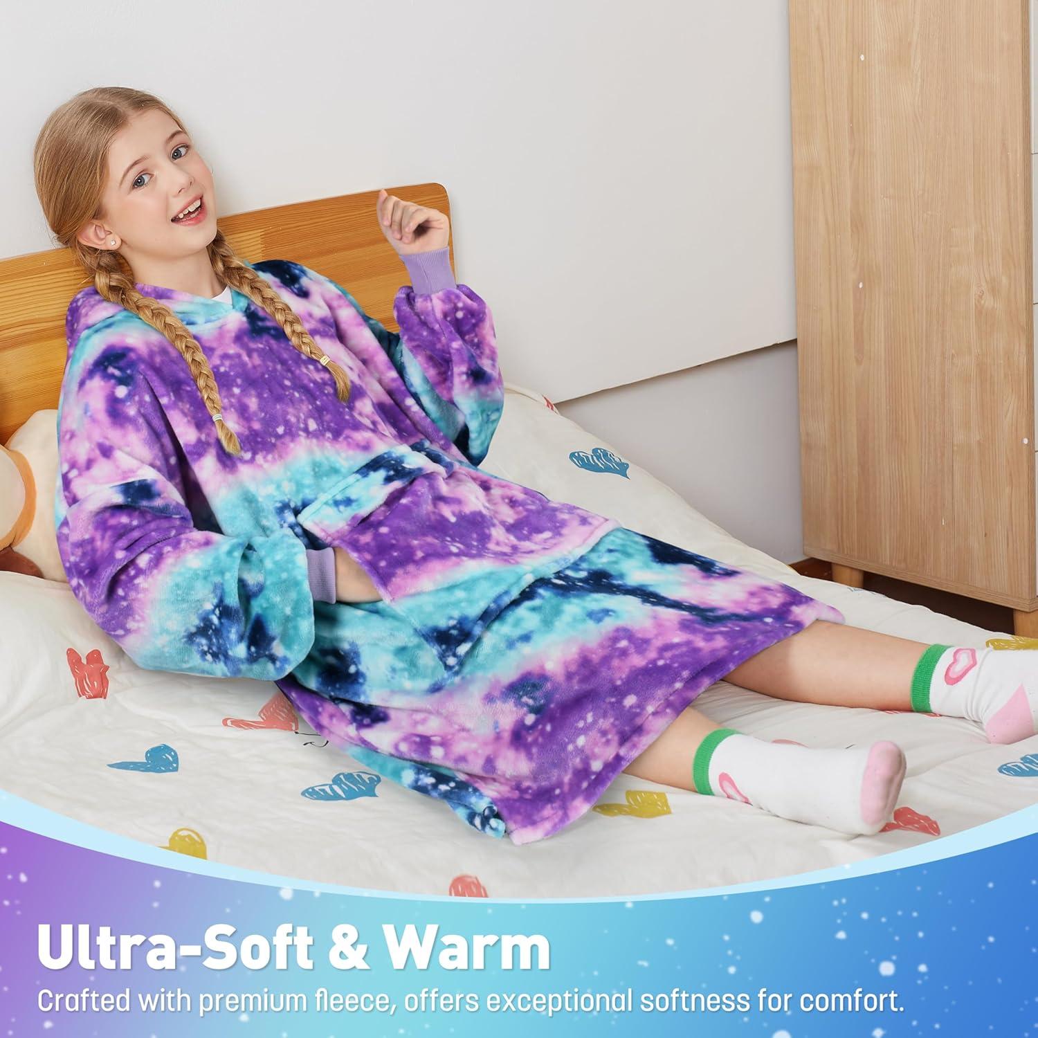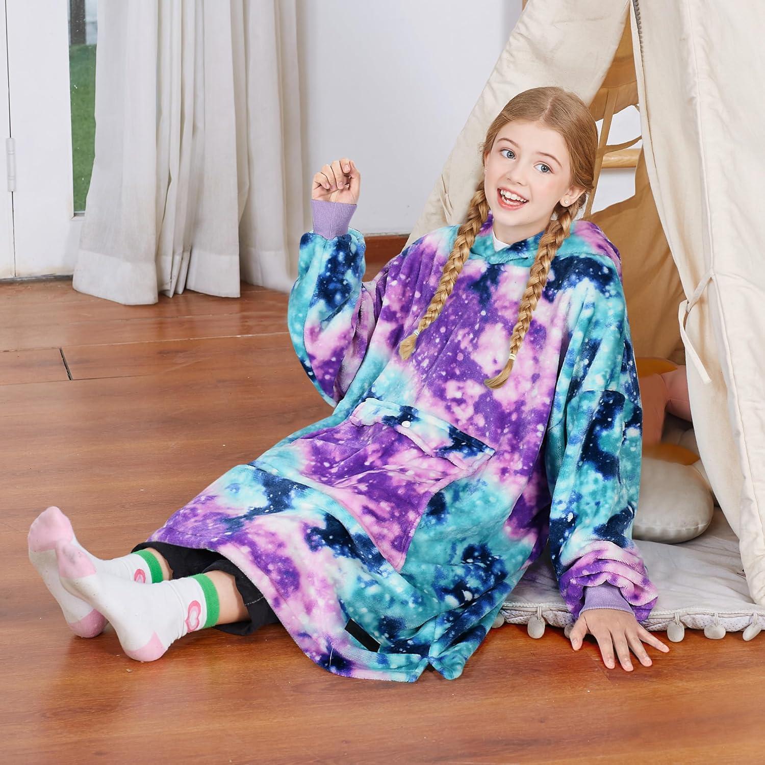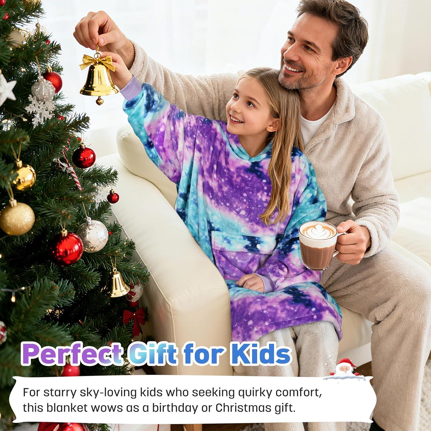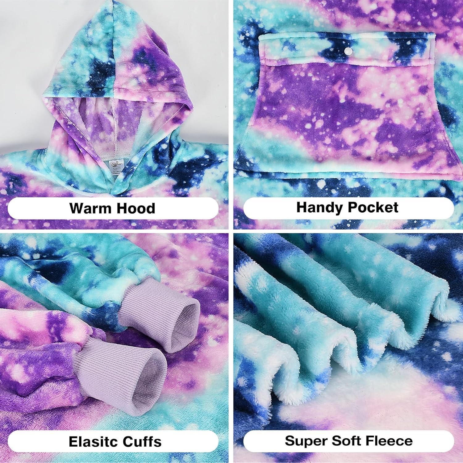 Catalonia Galaxy Blanket Hoodie for Kids, Oversized Fleece Blanket Sweatshirt, Warm Cozy Wearable Hooded Pullover for Boys & Girls(Galaxy)