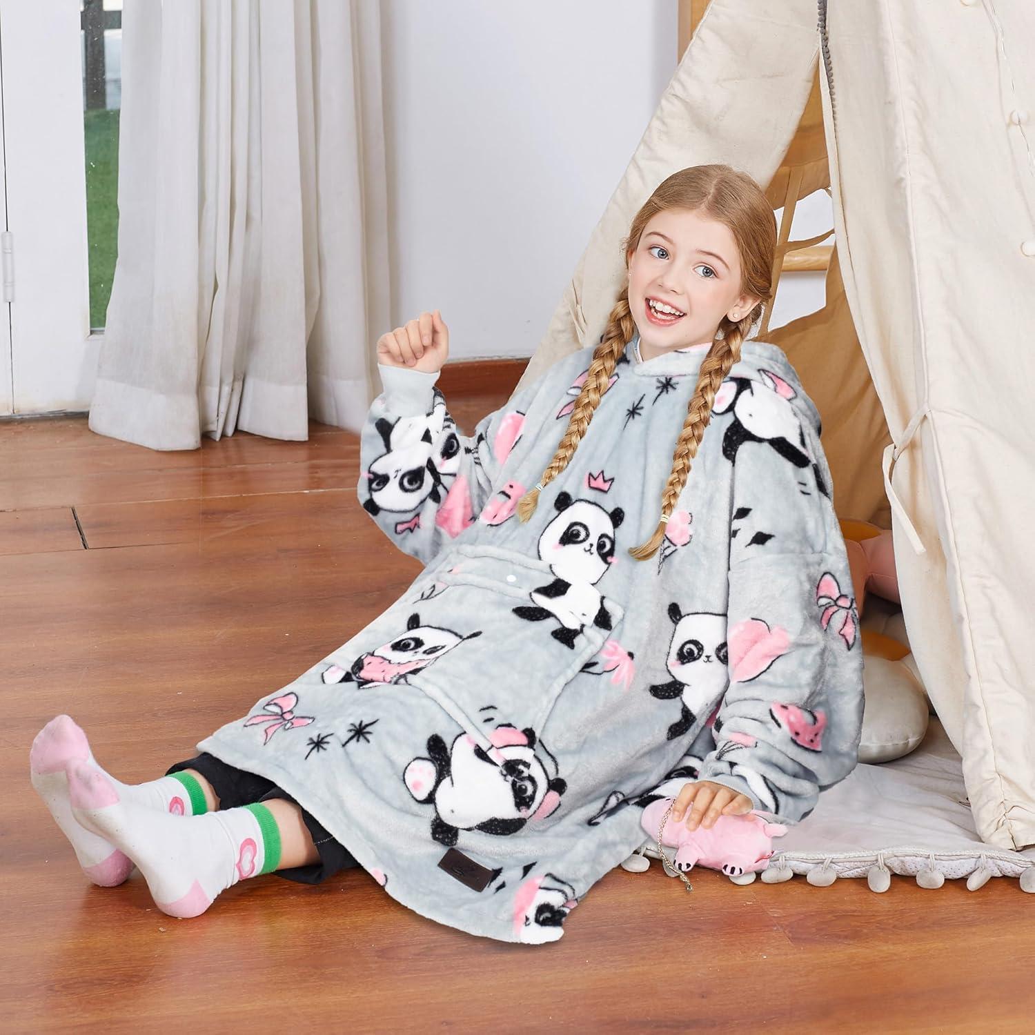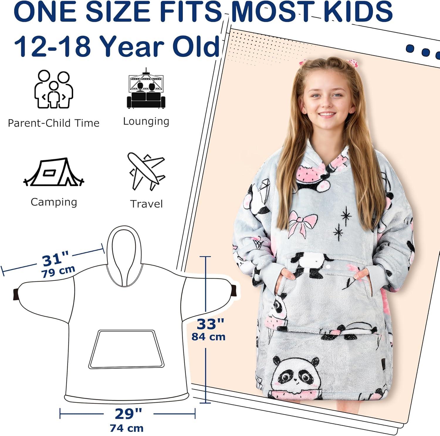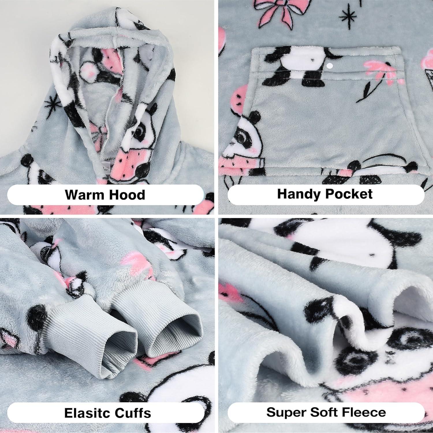 Catalonia Galaxy Blanket Hoodie for Kids, Oversized Fleece Blanket Sweatshirt, Warm Cozy Wearable Hooded Pullover for Boys & Girls(Panda Grey)