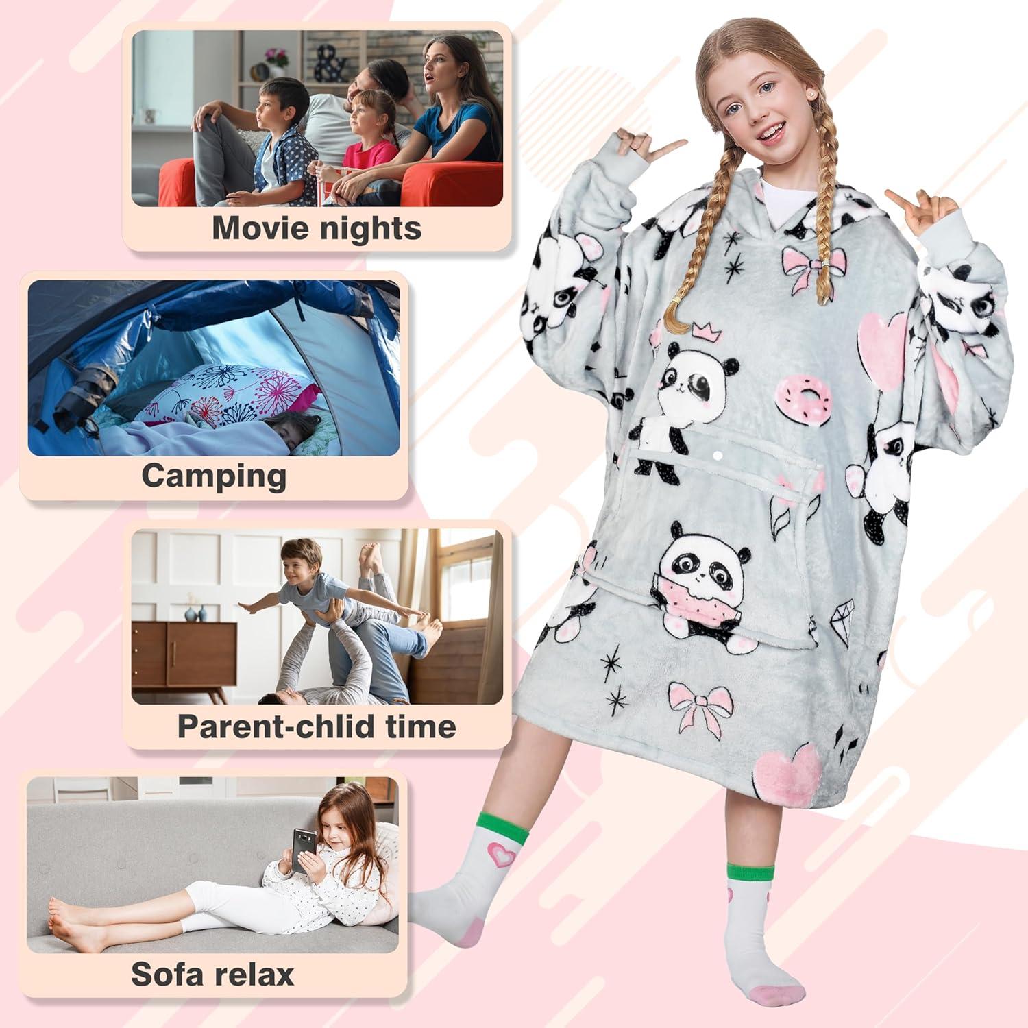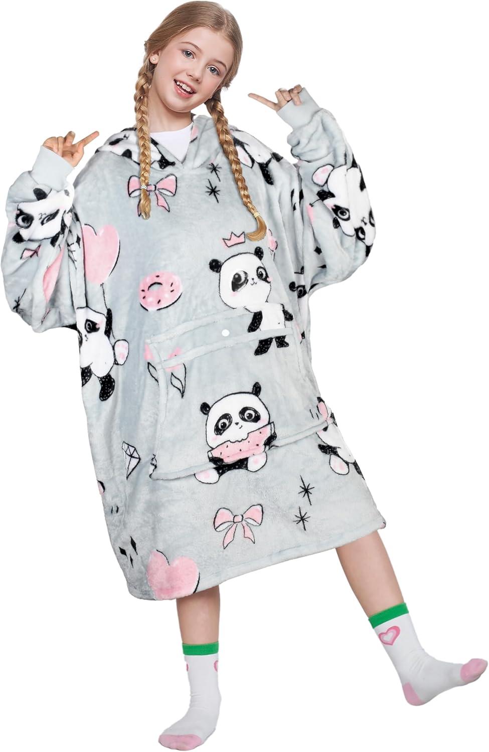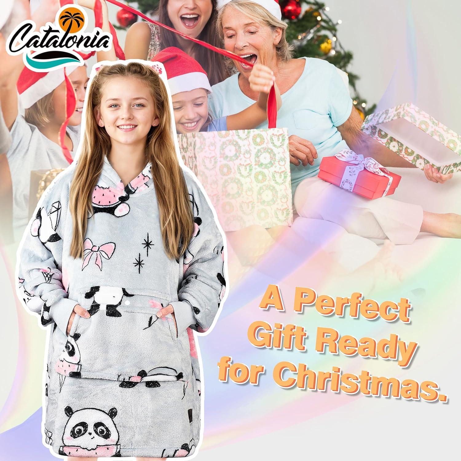 Catalonia Galaxy Blanket Hoodie for Kids, Oversized Fleece Blanket Sweatshirt, Warm Cozy Wearable Hooded Pullover for Boys & Girls(Panda Grey)