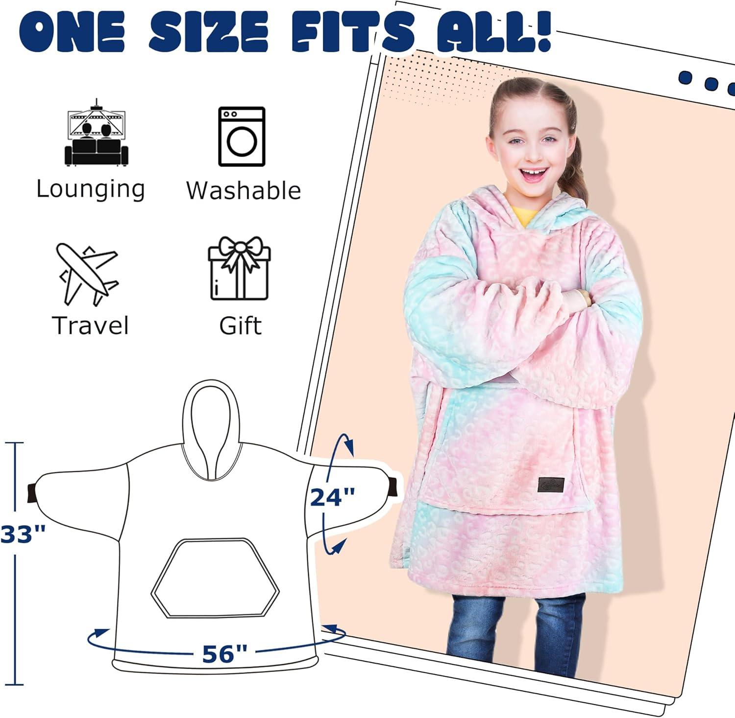 Catalonia Galaxy Blanket Hoodie for Kids, Oversized Fleece Blanket Sweatshirt, Warm Cozy Wearable Hooded Pullover for Boys & Girls(Rainbow Unicorn)