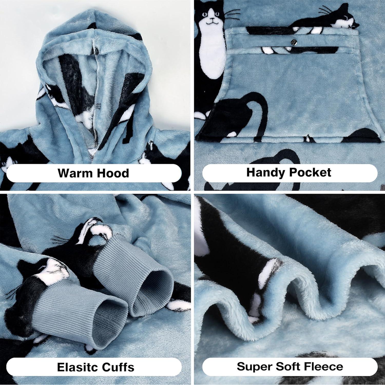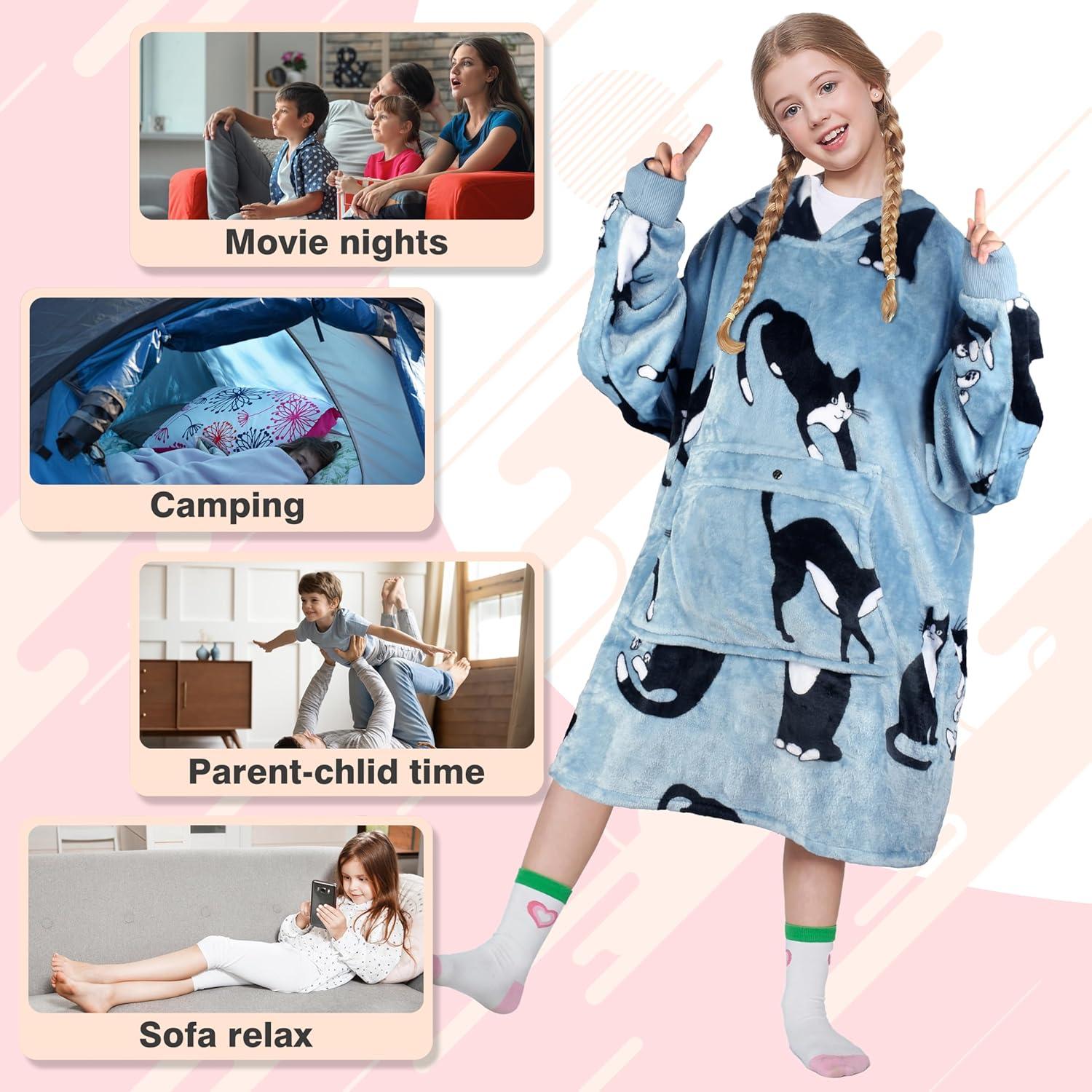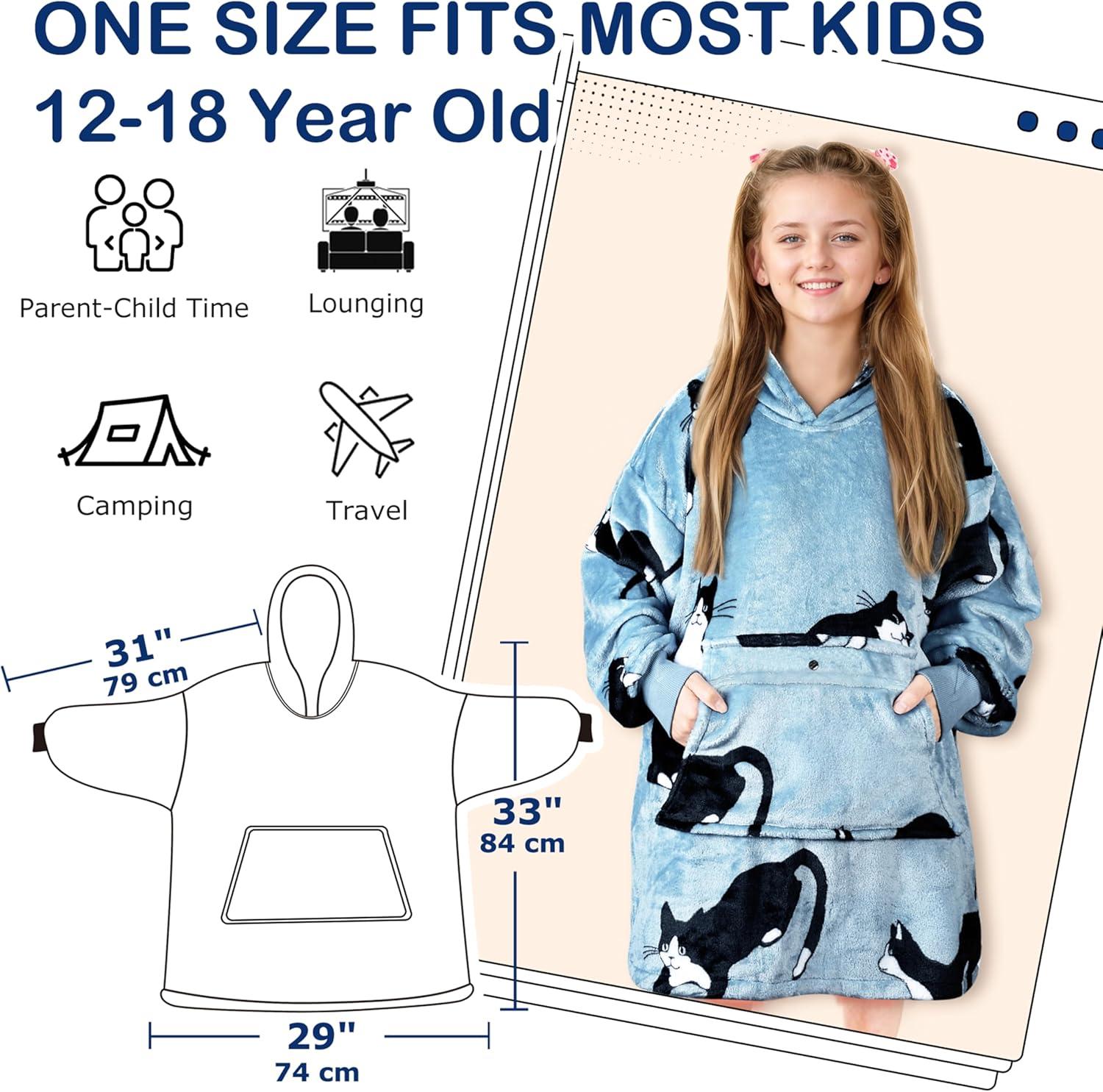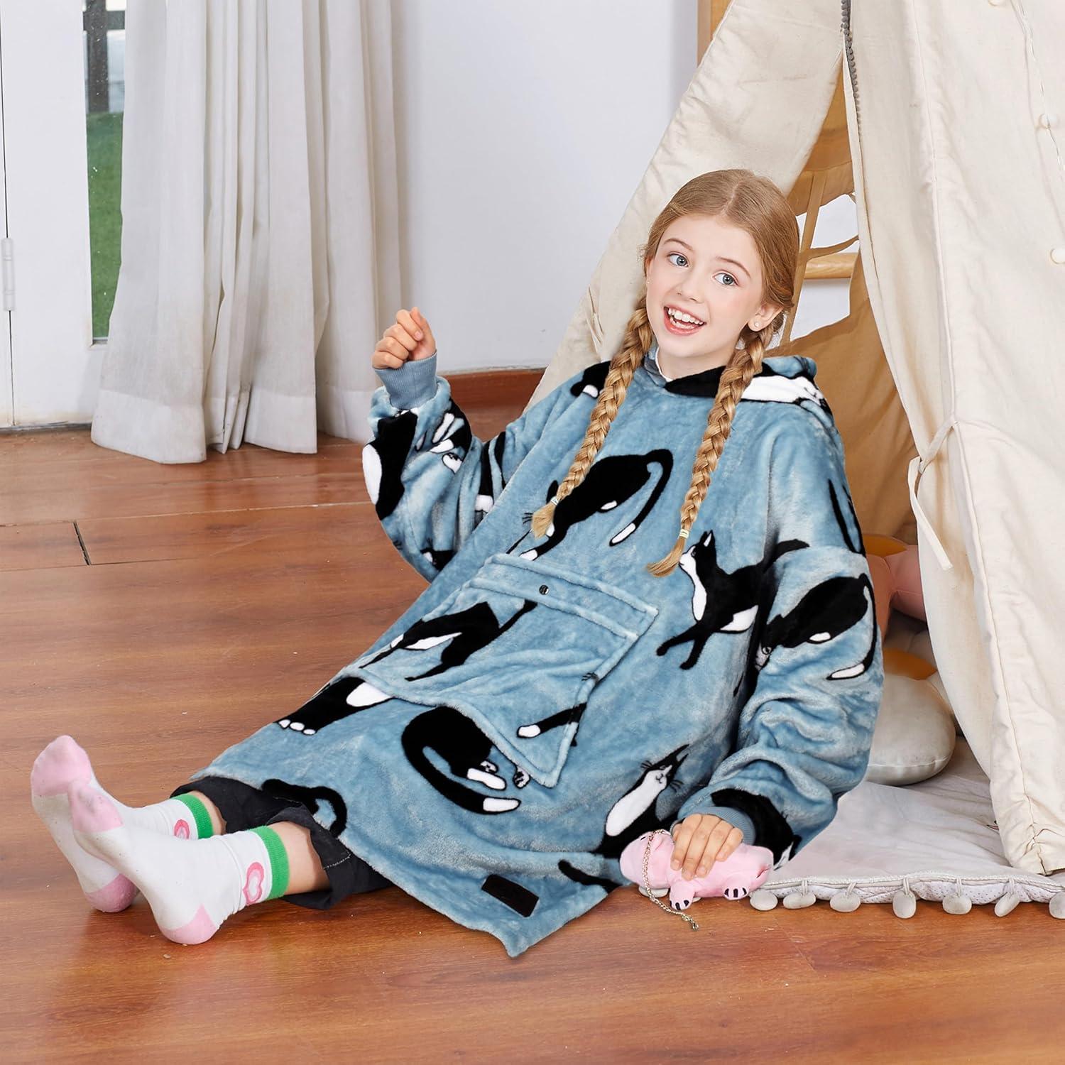 Catalonia Galaxy Blanket Hoodie for Kids, Oversized Fleece Blanket Sweatshirt, Warm Cozy Wearable Hooded Pullover for Boys & Girls(Wondercat Grey)