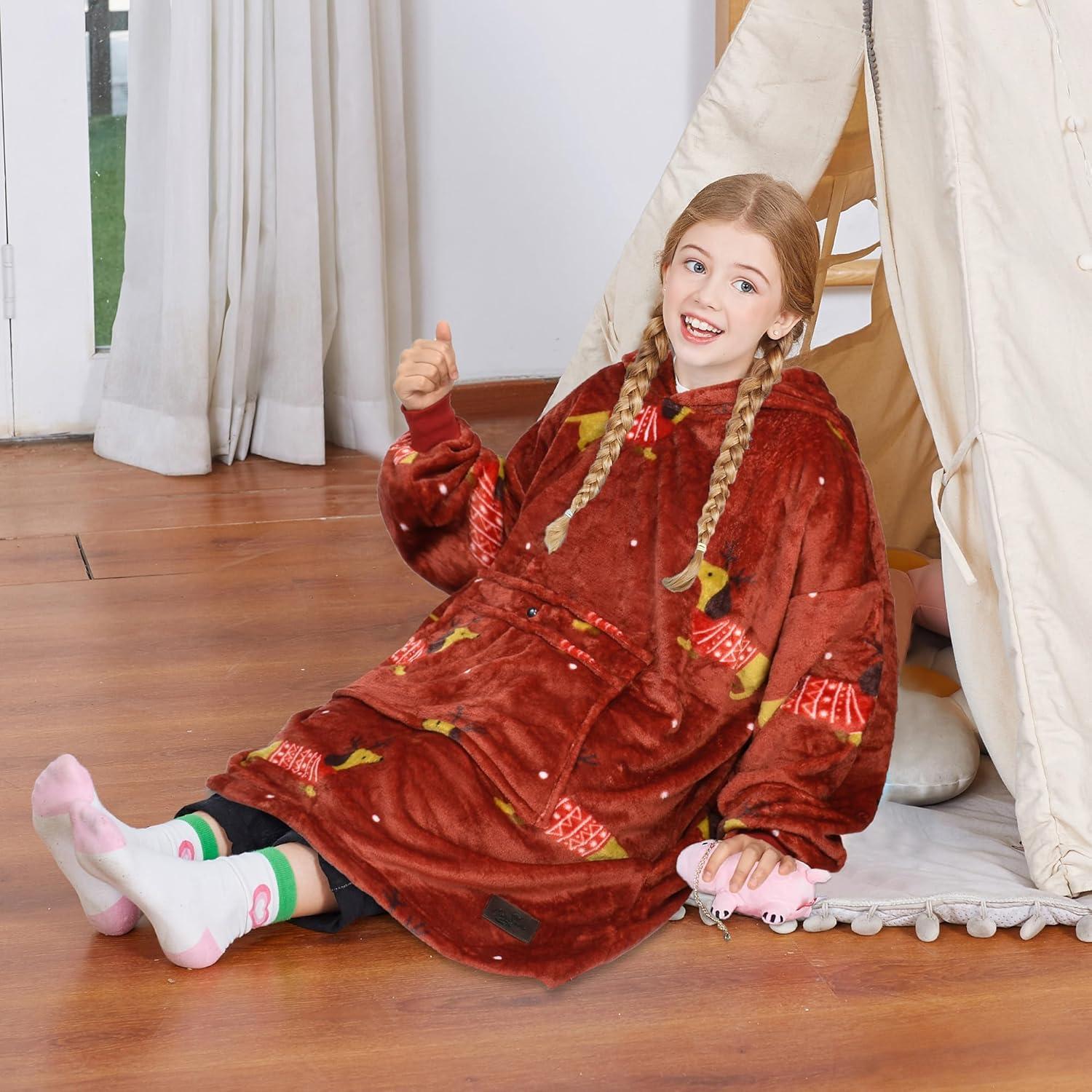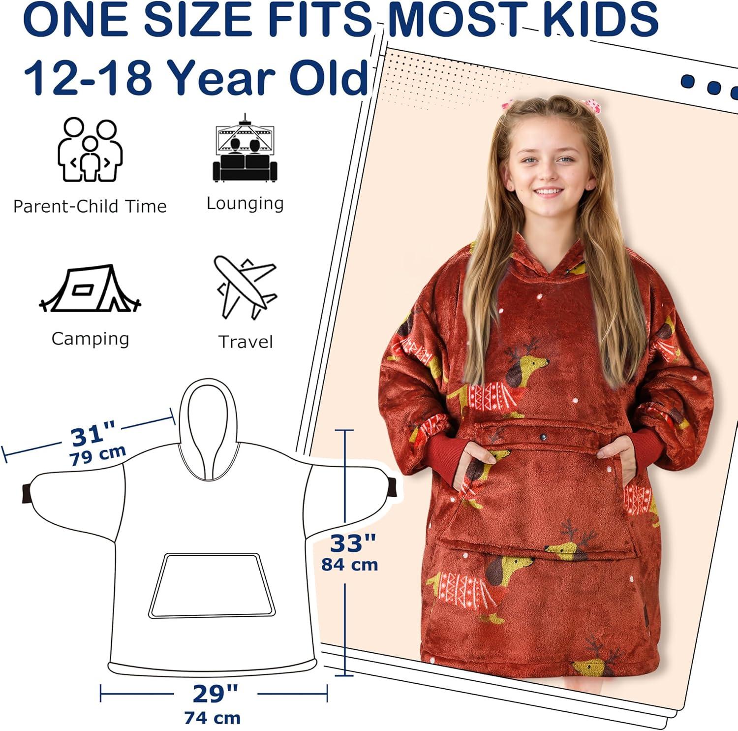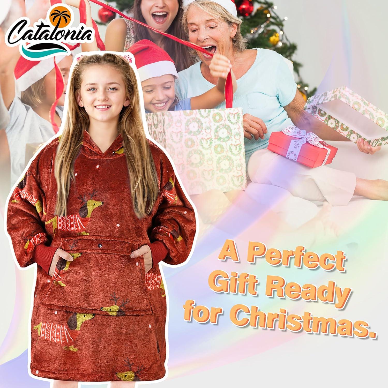 Catalonia Galaxy Blanket Hoodie for Kids, Oversized Fleece Blanket Sweatshirt, Warm Cozy Wearable Hooded Pullover for Boys & Girls(Xmas)