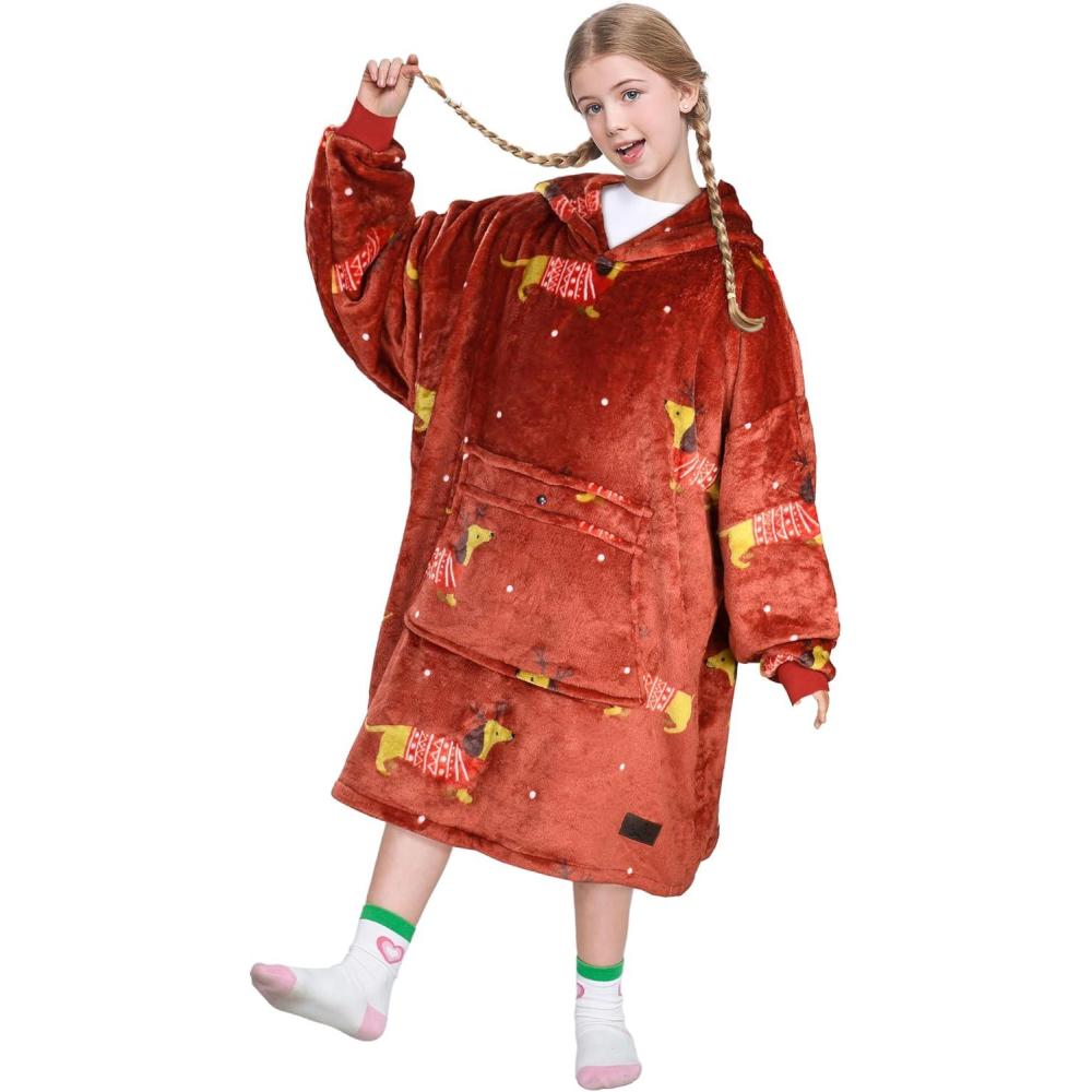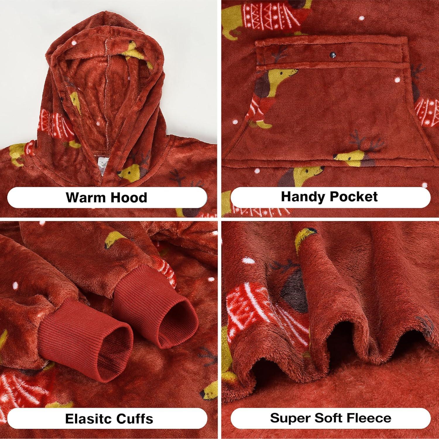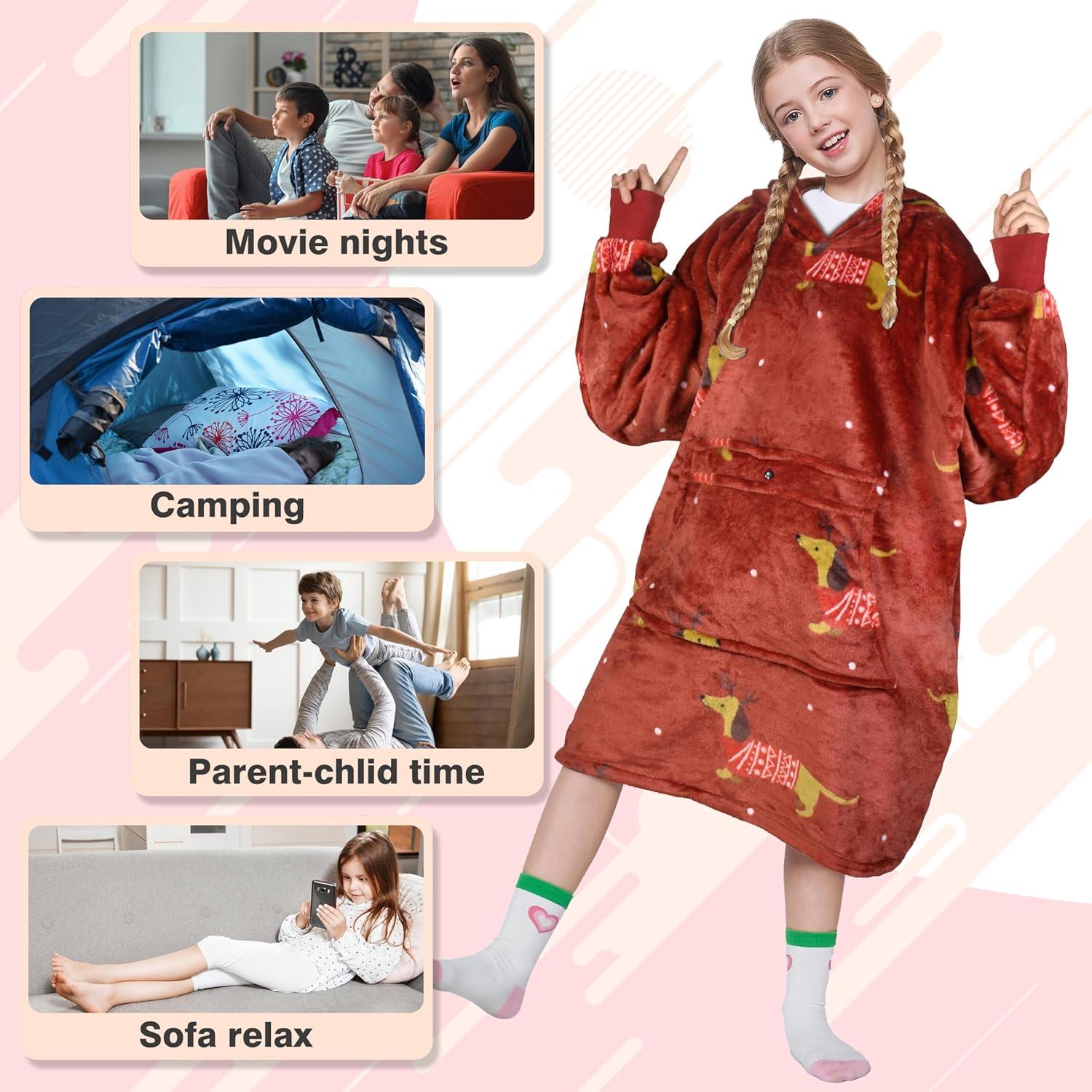 Catalonia Galaxy Blanket Hoodie for Kids, Oversized Fleece Blanket Sweatshirt, Warm Cozy Wearable Hooded Pullover for Boys & Girls(Xmas Dachshund Wine)