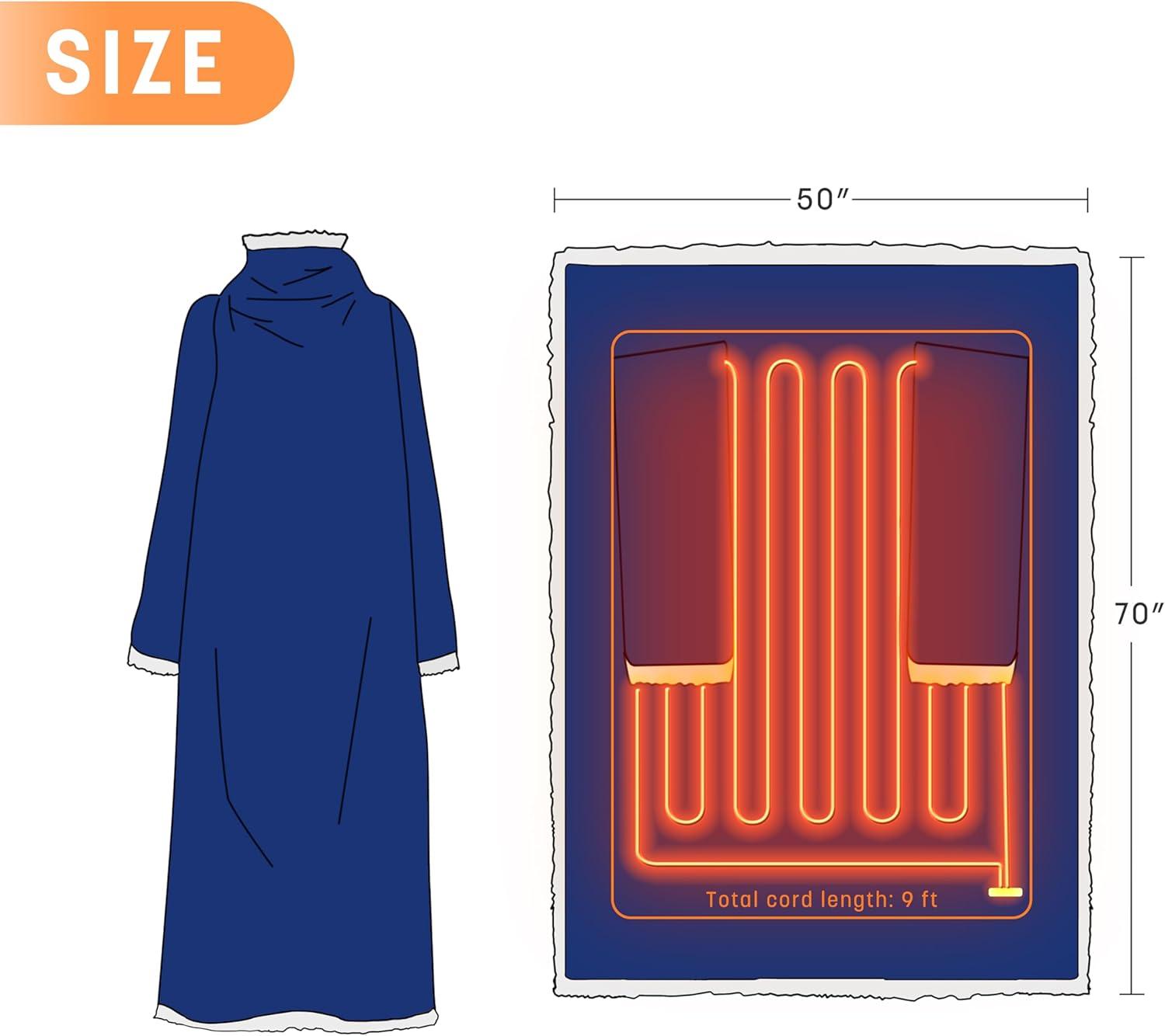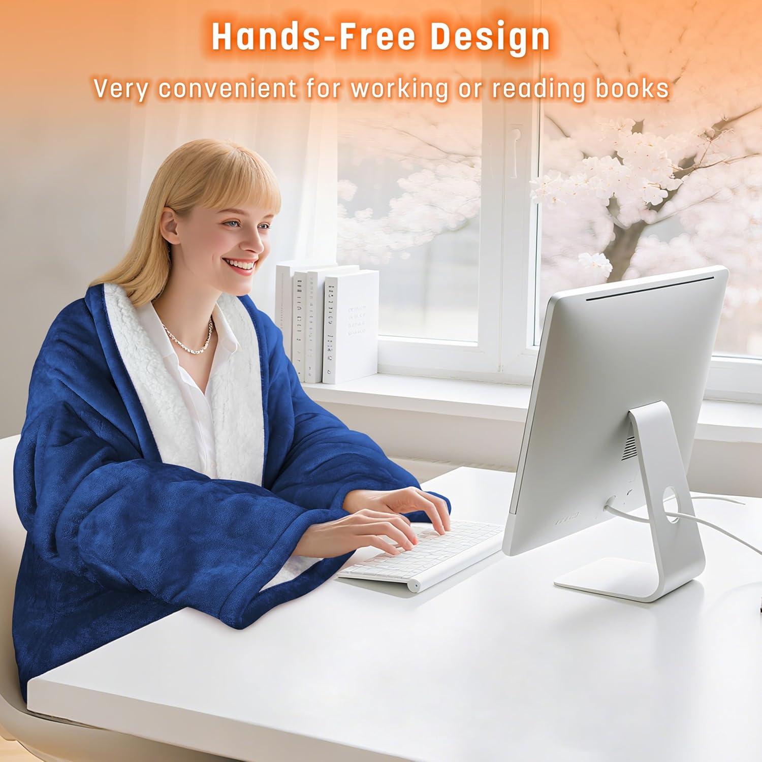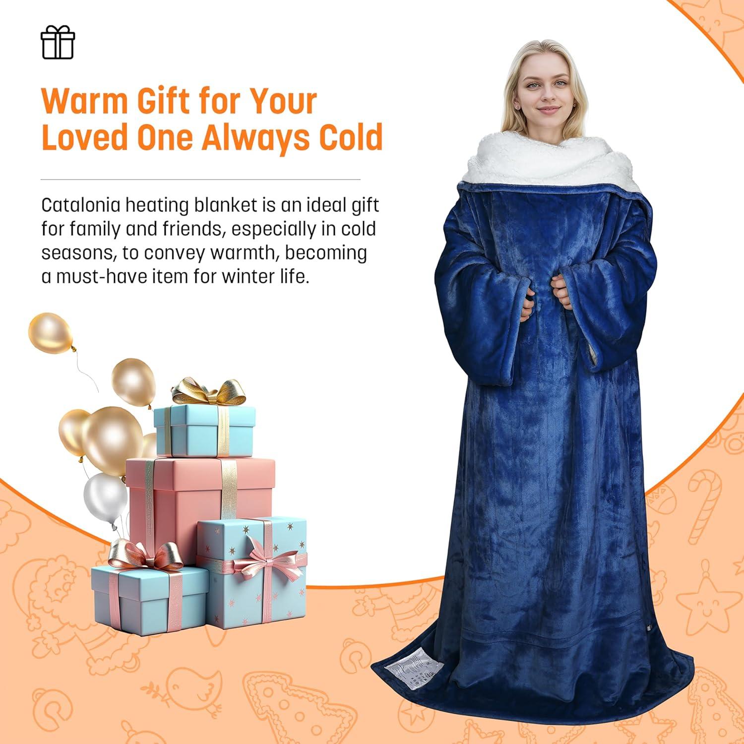 Catalonia Heated Blanket with Sleeves, Electric Snuggly Blanket for Women Men, Wearable Wired Heating Throw Blanket,Cold Gift(Blue)