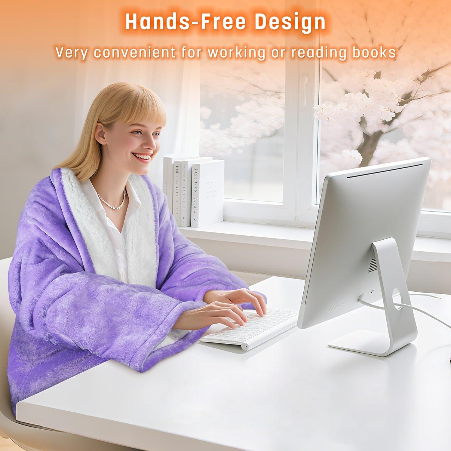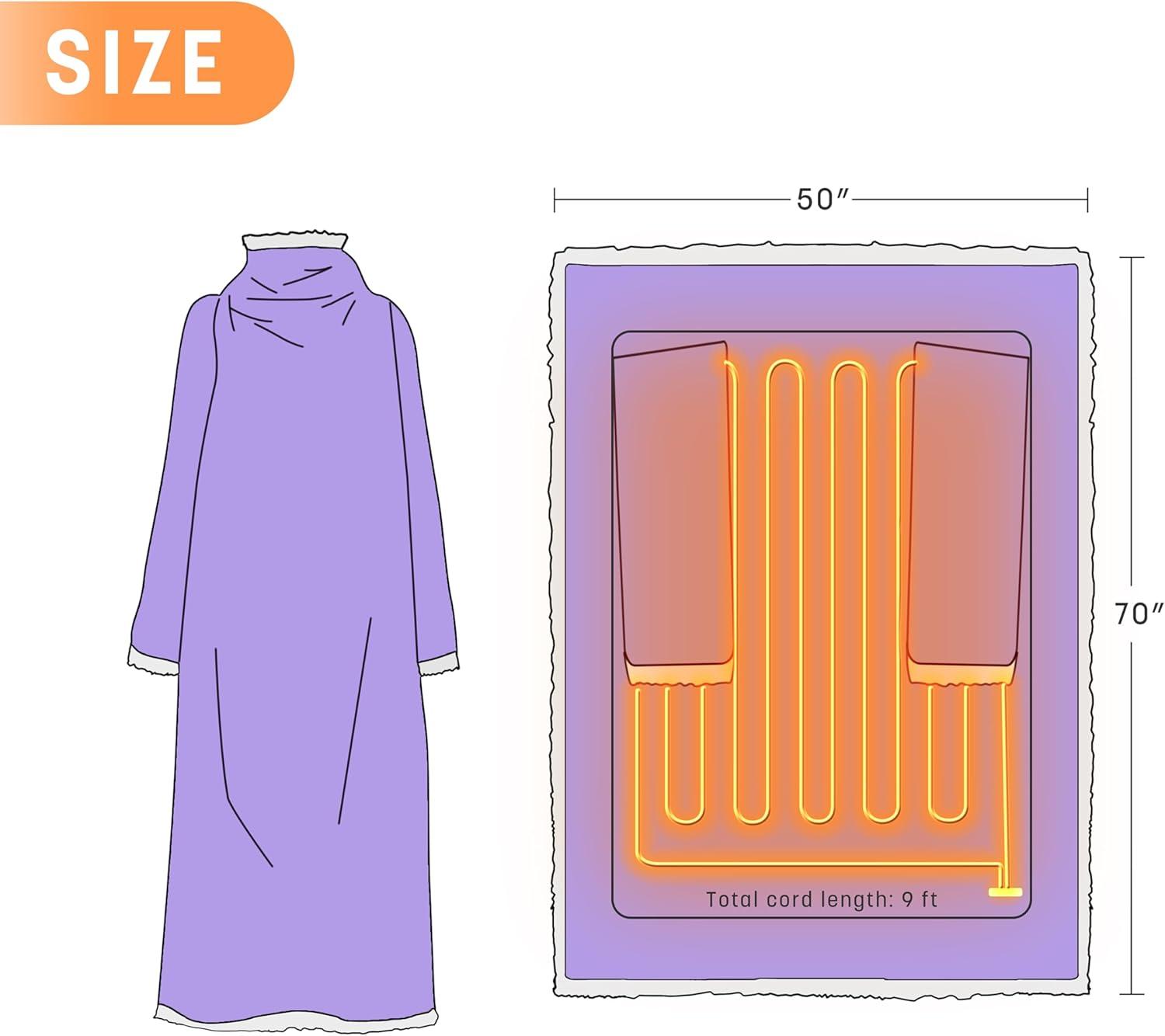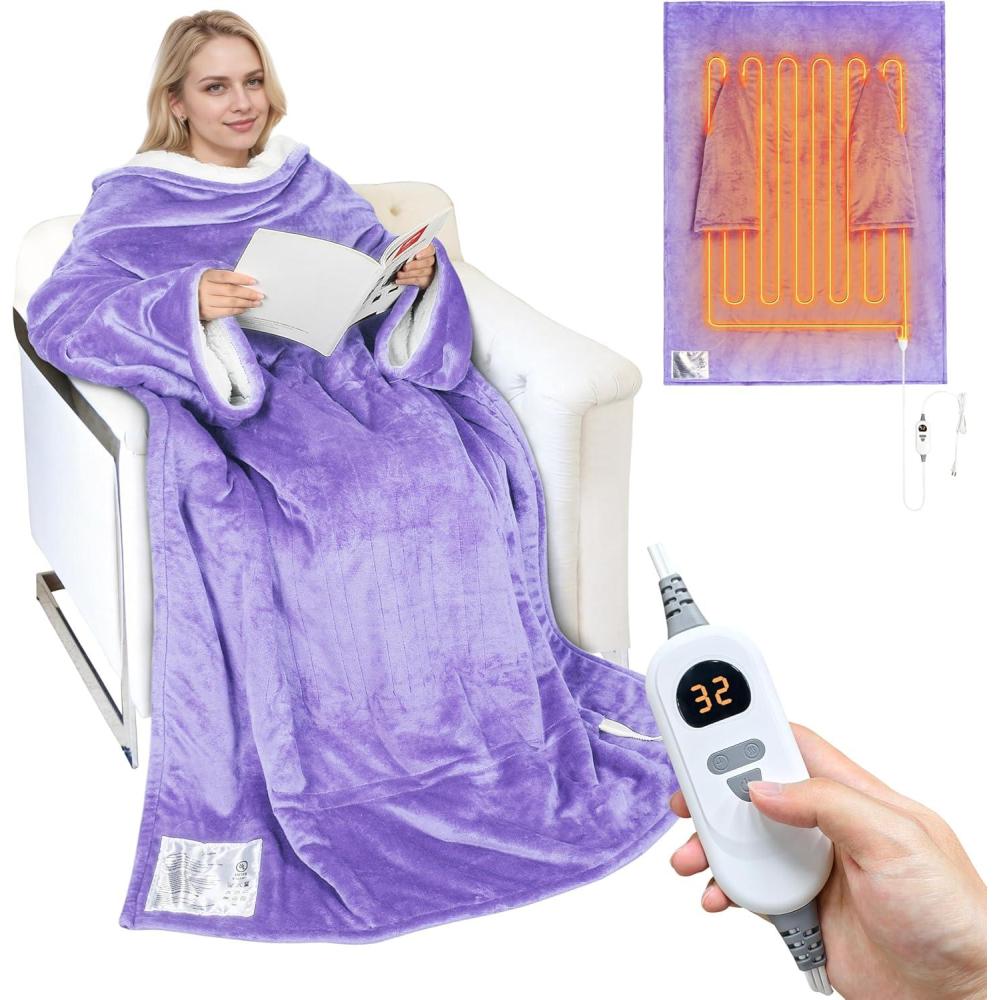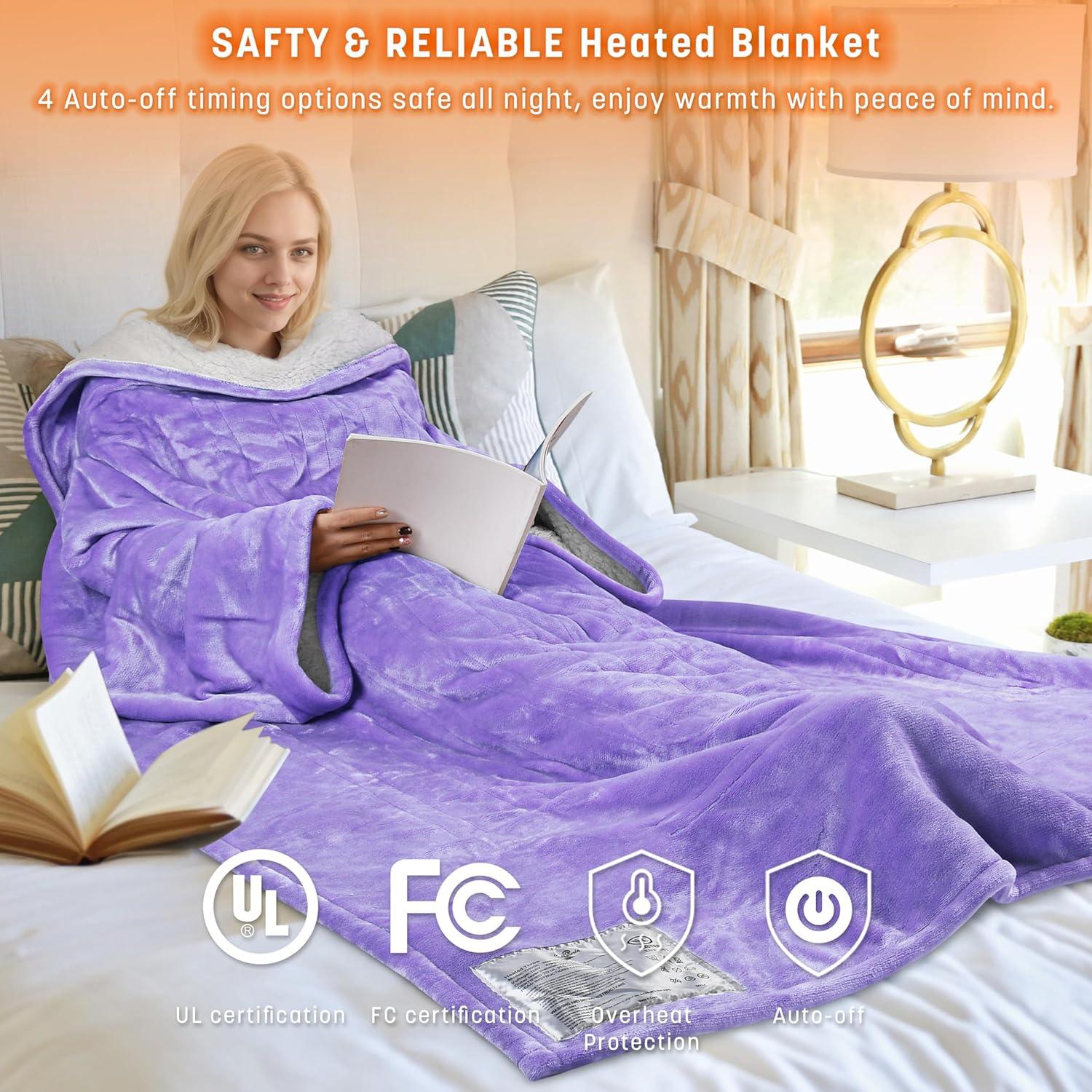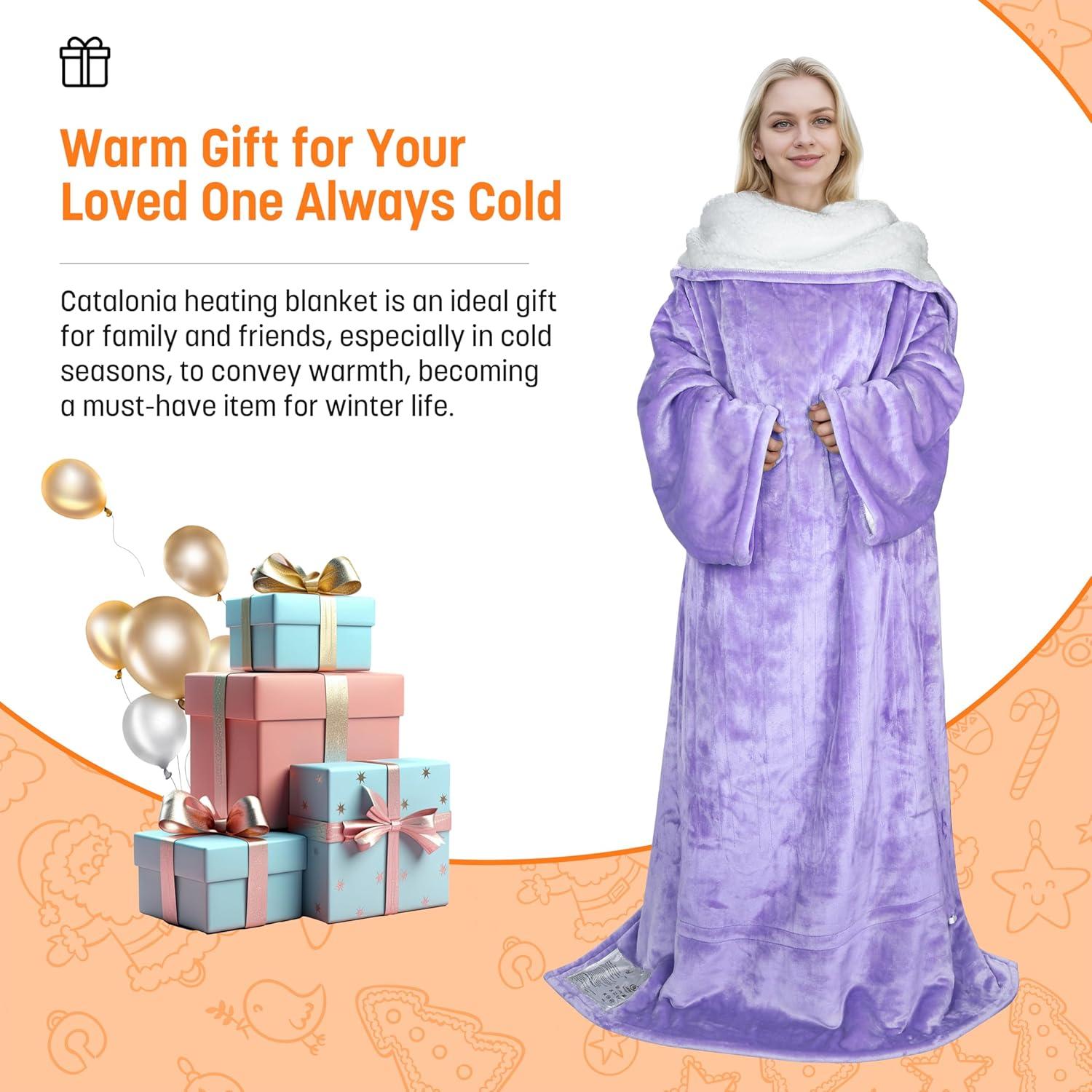 Catalonia Heated Blanket with Sleeves, Electric Snuggly Blanket for Women Men, Wearable Wired Heating Throw Blanket,Cold Gift(Purple)