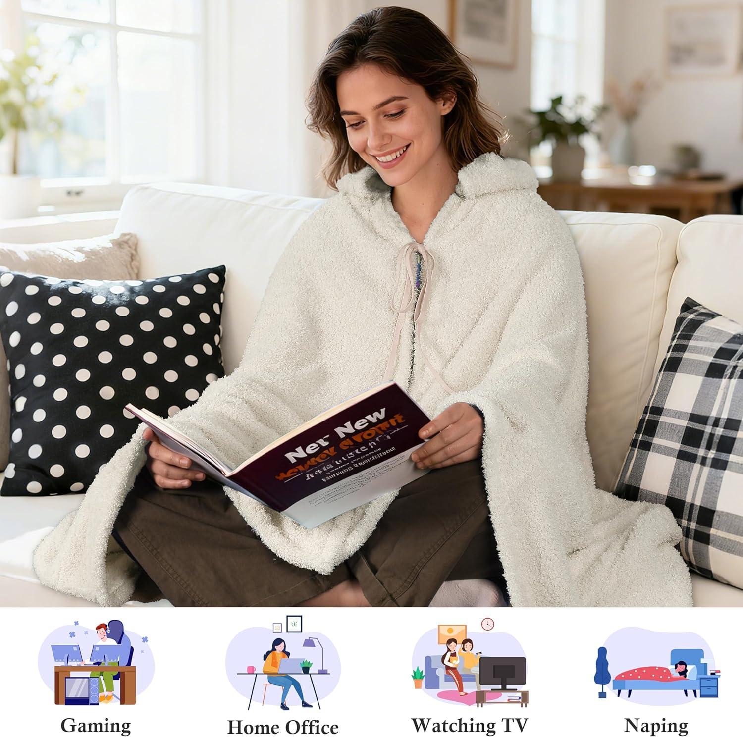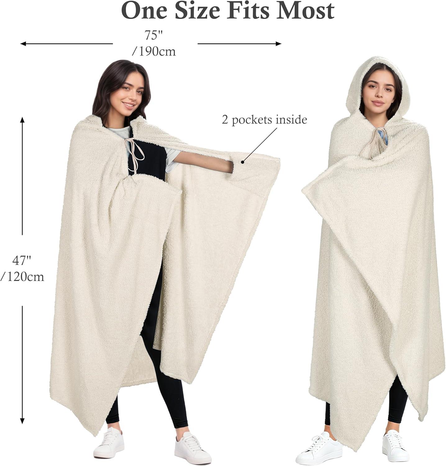 Snuggle up in ultimate comfort with the Catalonia Wearable Blanket Poncho! We've taken the cozy feeling of your favorite blanket and transformed it into a stylish, functional cape you can wear anywhere around the house. Whether you're curled up on the couch with a book, binge-watching your favorite shows, working from home, or enjoying a chilly evening on the patio, this wearable throw is your go-to for comfort. The convenient front hand pockets keep your hands warm. It’s the perfect, thoughtful gift for anyone who loves to lounge in style. Wearable Comfort: Slip it on like a cozy cape and enjoy hands-free warmth. Softness: Enjoy the smooth feel of high-quality fleece Practical Design: The oversized hood and inside pockets add both comfort and utility. Perfect Gift: An ideal present for Christmas, holidays, birthdays, or just to show you care. It’s a hit for women, men, and anyone who appreciates relaxation.