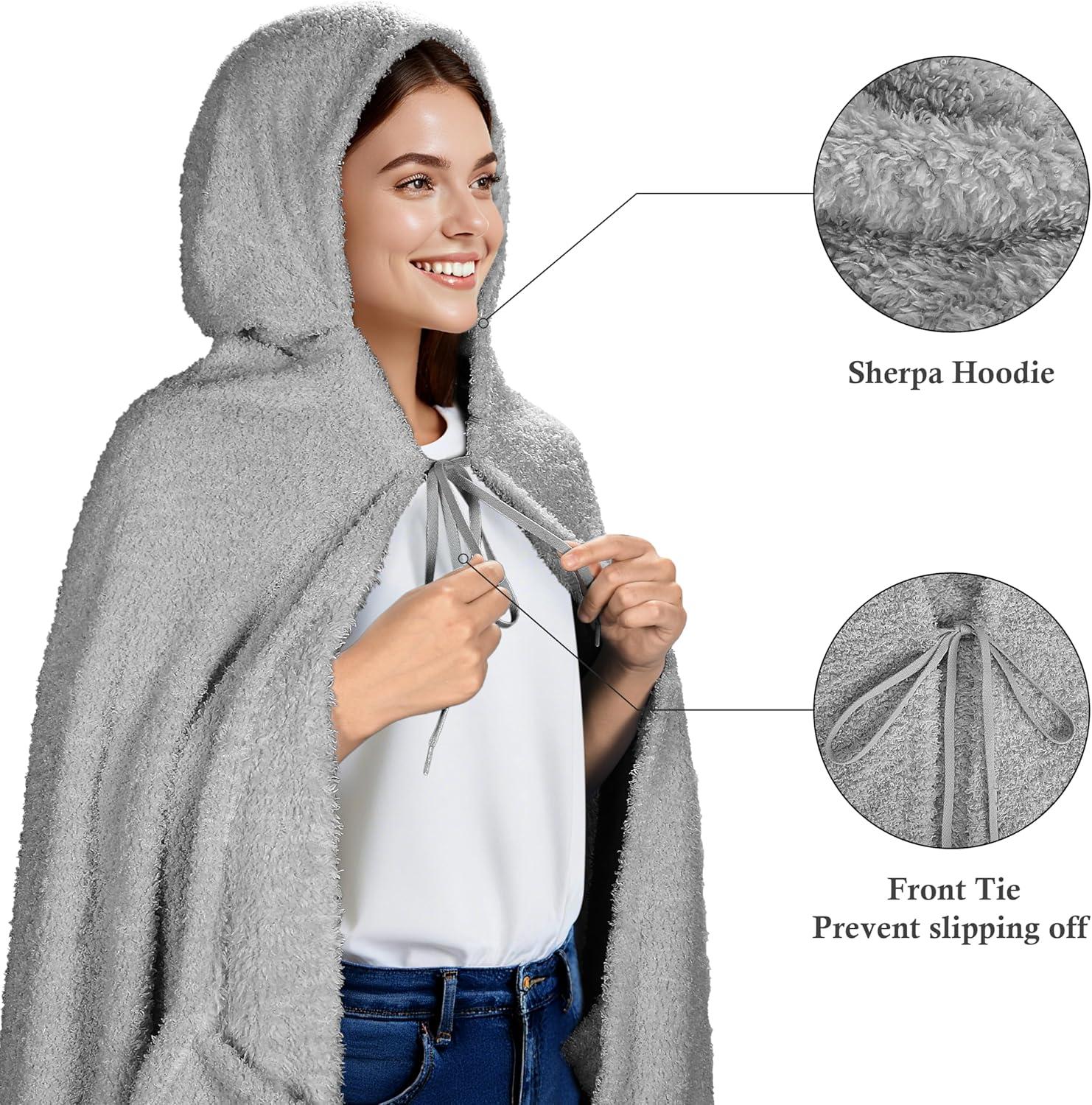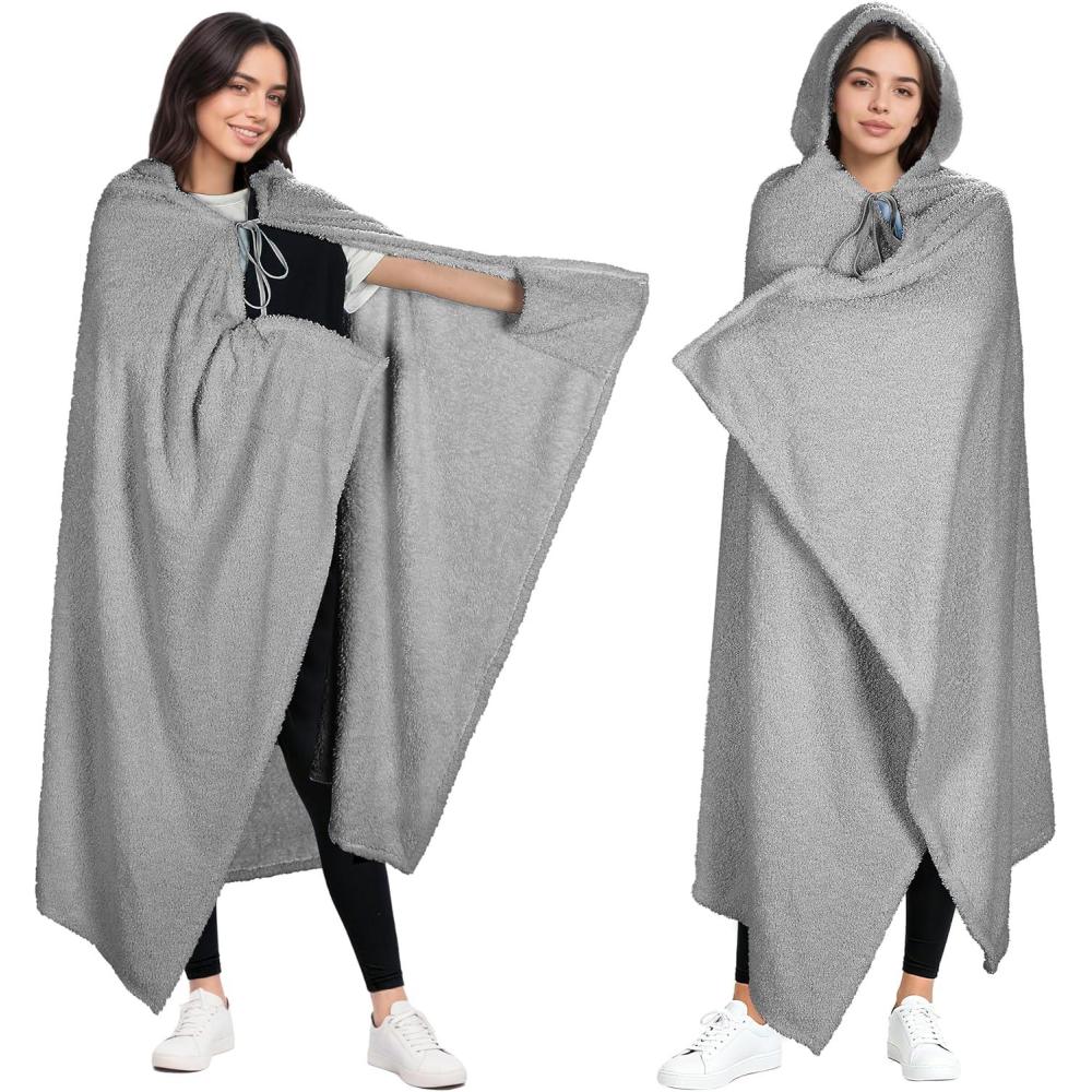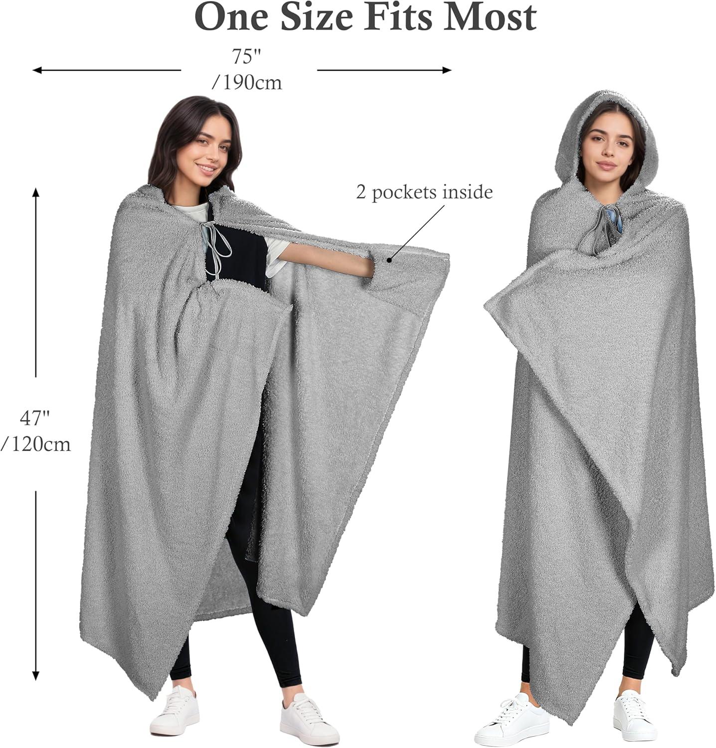 Catalonia Hooded Wearable Blanket Poncho for Adults, Lightweight Fleece Cape with Hand Pockets, Cozy Plush Wrap, Gifts Ideas(Grey)