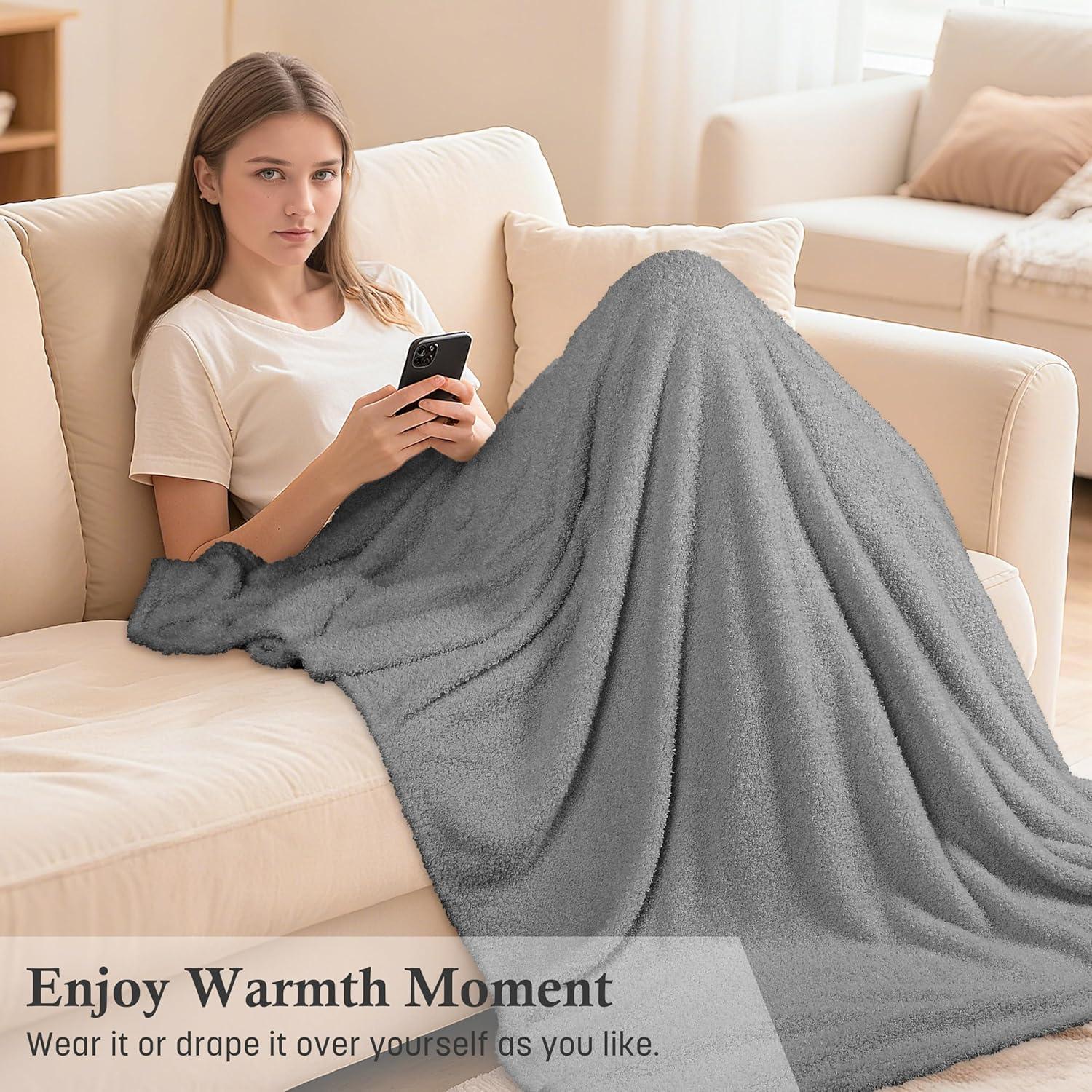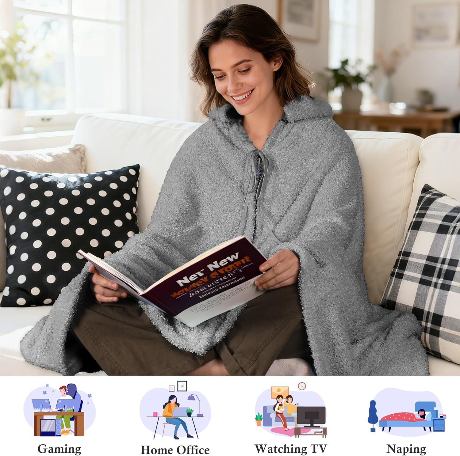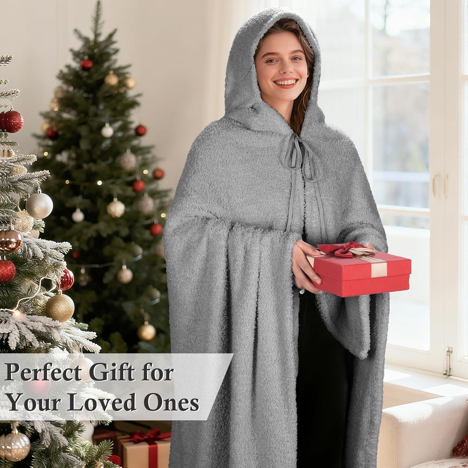 Catalonia Hooded Wearable Blanket Poncho for Adults, Lightweight Fleece Cape with Hand Pockets, Cozy Plush Wrap, Gifts Ideas(Grey)