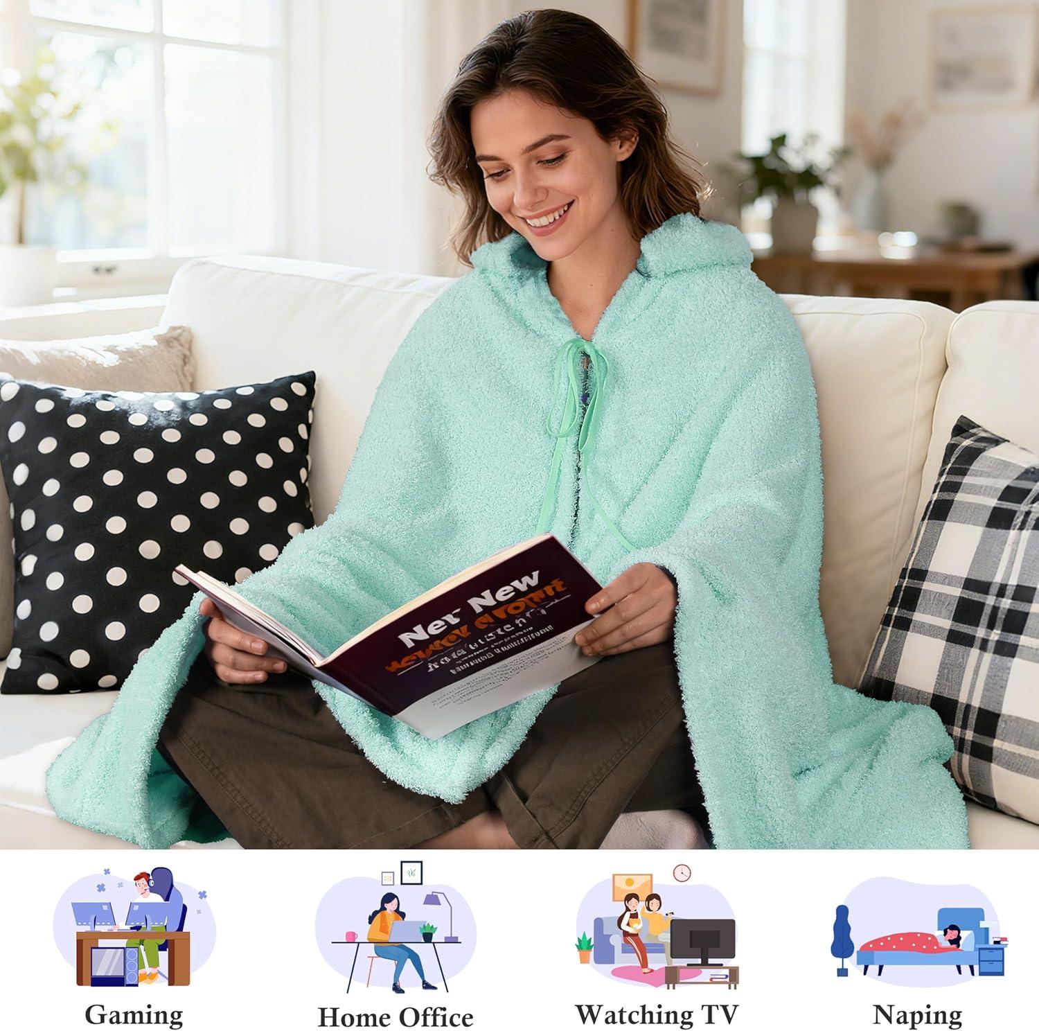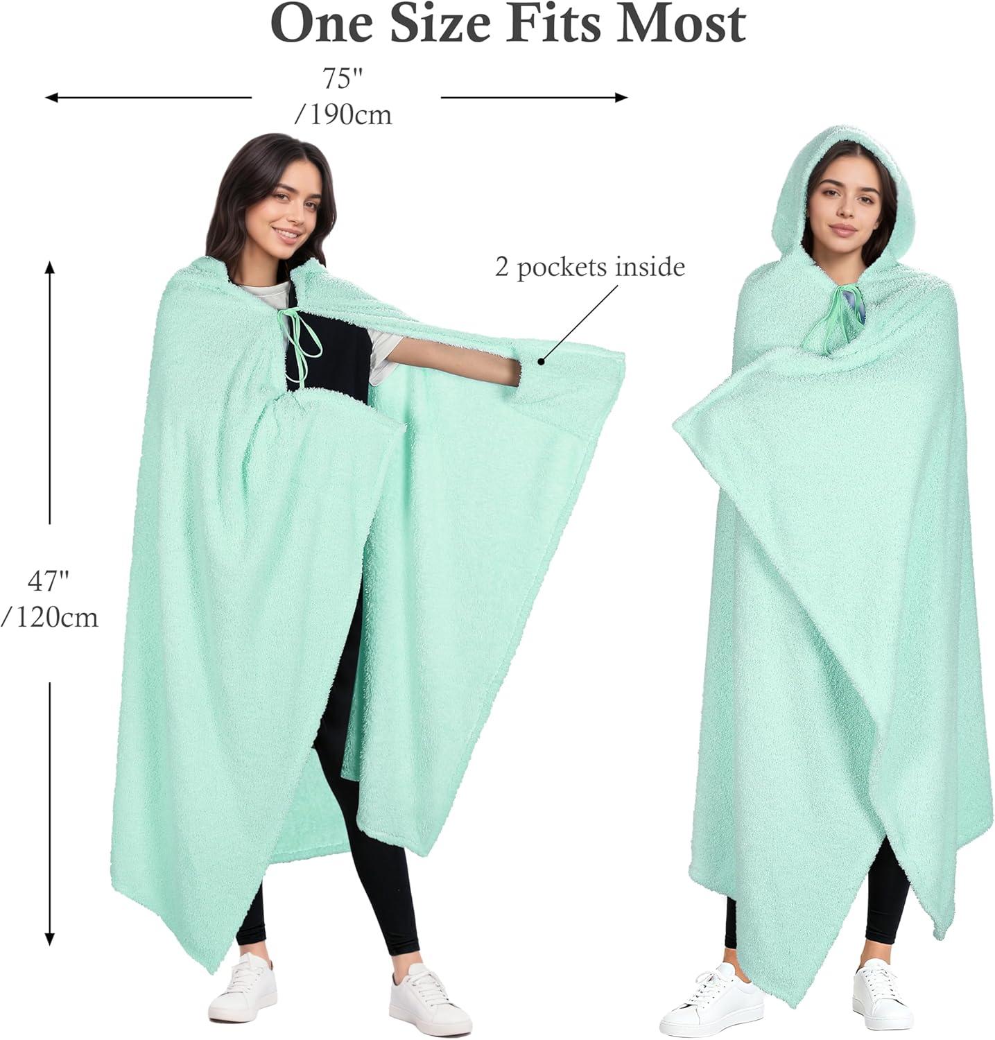 Catalonia Hooded Wearable Blanket Poncho for Adults, Lightweight Fleece Cape with Hand Pockets, Cozy Plush Wrap, Gifts Ideas(Mint Green)