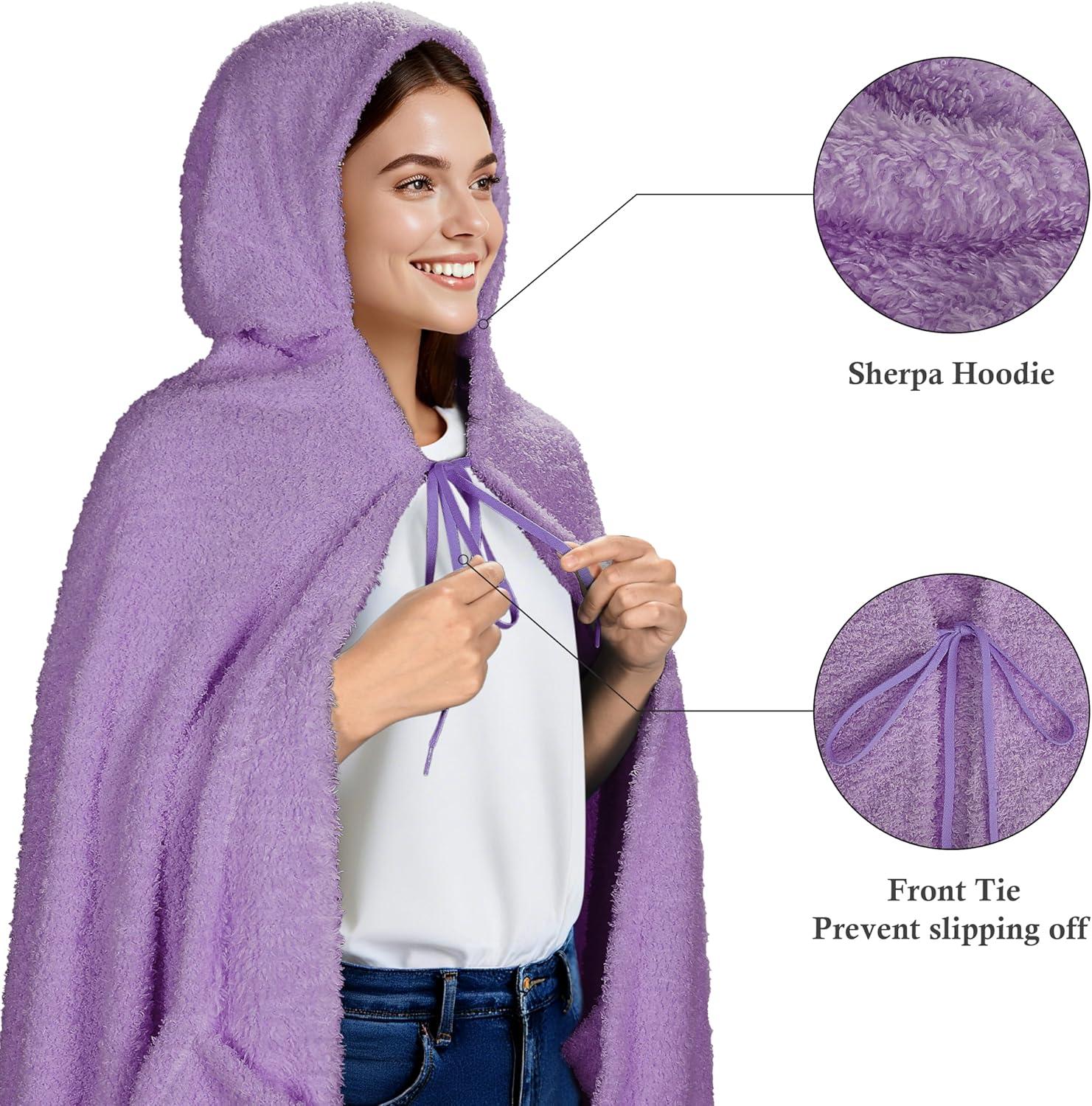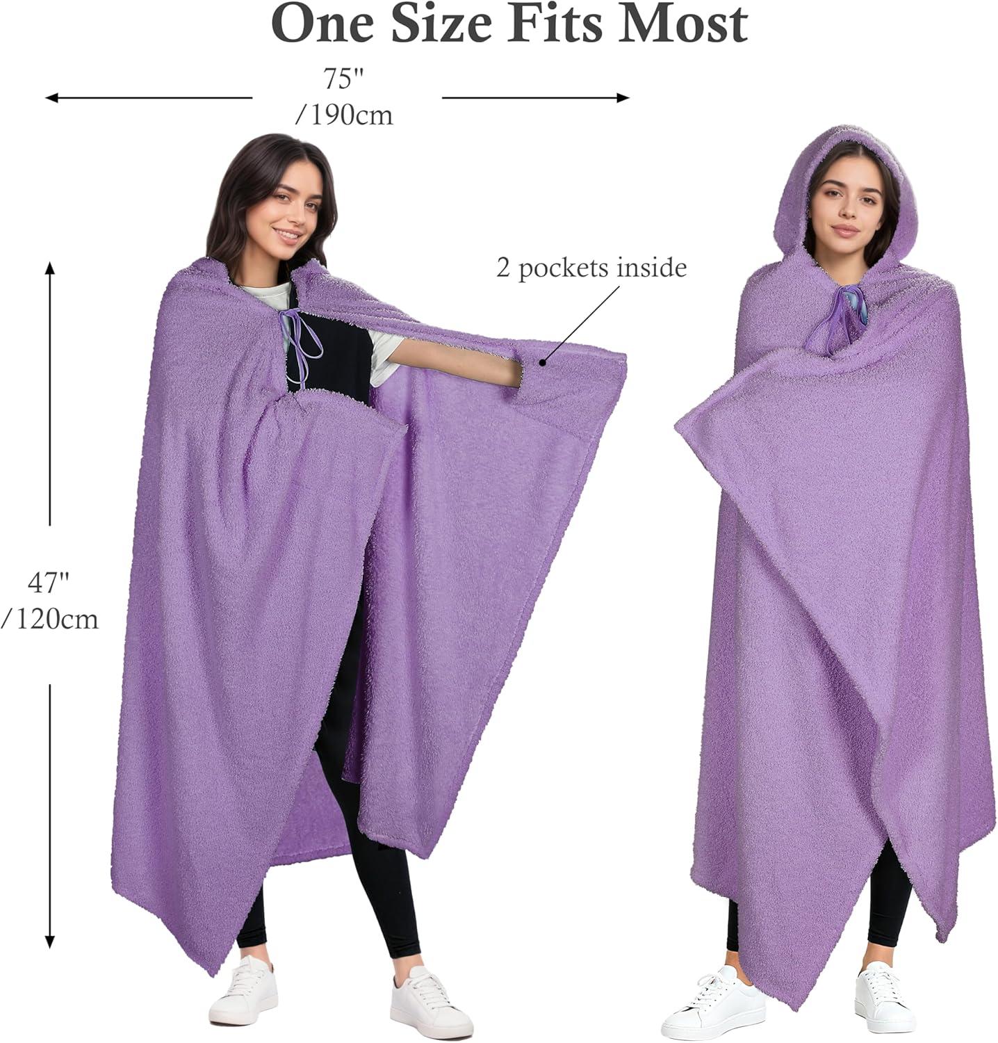 Catalonia Hooded Wearable Blanket Poncho for Adults, Lightweight Fleece Cape with Hand Pockets, Cozy Plush Wrap, Gifts Ideas(Purple)