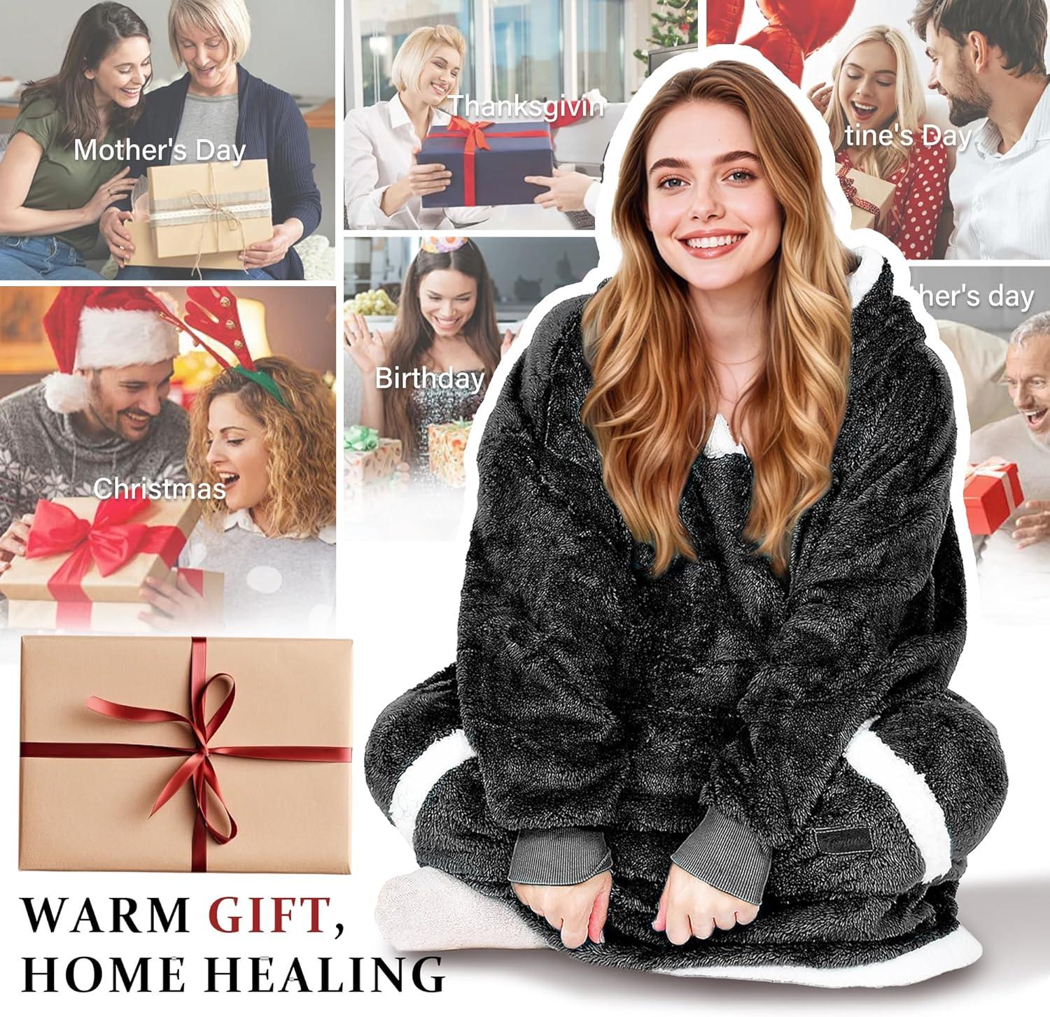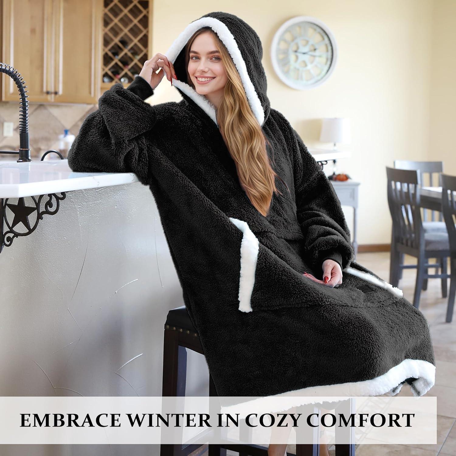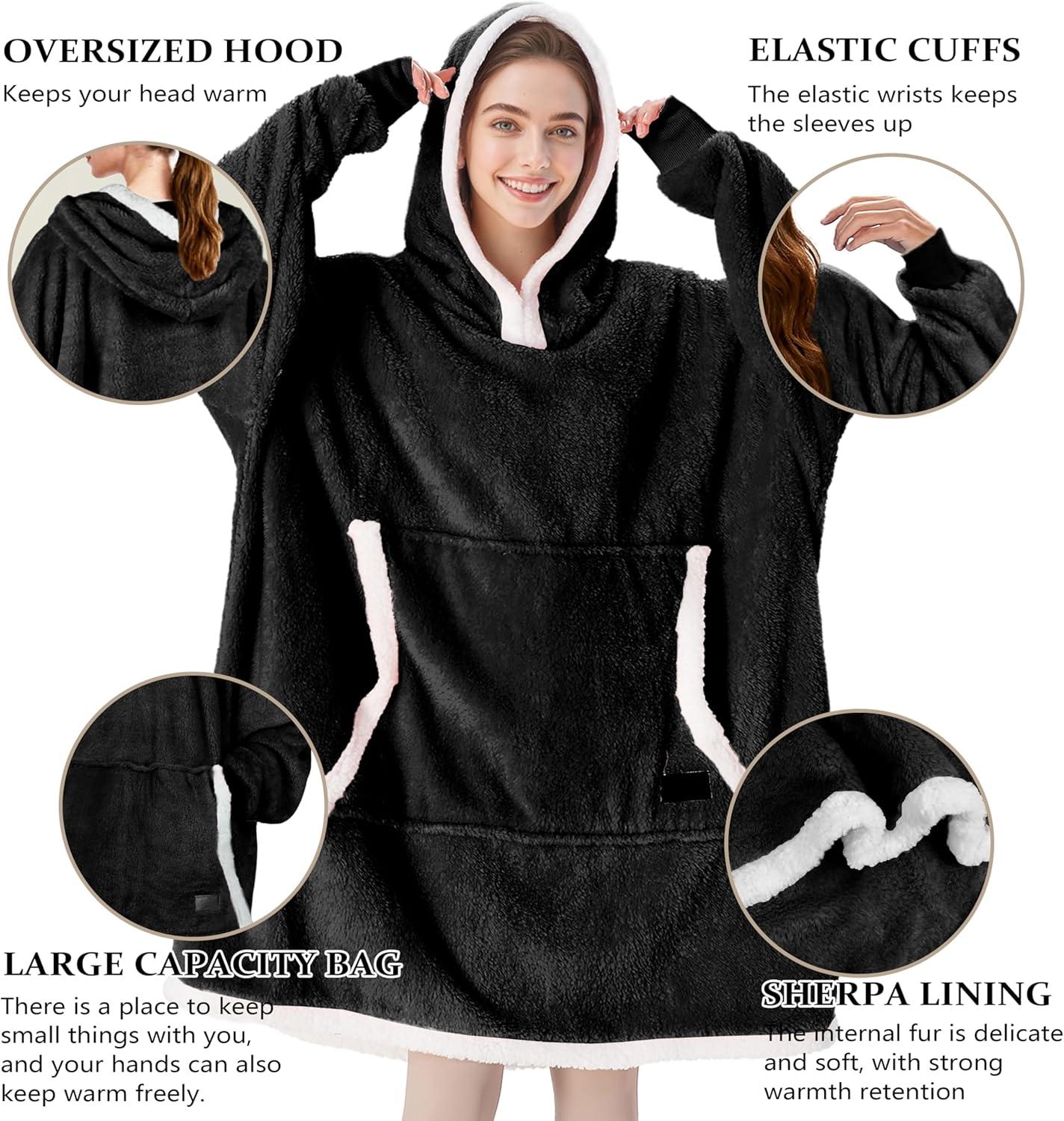 Catalonia Hoodie Blanket Oversized Wearable Blanket Hoodie for Women Men - Sweatshirt Blanket with Pocket(Black)