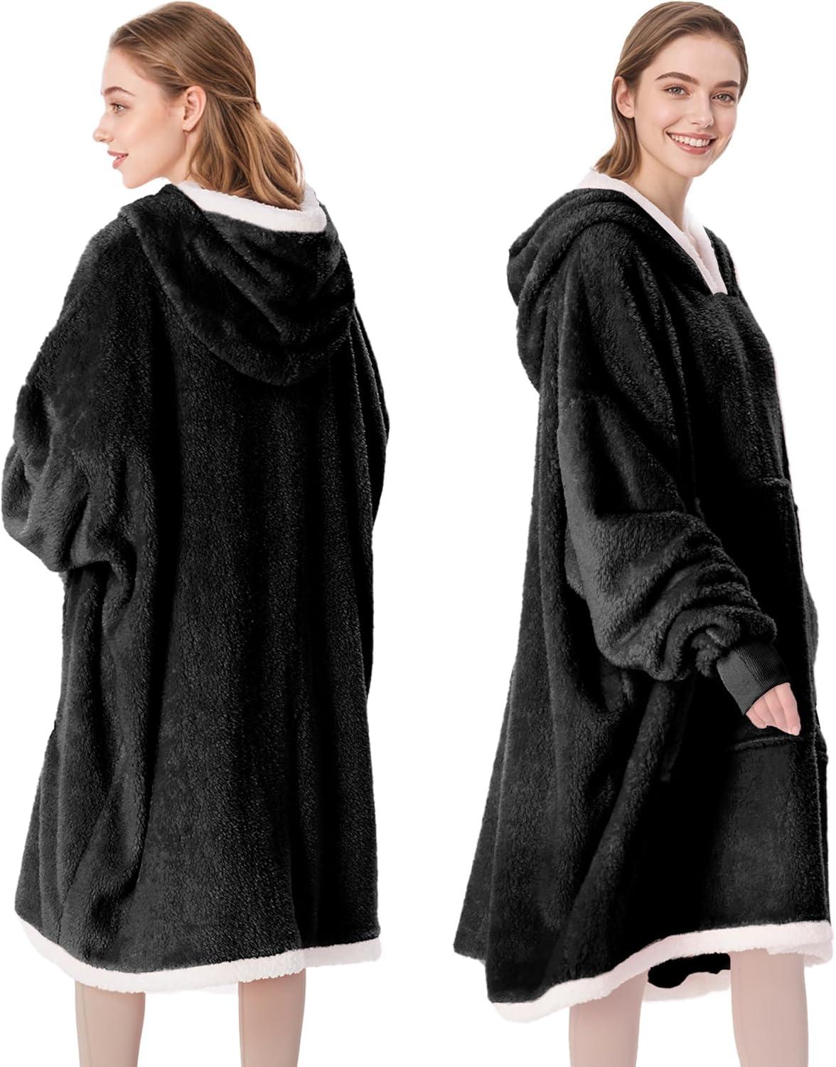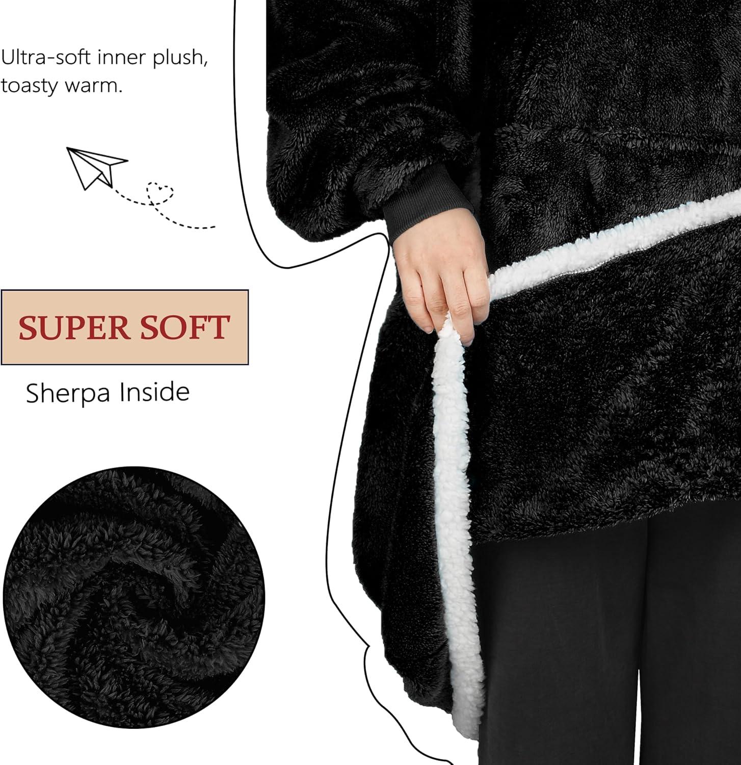 Catalonia Hoodie Blanket Oversized Wearable Blanket Hoodie for Women Men – Sweatshirt Blanket with Pocket(Black)