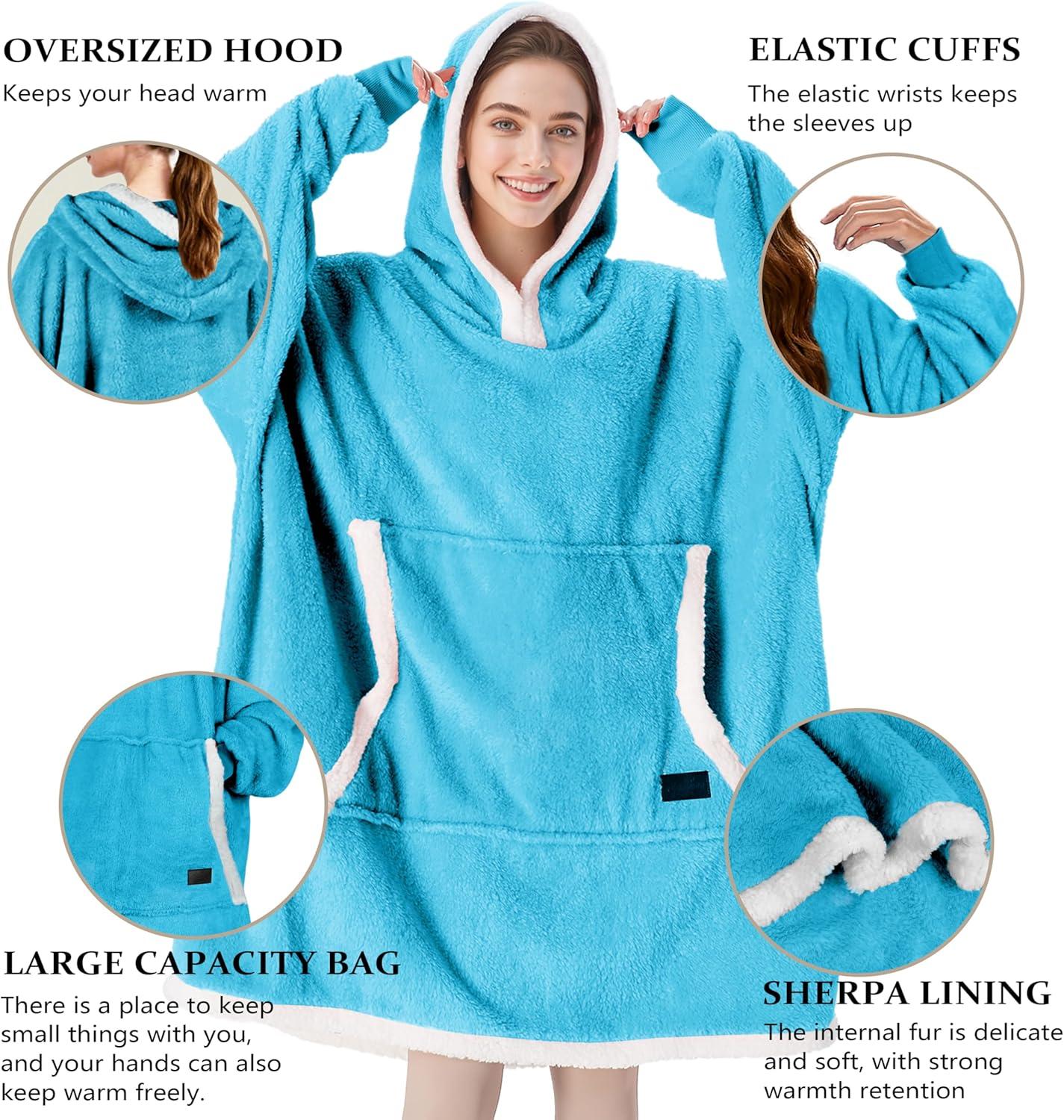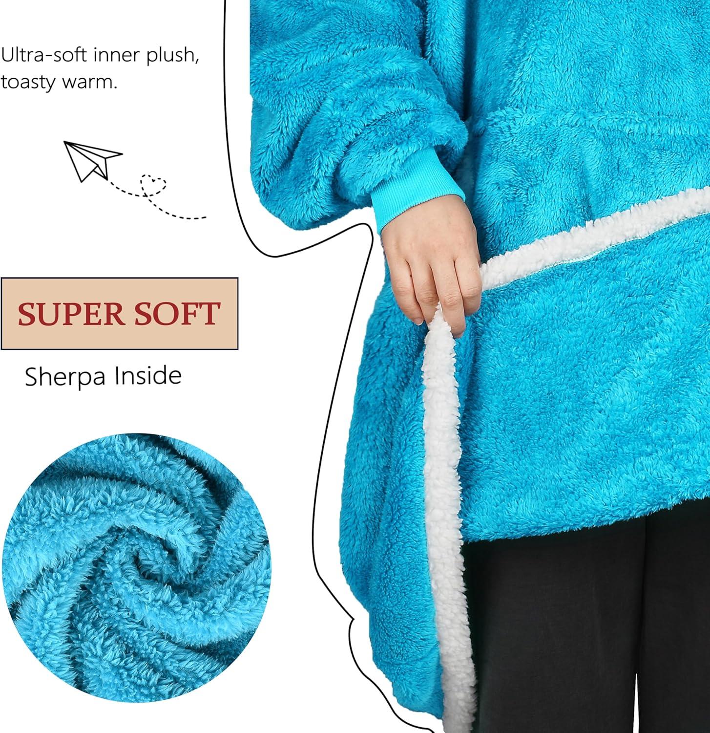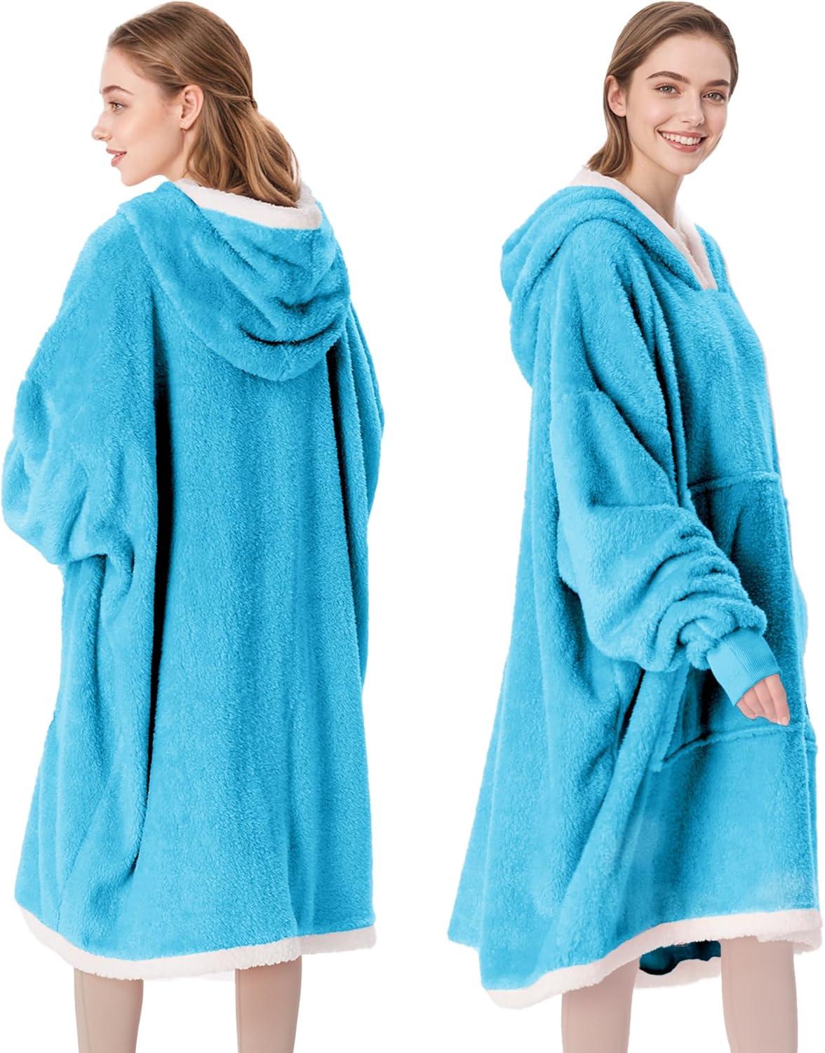 Catalonia Hoodie Blanket Oversized Wearable Blanket Hoodie for Women Men – Sweatshirt Blanket with Pocket(Blue)