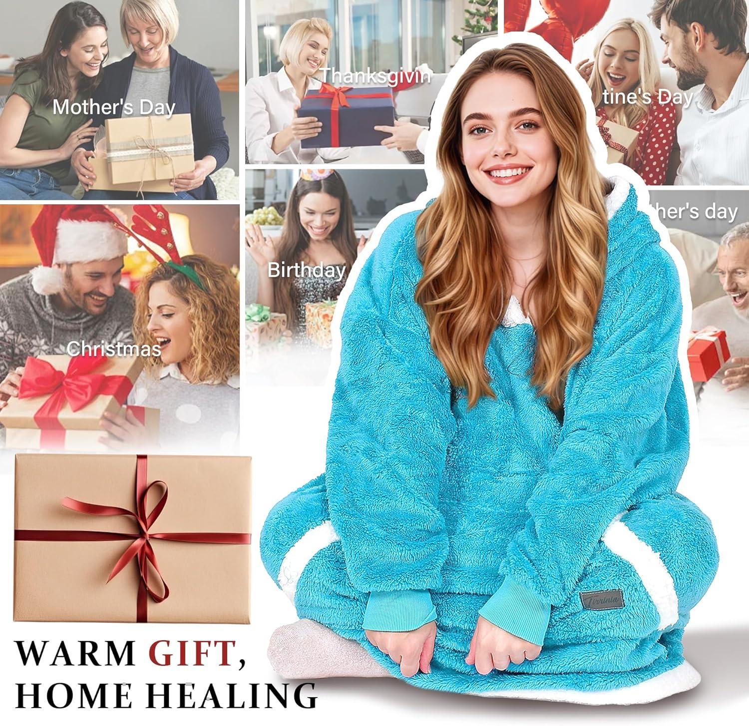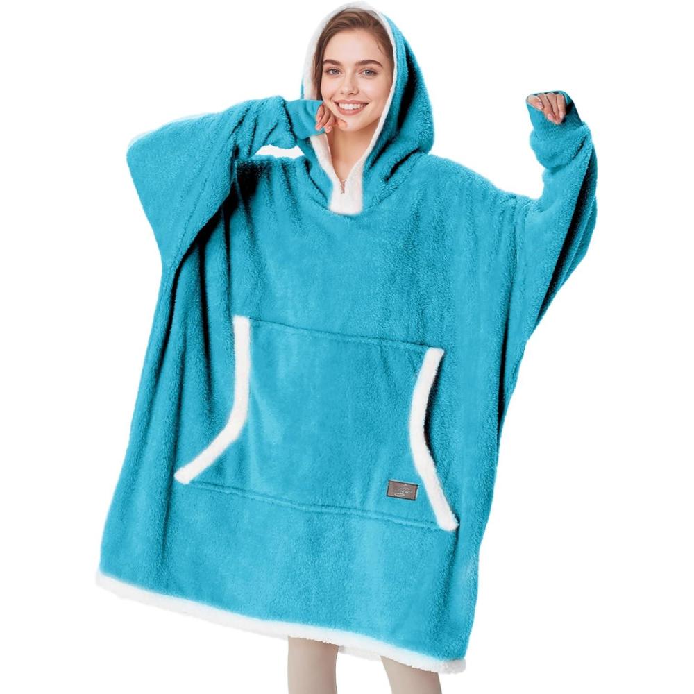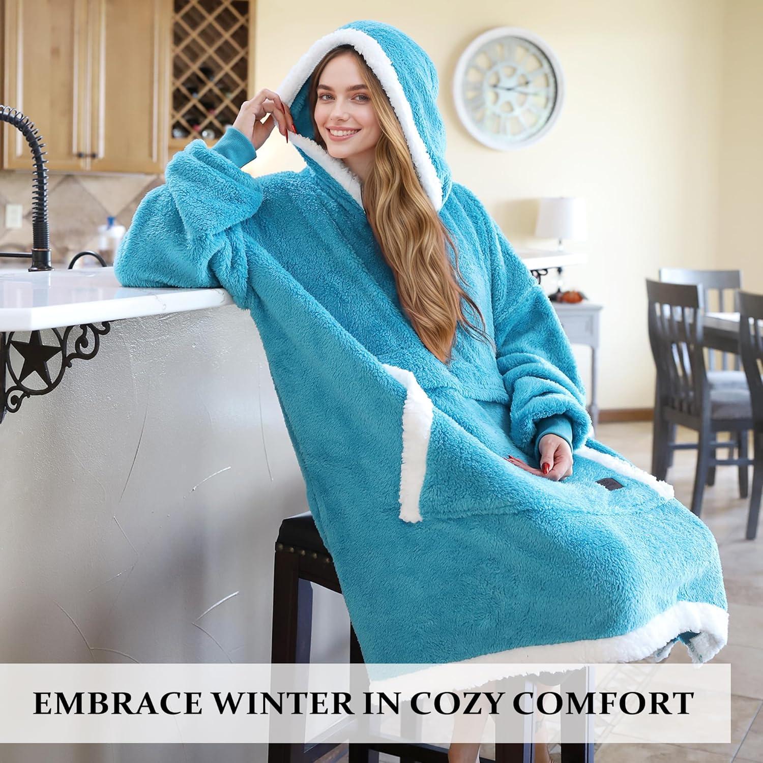 Catalonia Hoodie Blanket Oversized Wearable Blanket Hoodie for Women Men – Sweatshirt Blanket with Pocket(Blue)