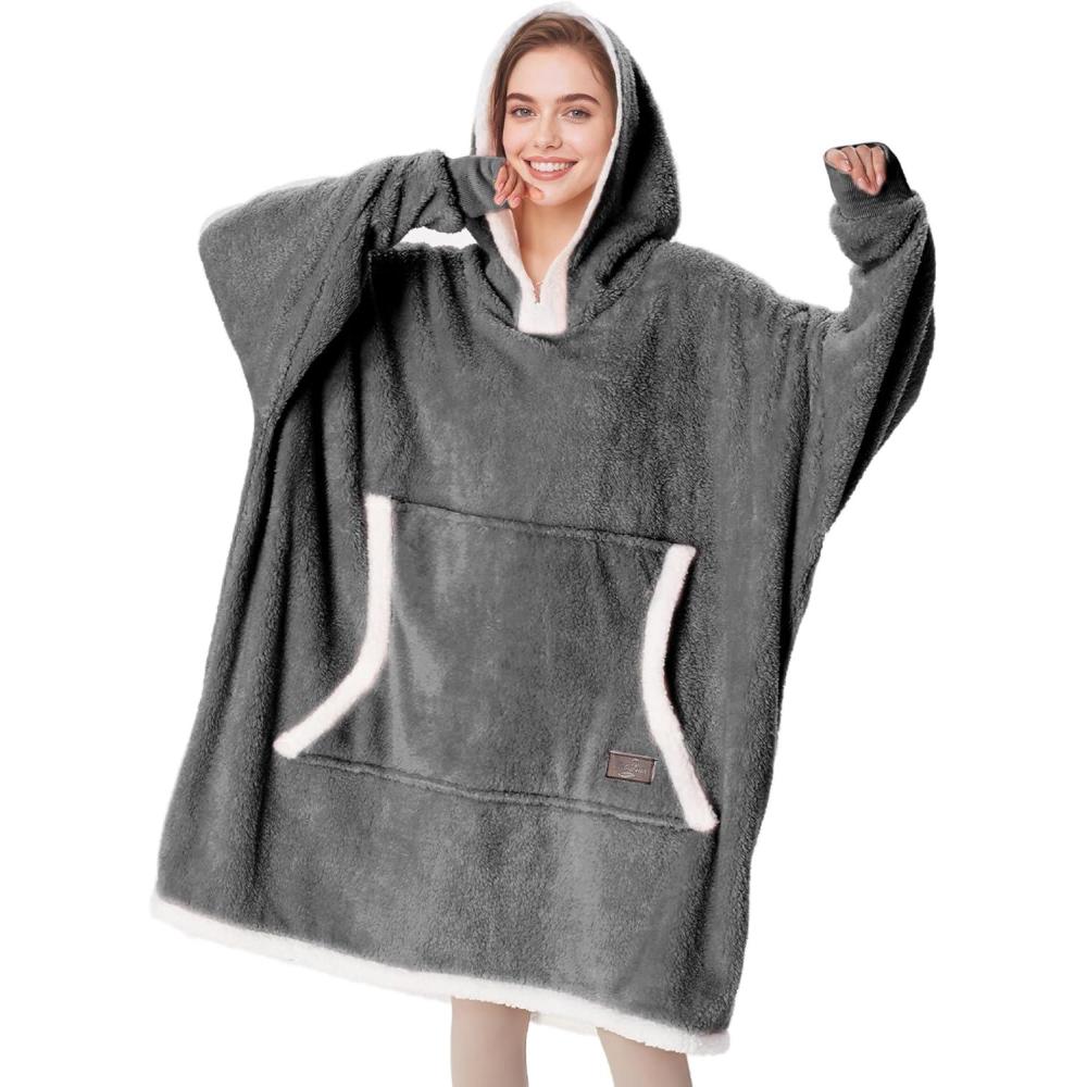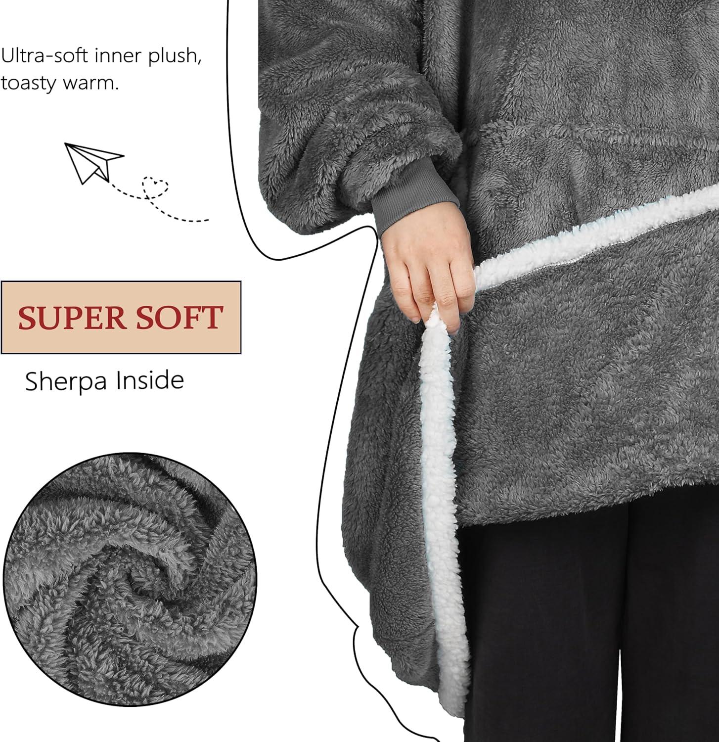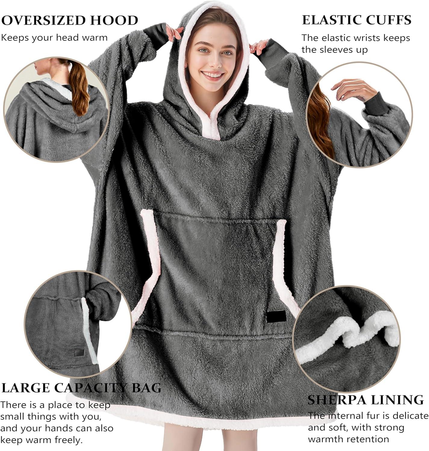 Catalonia Hoodie Blanket Oversized Wearable Blanket Hoodie for Women Men – Sweatshirt Blanket with Pocket(Gray)