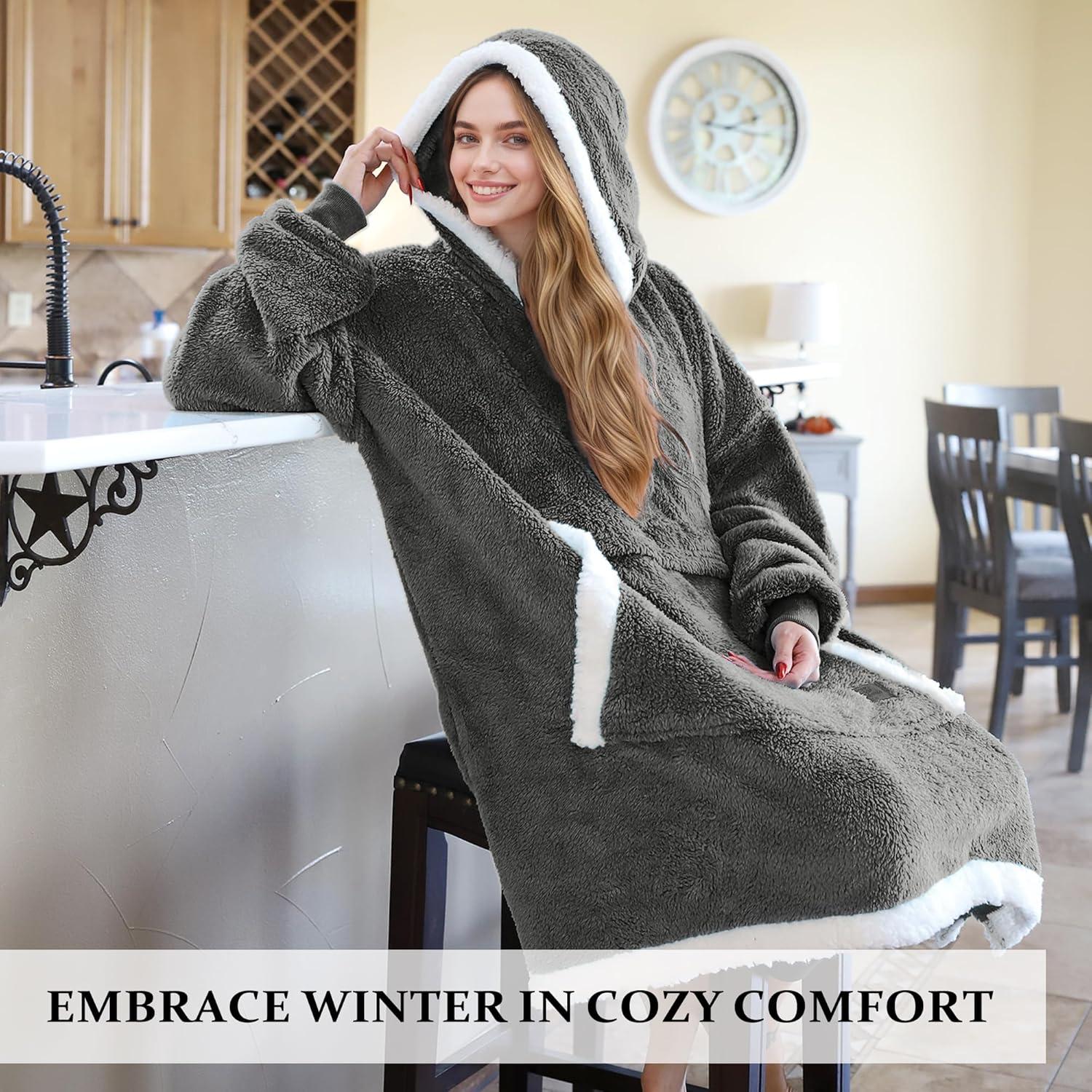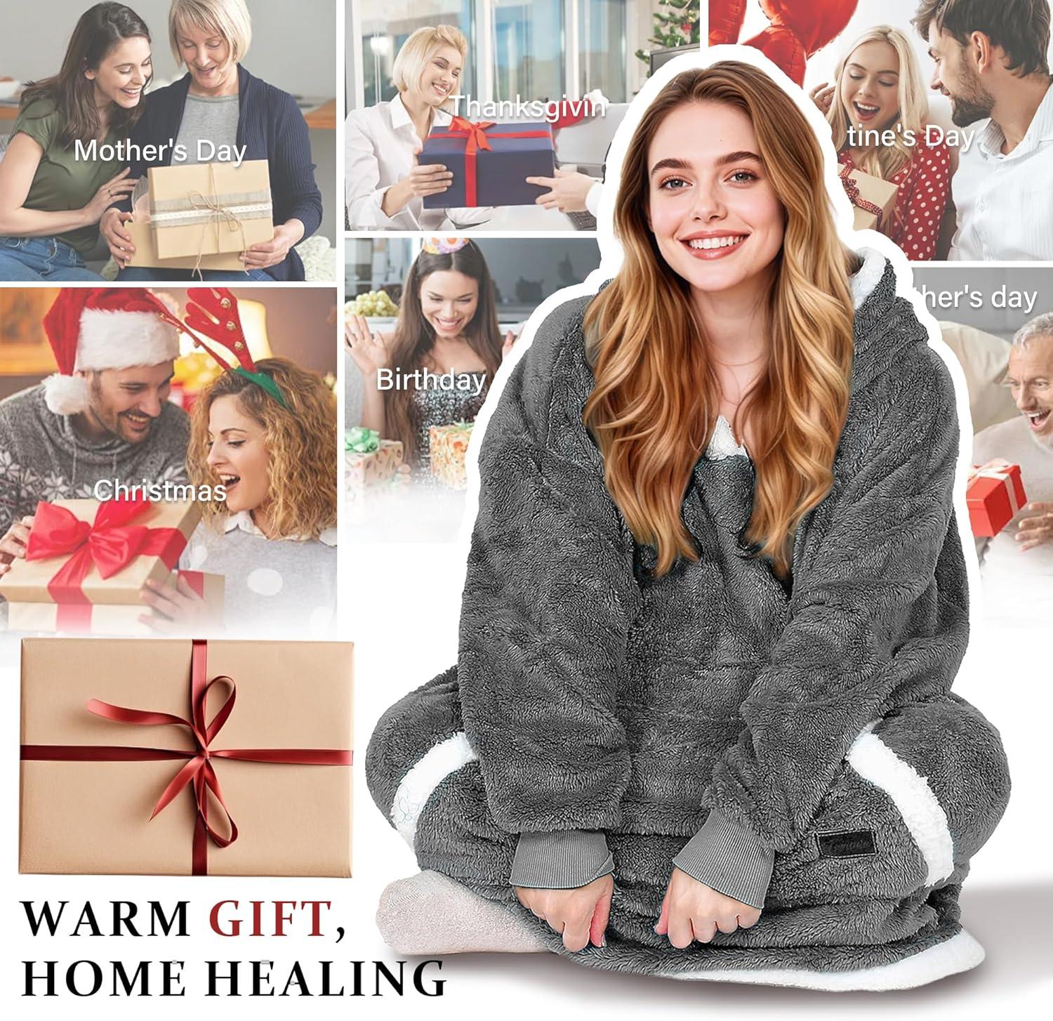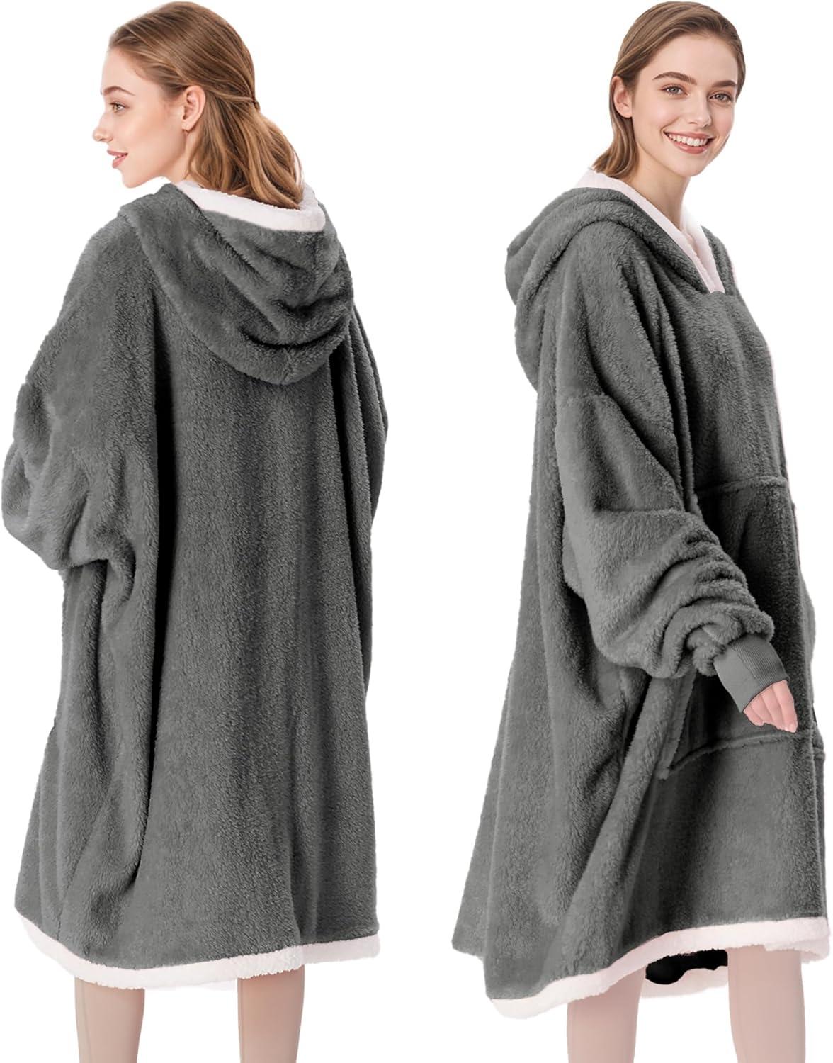 Catalonia Hoodie Blanket Oversized Wearable Blanket Hoodie for Women Men – Sweatshirt Blanket with Pocket(Gray)