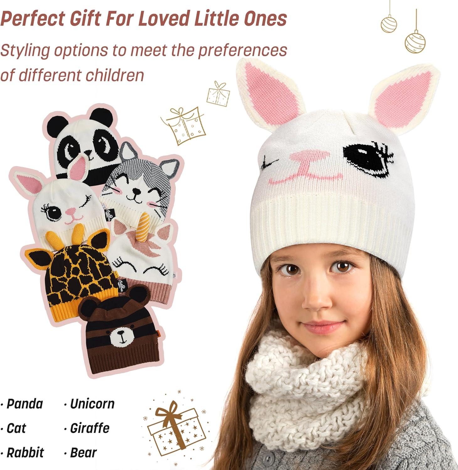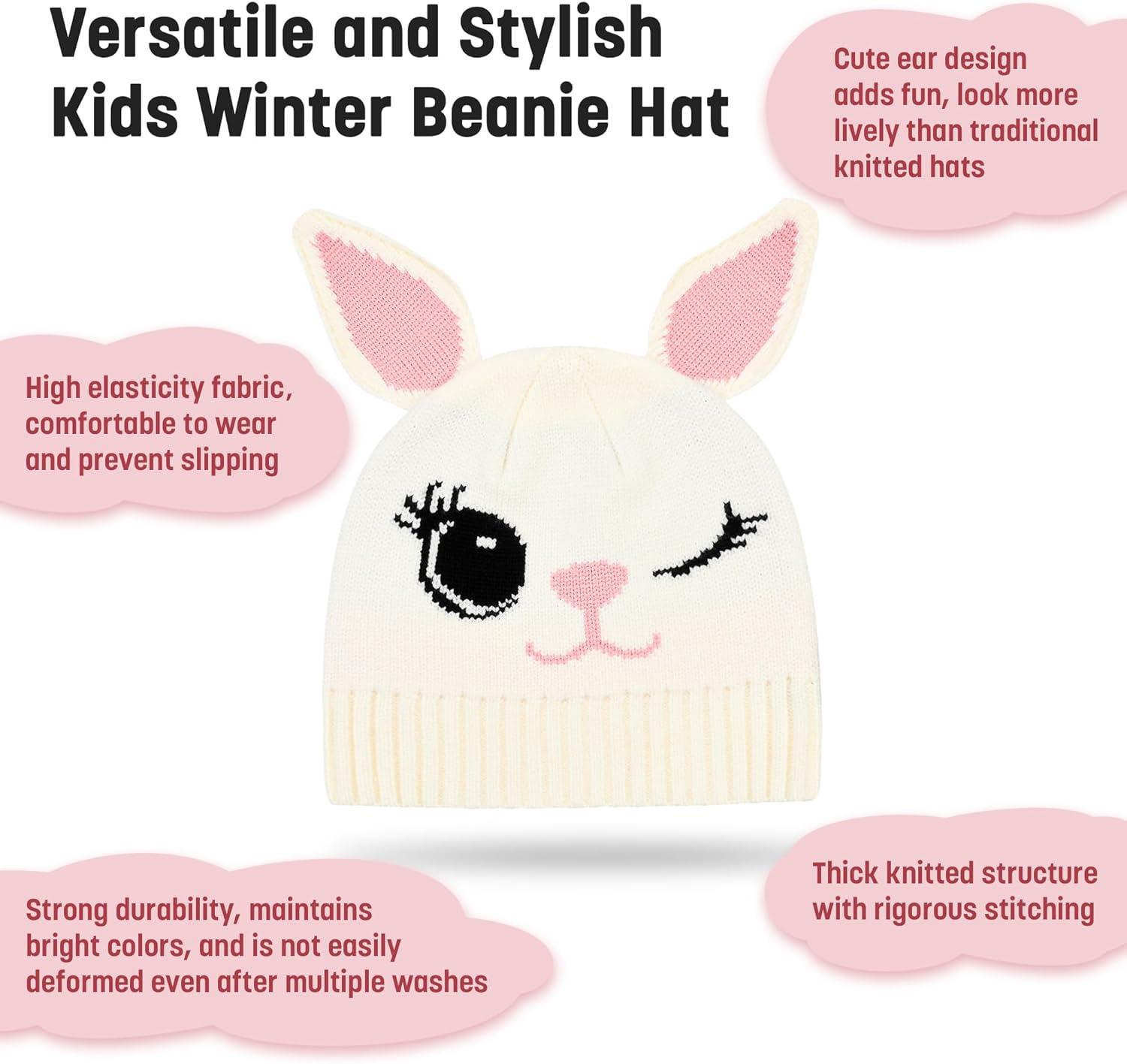 Catalonia Kids Knit Hats, Warm Toddler Winter Hats, Cute Beanies Hat Cap for Boys Girls Aged 6-10, Gifts Idea For Christmas(Rabbit)