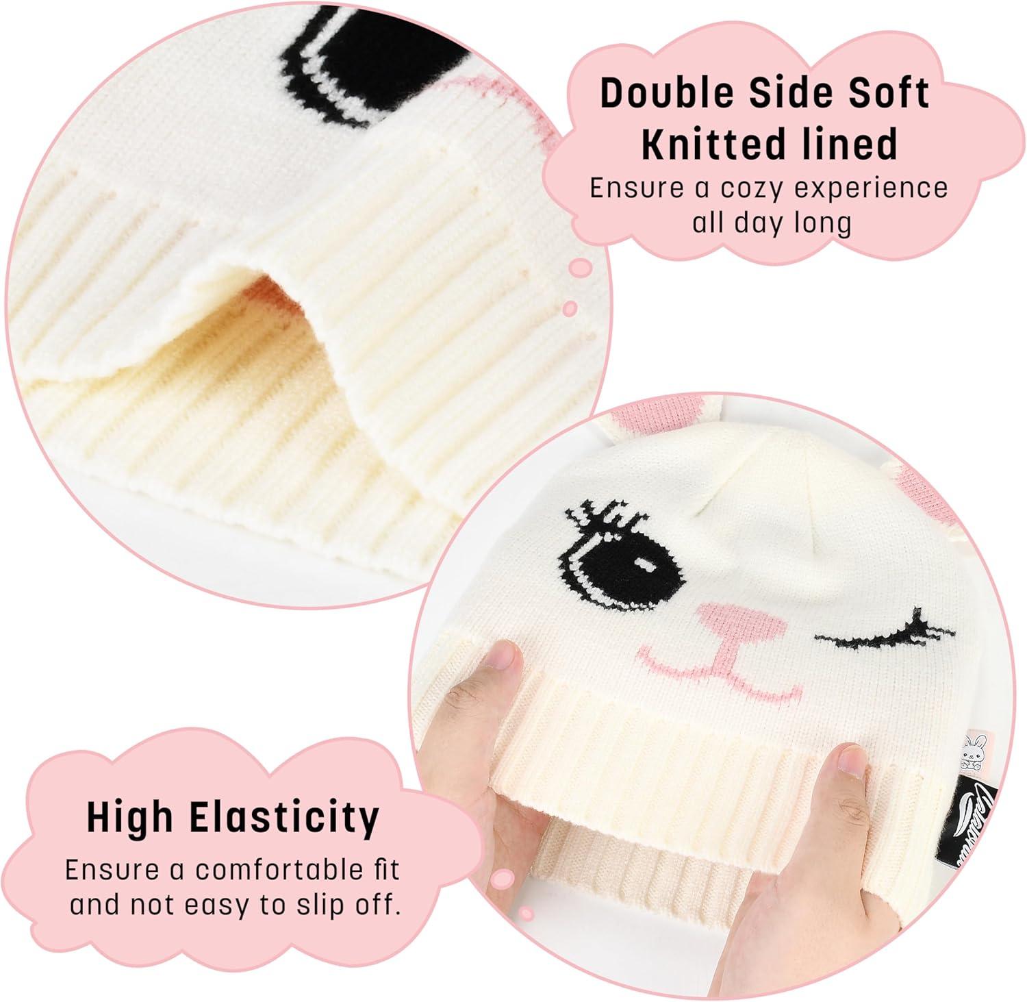 imageCatalonia Kids Knit Hats Warm Toddler Winter Hats Cute Beanies Hat Cap for Boys Girls Aged 610 Gifts Idea For ChristmasRabbit