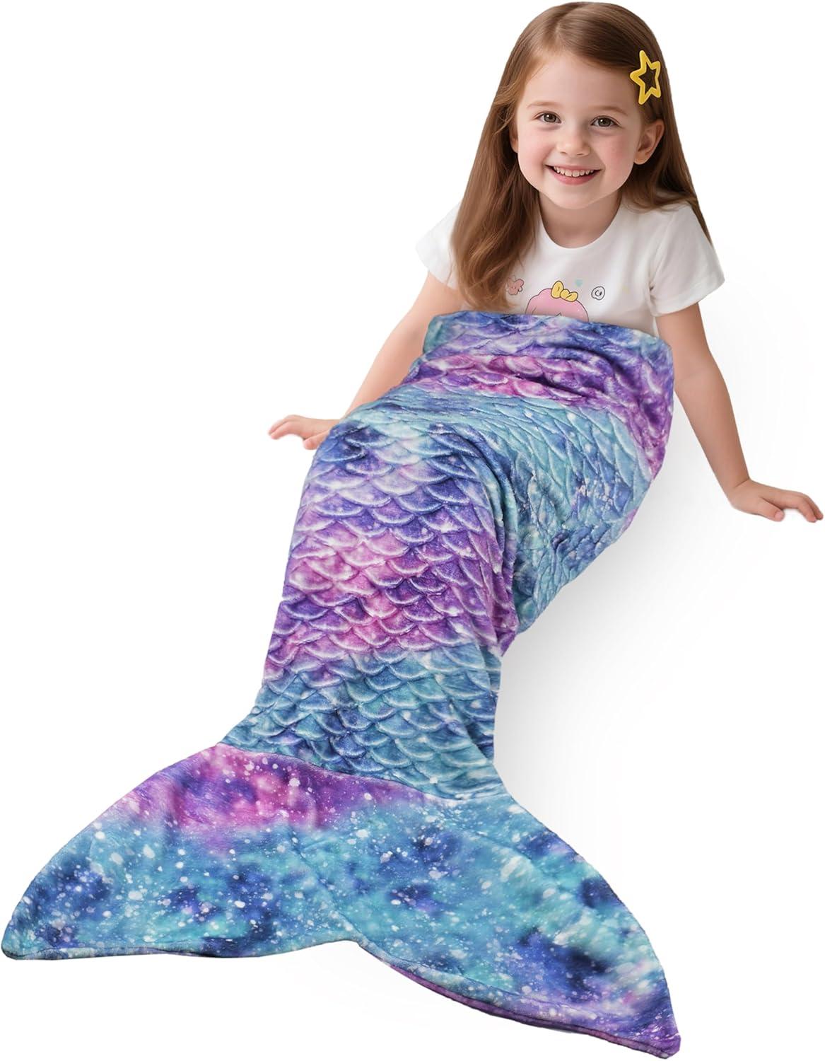 Catalonia Kids Mermaid Tail Blanket, Super Soft Plush Flannel Sleeping Snuggle Blanket for Girls, Galaxy, Fish Scale Pattern, Gift Idea