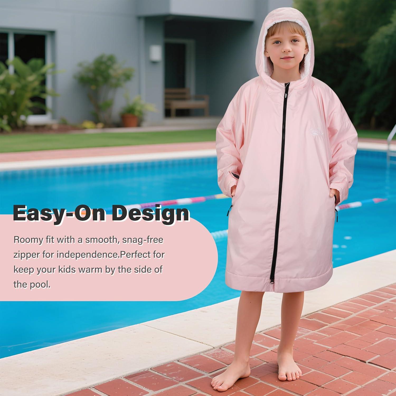 Catalonia Kids Waterproof Swim Parka with Hood, Windproof Fleece Swim Jacket, Warm Winter Swim Coat, Perfect for Beach, Pool(Pink)