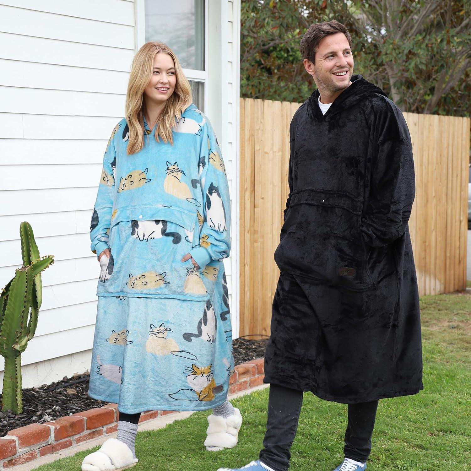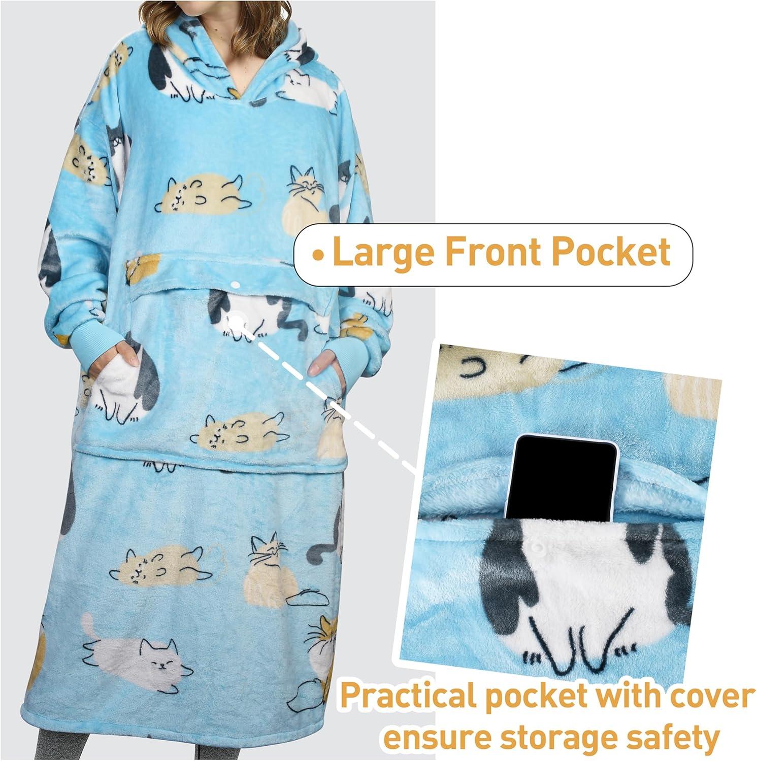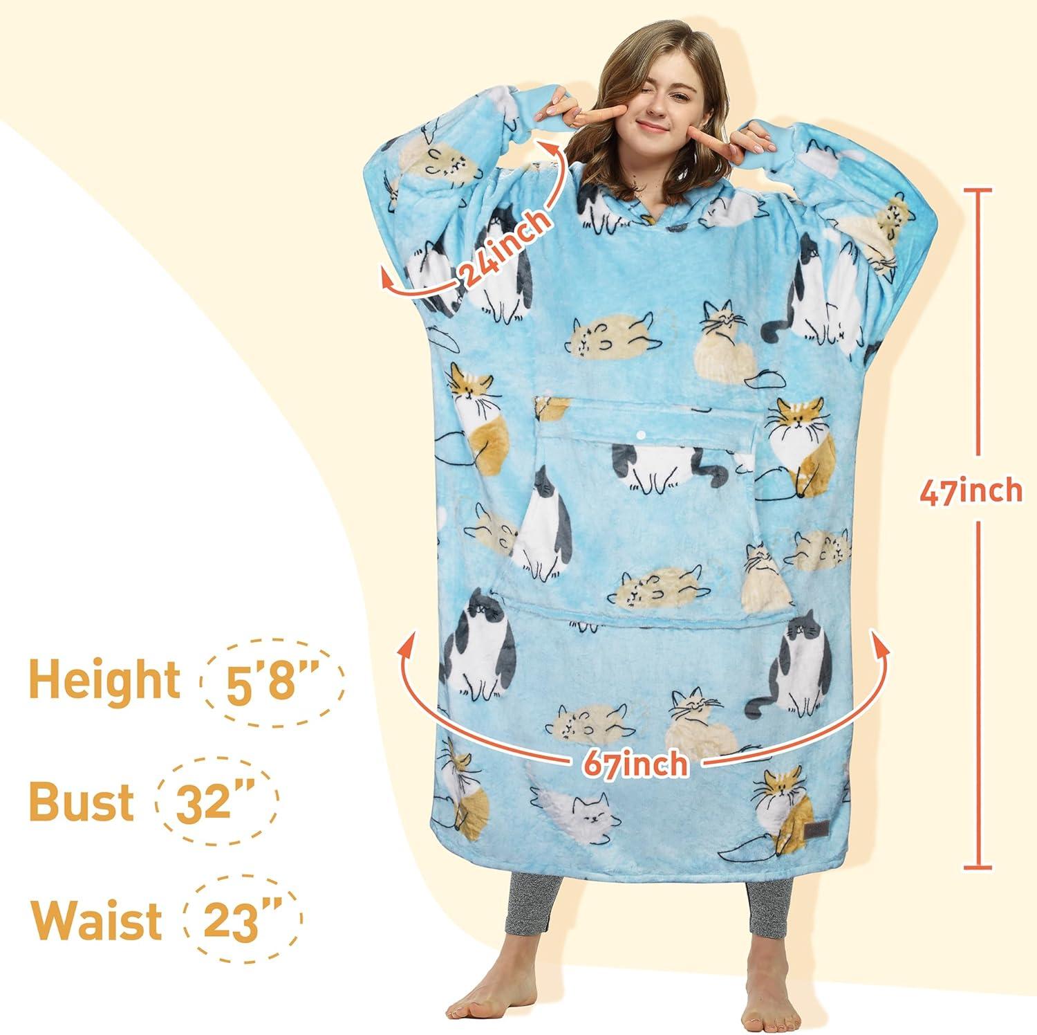 Catalonia Oversized Blanket Hoodie Sweatshirt, Fleece Pullover with Large Front Pocket, for Adults Men Women(Blue Cat-ankle Length)