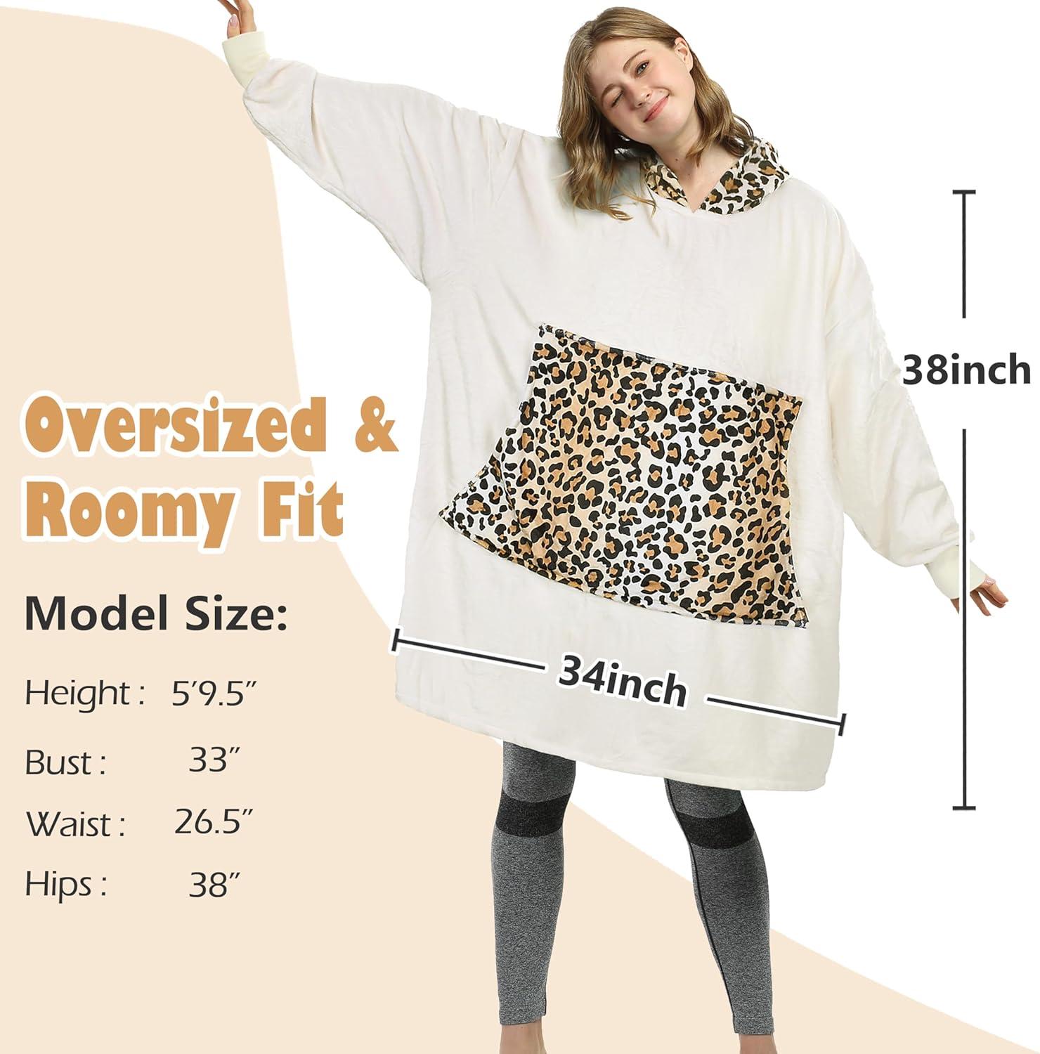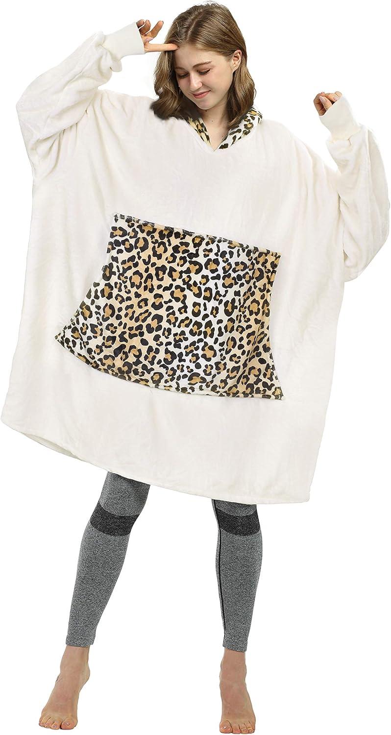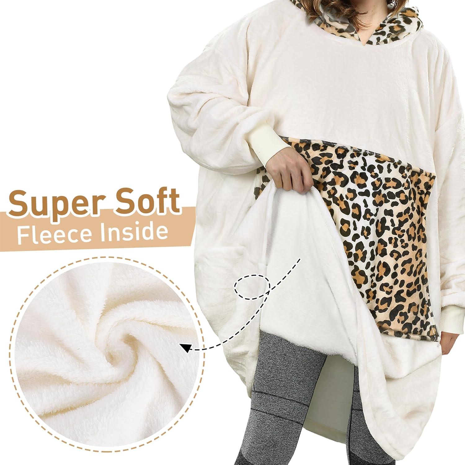 Catalonia Oversized Blanket Hoodie Sweatshirt, Fleece Pullover with Large Front Pocket, for Adults Men Women(Latte / Fleece)