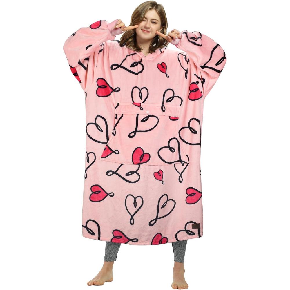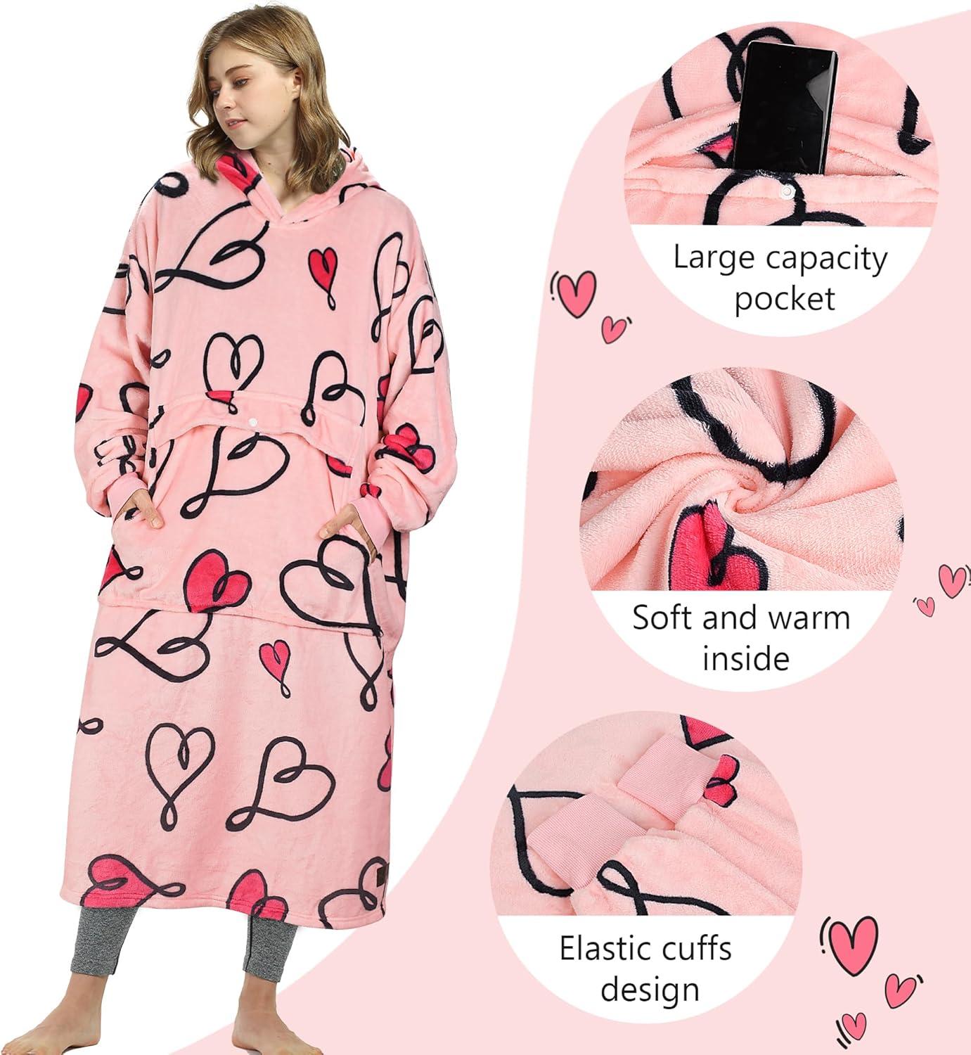 imageCatalonia Oversized Blanket Hoodie Sweatshirt Fleece Pullover with Large Front Pocket for Adults Men WomenLove Artankle Length