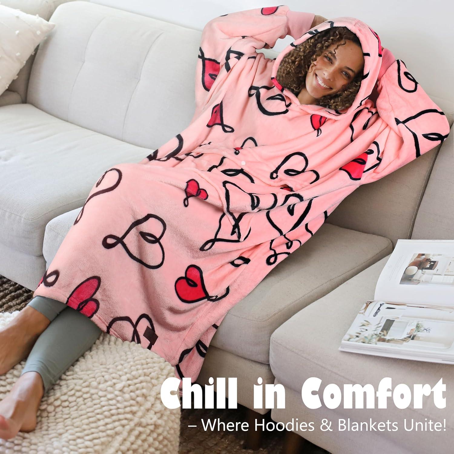 Catalonia Oversized Blanket Hoodie Sweatshirt, Fleece Pullover with Large Front Pocket, for Adults Men Women(Love Art-ankle Length)