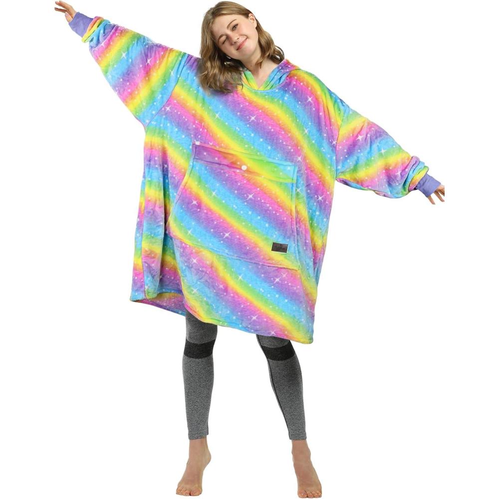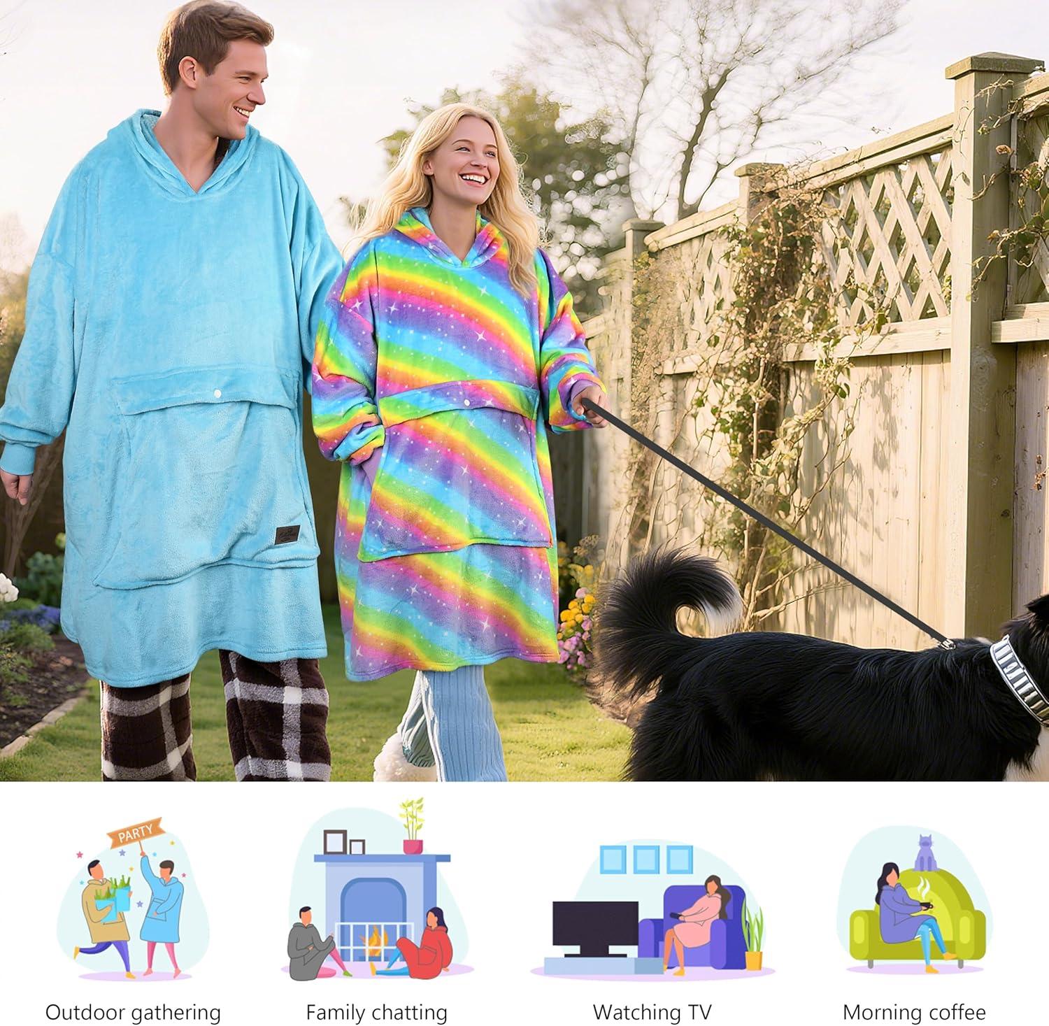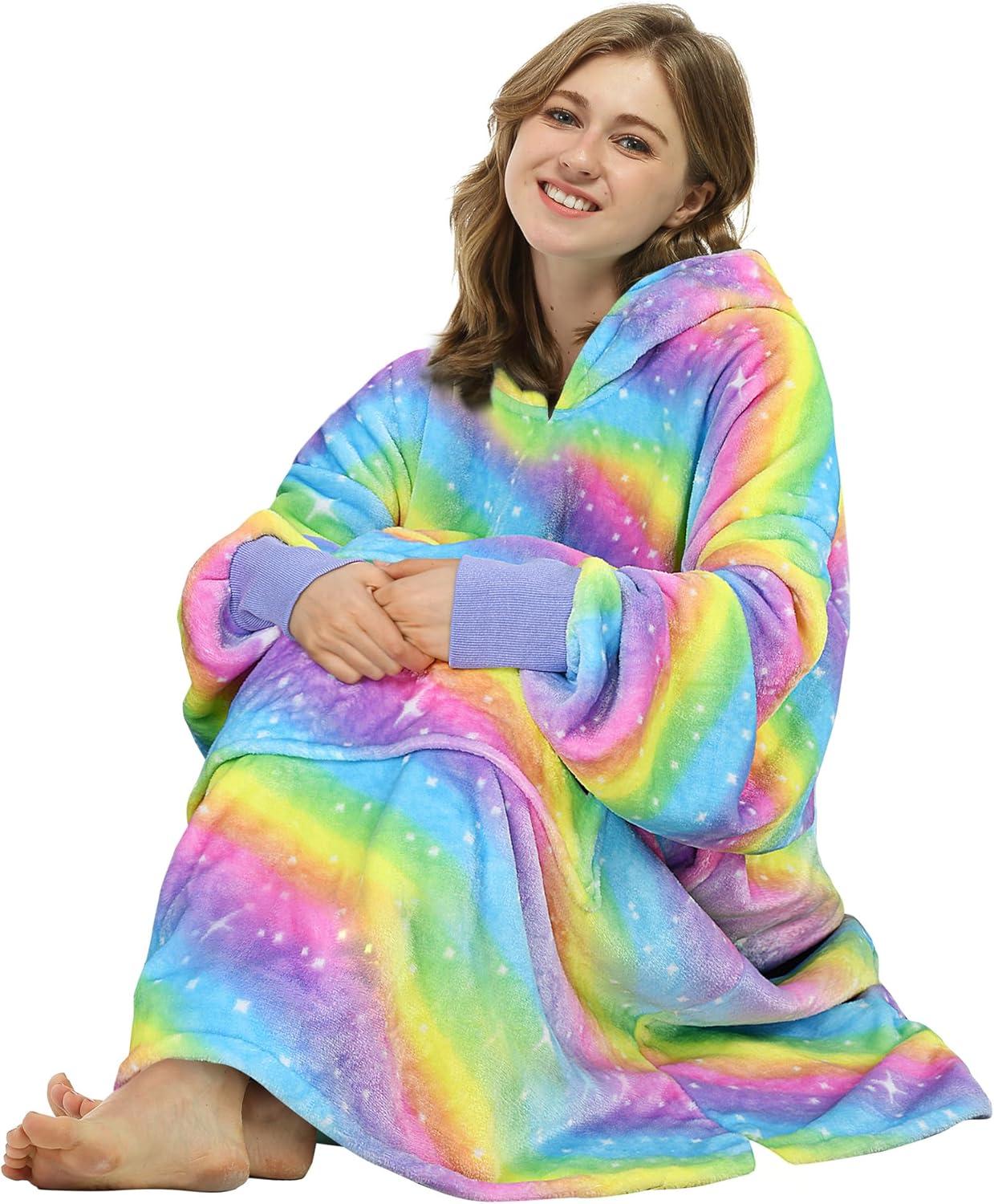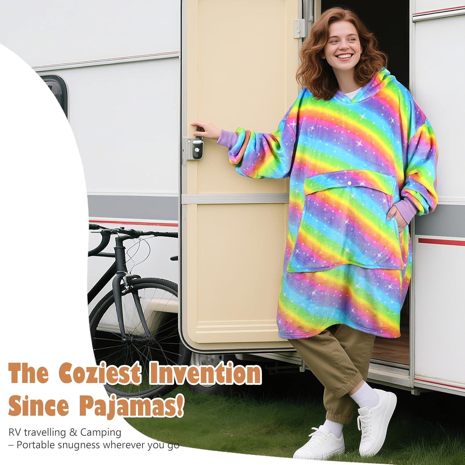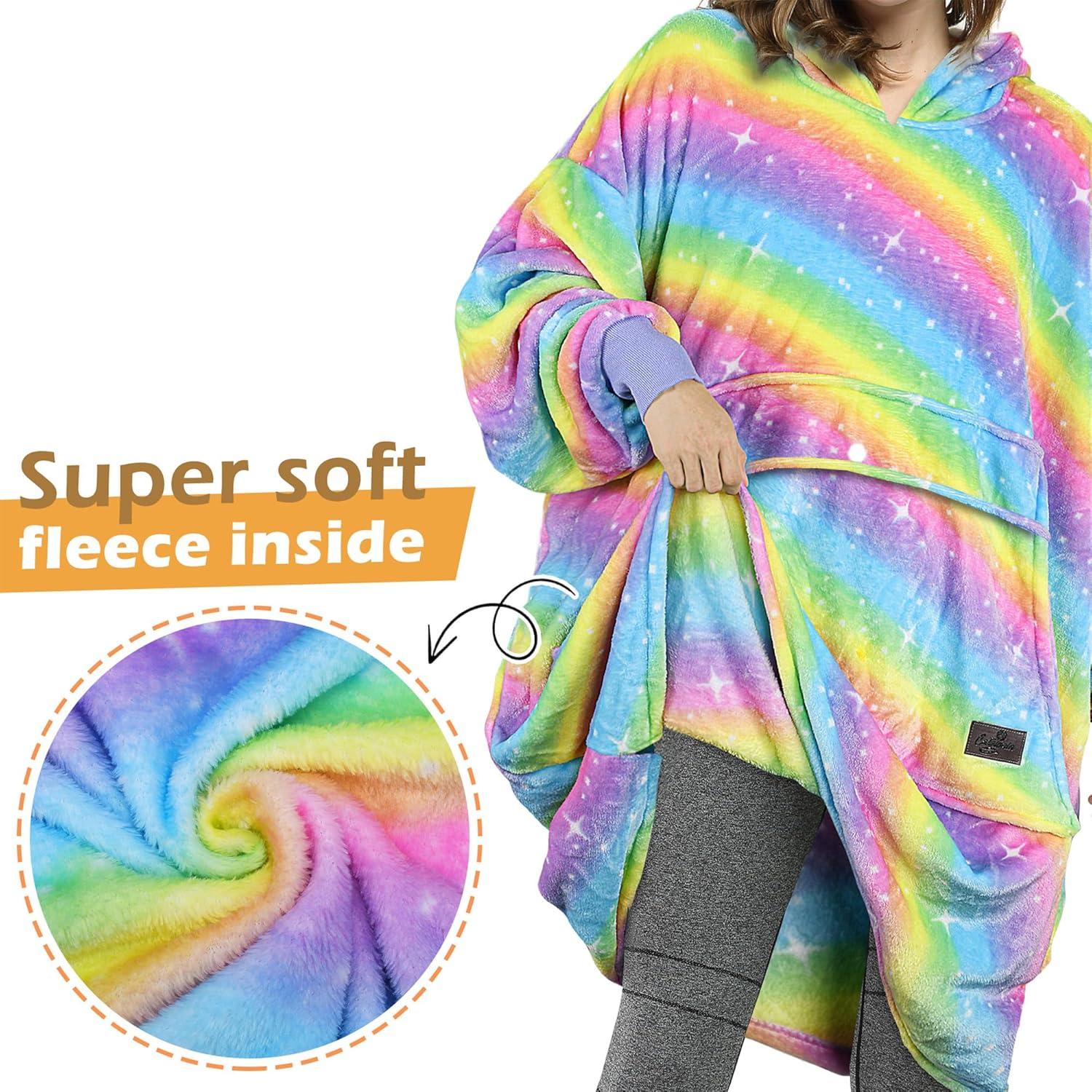 Catalonia Oversized Blanket Hoodie Sweatshirt, Fleece Pullover with Large Front Pocket, for Adults Men Women(Rainbow / Fleece)