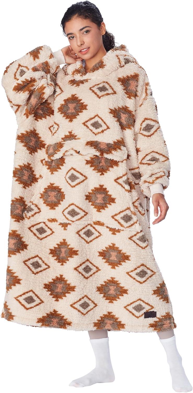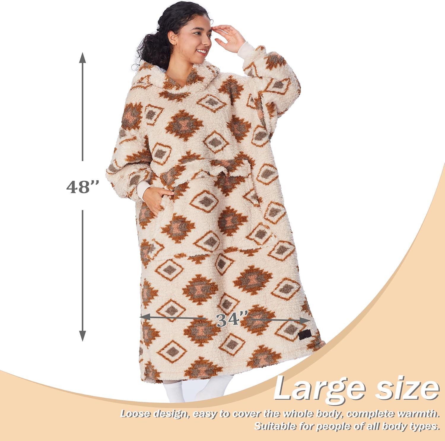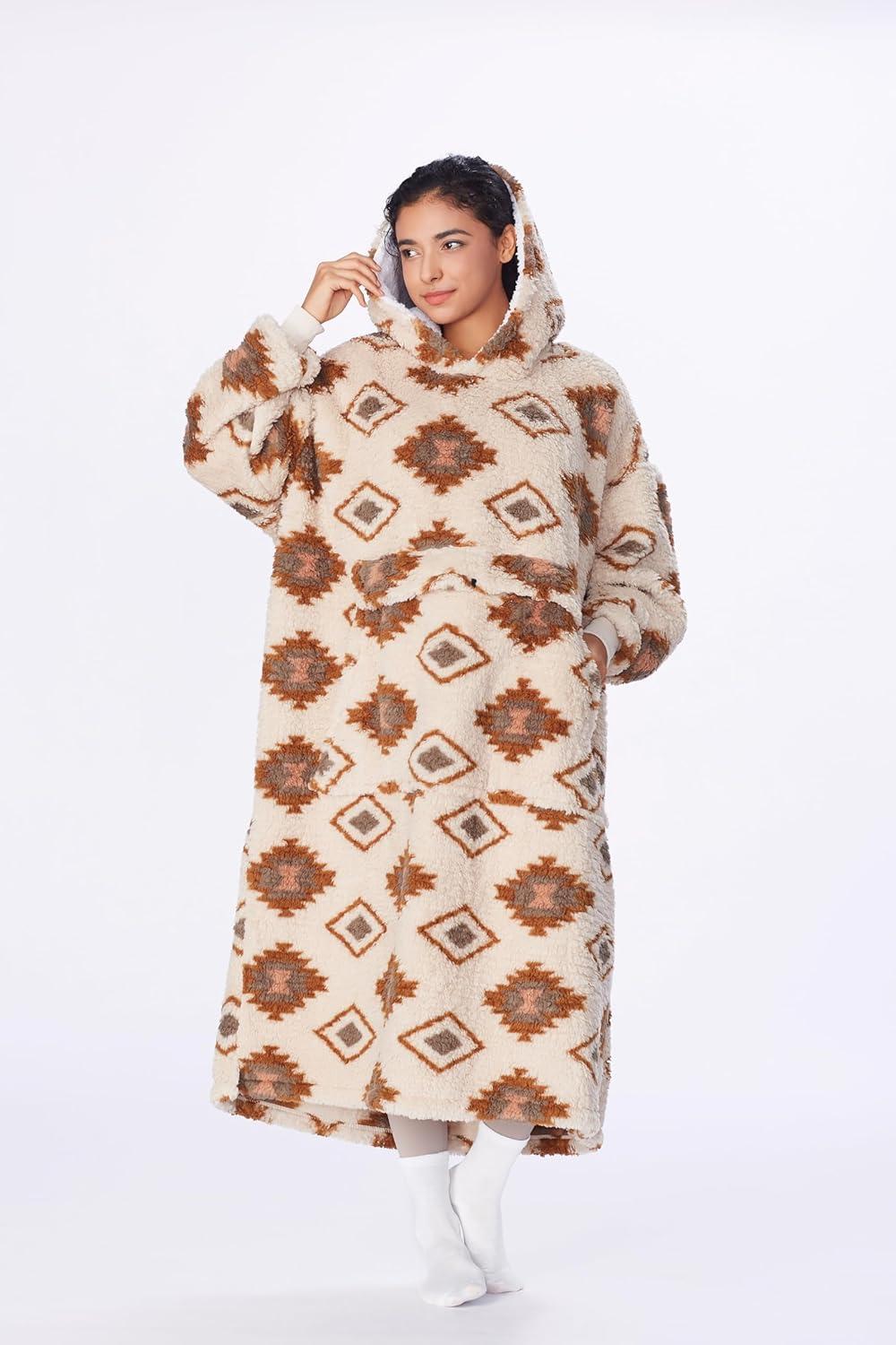 Catalonia Oversized Blanket Hoodie Sweatshirt, Fleece Pullover with Large Front Pocket for Adults Men Women(Southwest-extra Long)