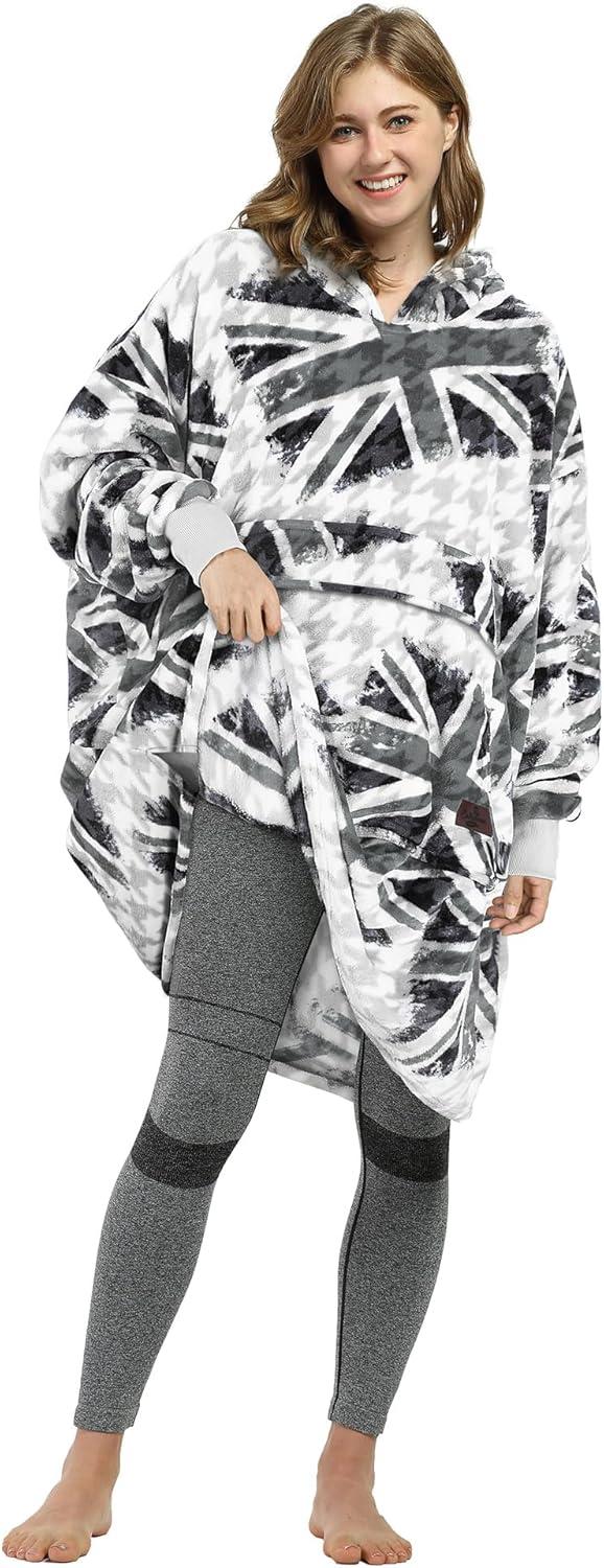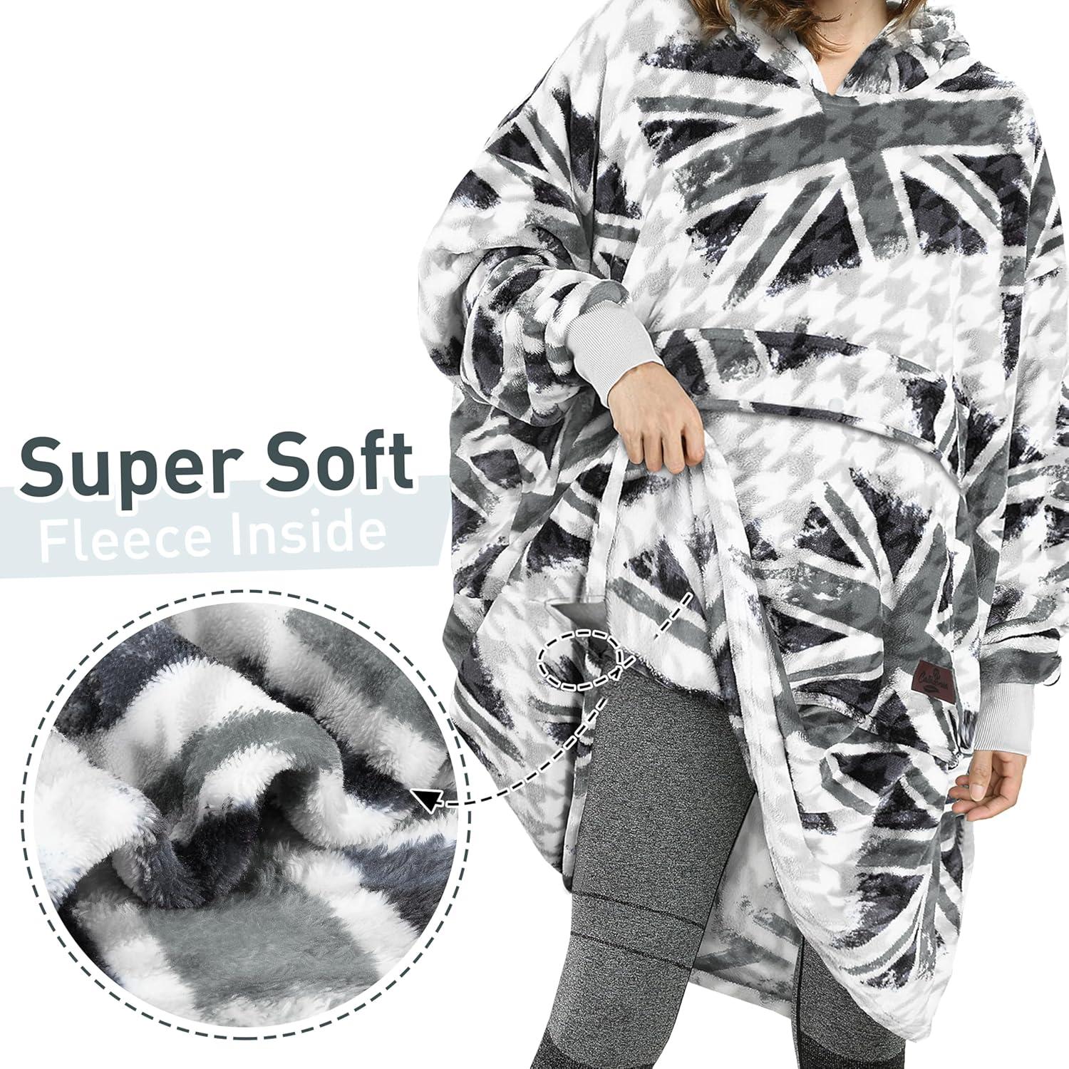 Catalonia Oversized Blanket Hoodie Sweatshirt, Fleece Pullover with Large Front Pocket, for Adults Men Women(Union Flag Gray / Fleece)