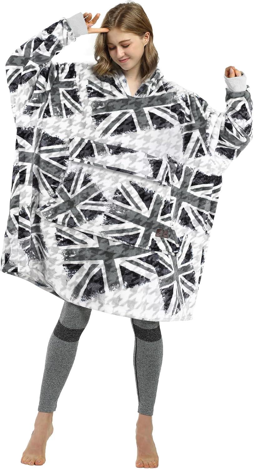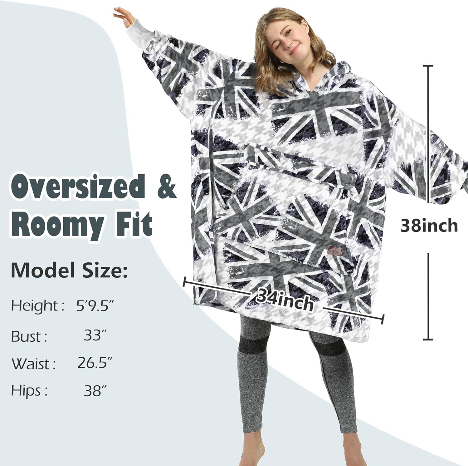 imageCatalonia Oversized Blanket Hoodie Sweatshirt Fleece Pullover with Large Front Pocket for Adults Men WomenUnion Flag Gray  Fleece