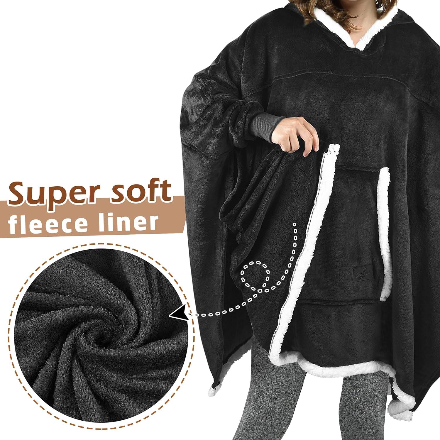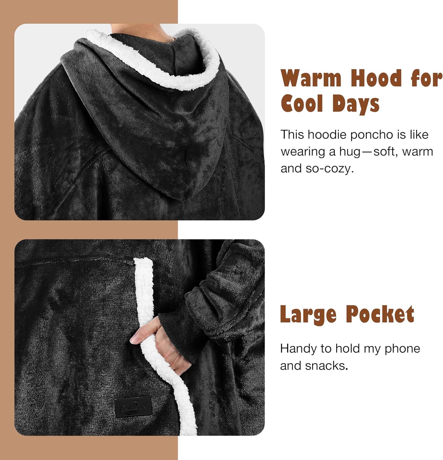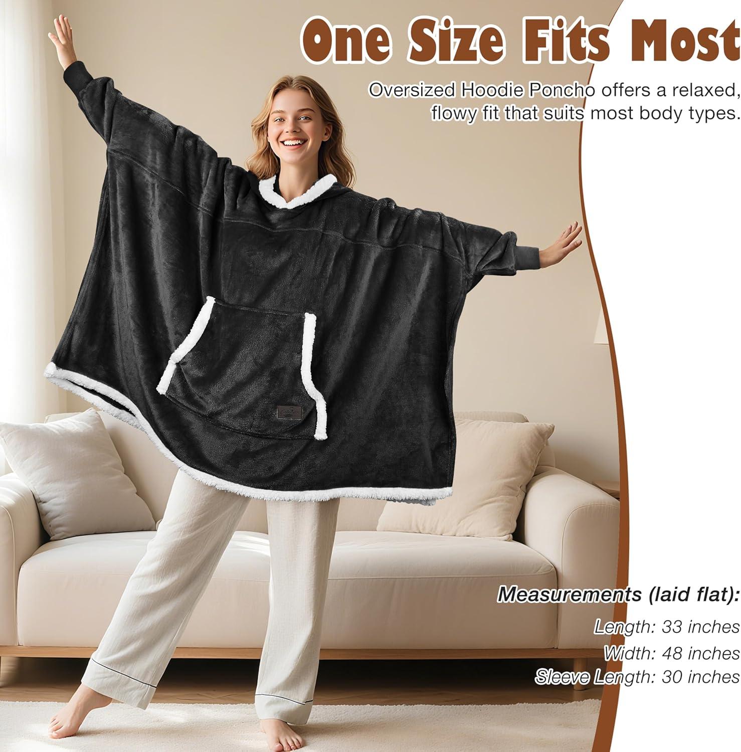 Catalonia Oversized Hoodie Sweatshirt Poncho, Casual Hoodie Cape, Batwing Coat Pullover Blanket, Comfortable, Roomy | Gift for Adults Women(Black)