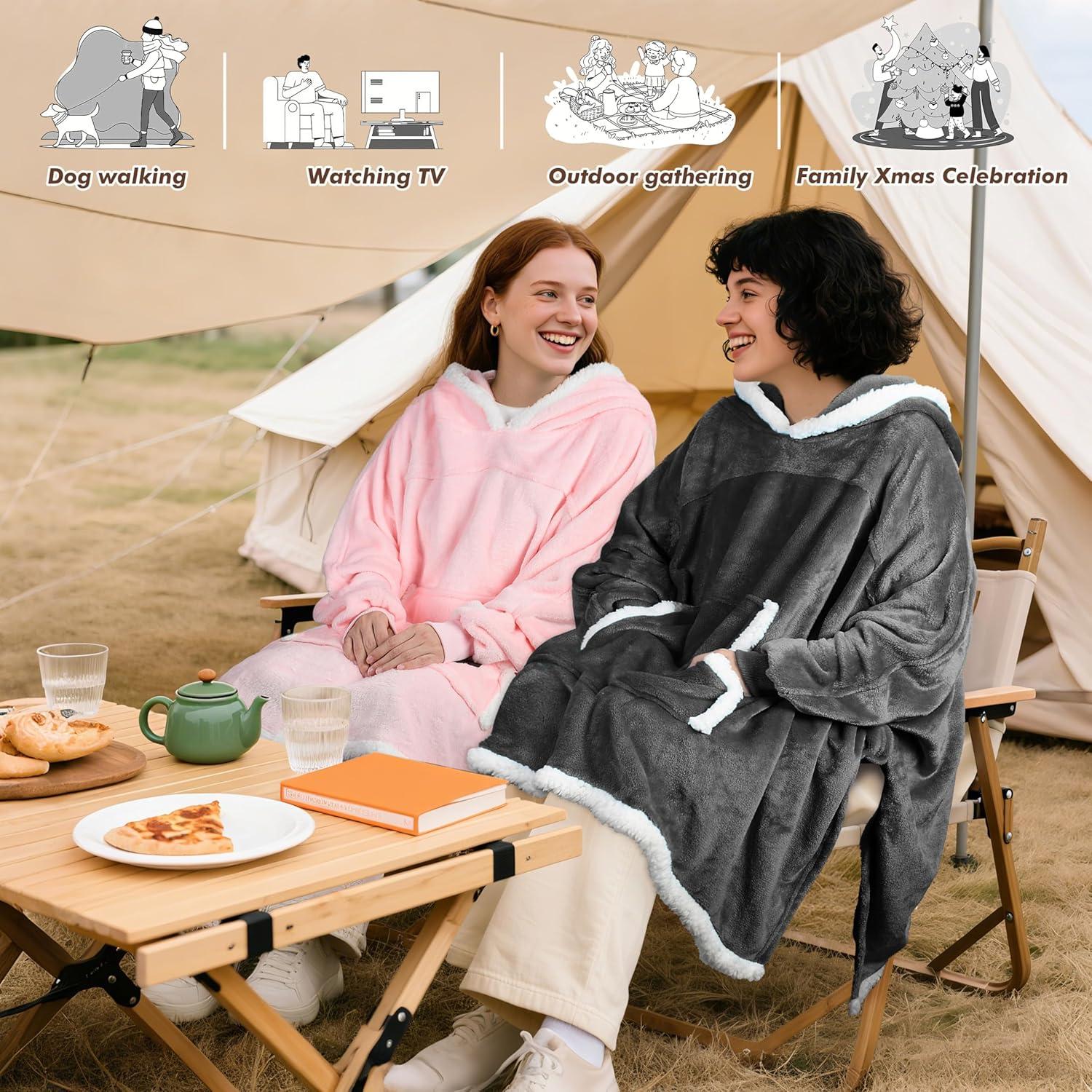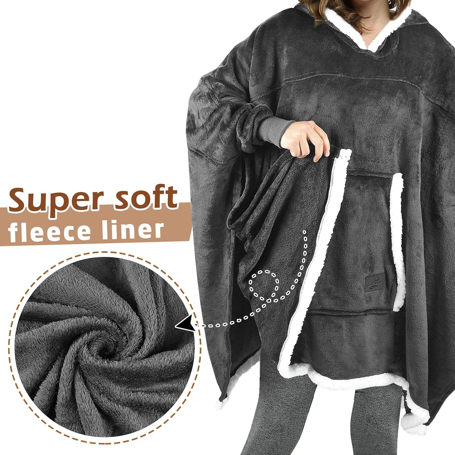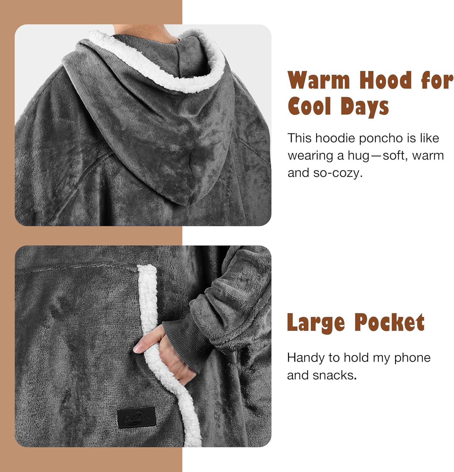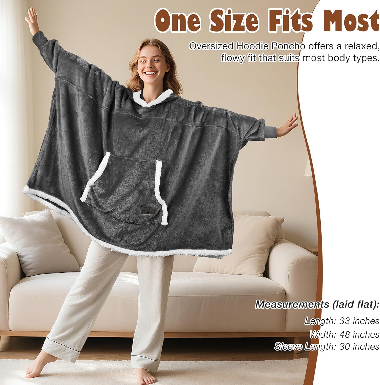 Catalonia Oversized Hoodie Sweatshirt Poncho, Casual Hoodie Cape, Batwing Coat Pullover Blanket, Comfortable, Roomy | Gift for Adults Women(Grey)