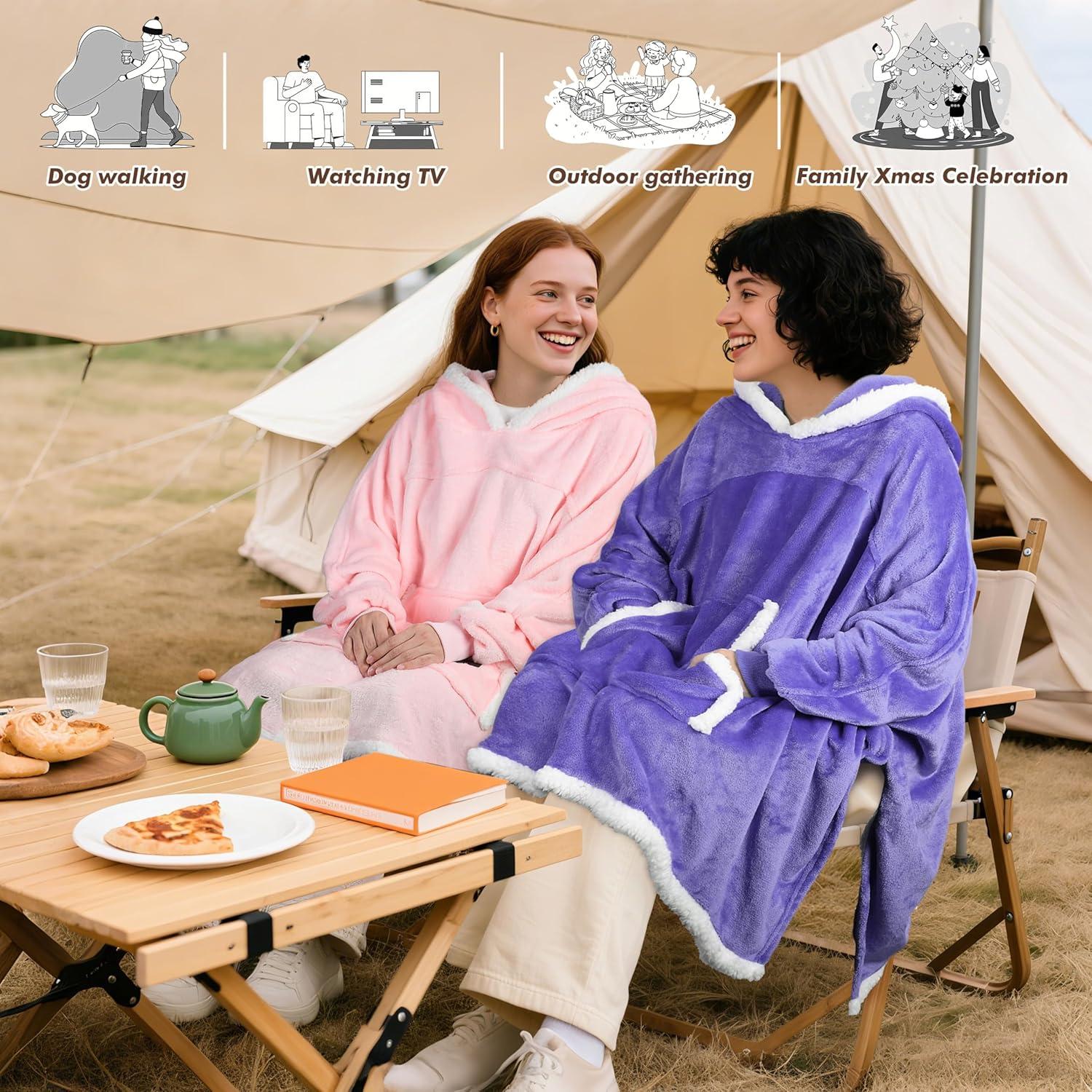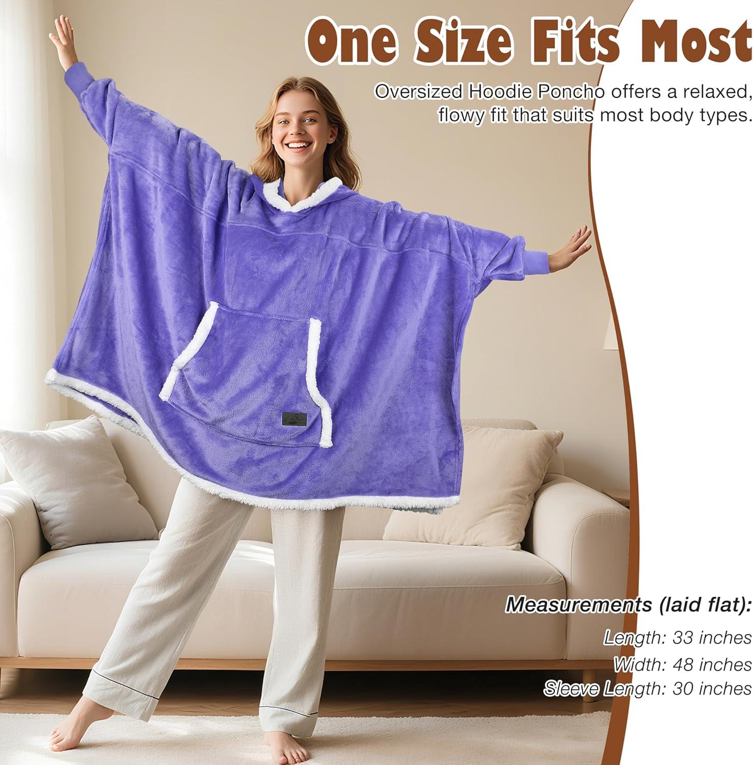 Catalonia Oversized Hoodie Sweatshirt Poncho, Casual Hoodie Cape, Batwing Coat Pullover Blanket, Comfortable, Roomy | Gift for Adults Women(Purple)