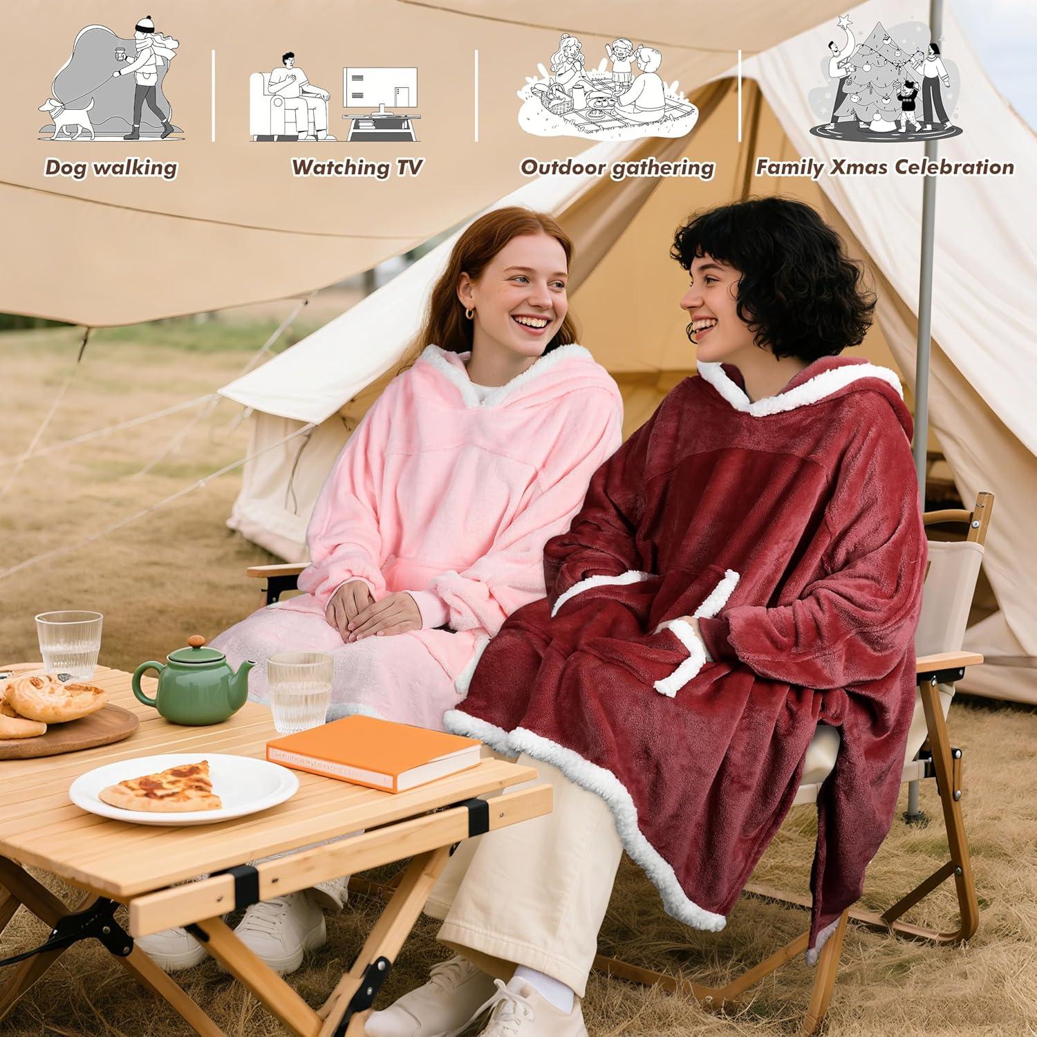 Catalonia Oversized Blanket Hoodie Sweatshirt Wearable Lounging Fleece Pullover Gift for Adults Women Men Kids Wife PurplePink  Faux Shearling