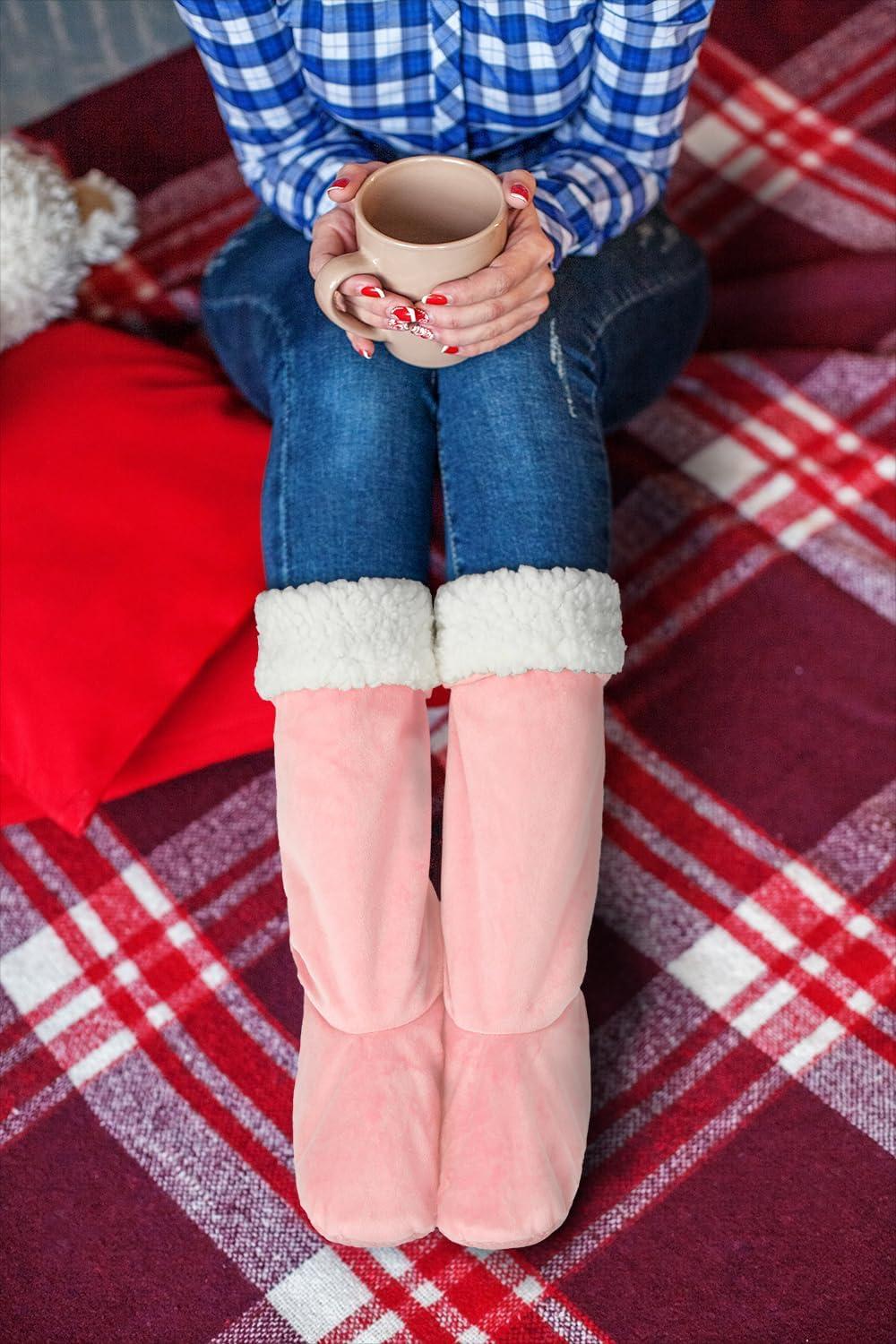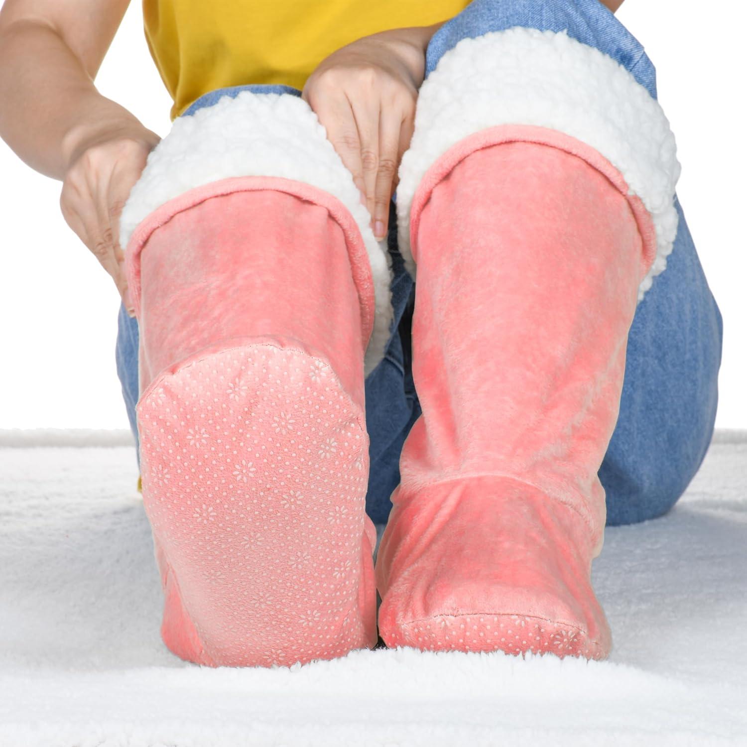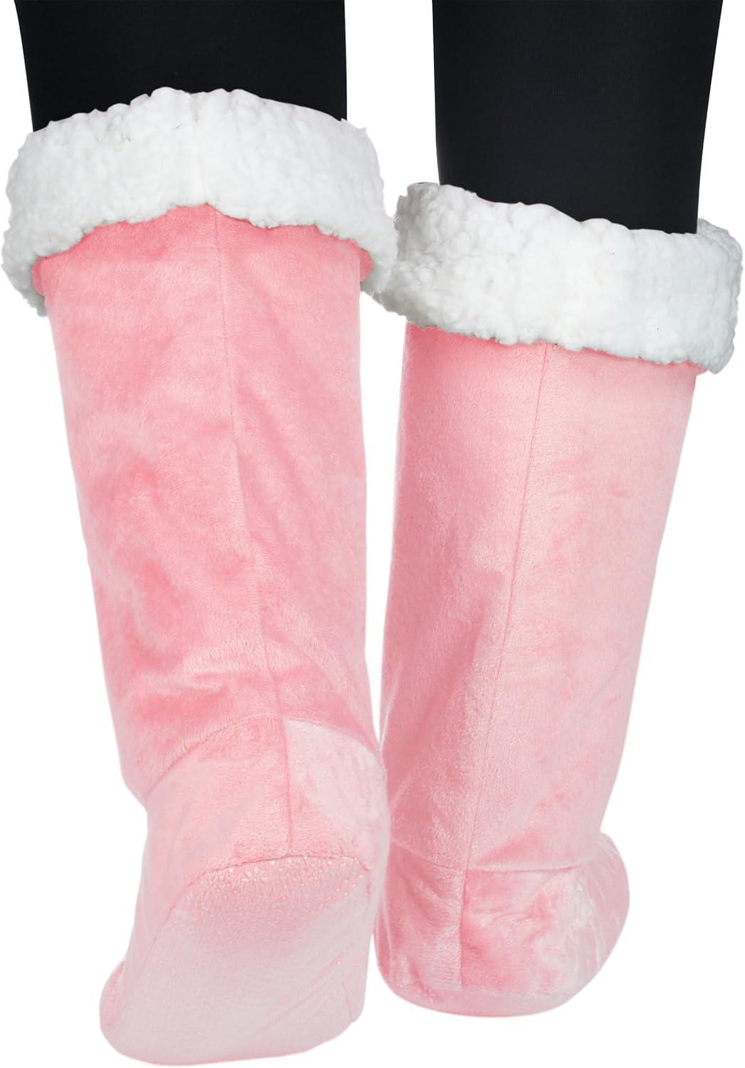 Catalonia Sherpa Slipper Socks for Women,Winter Indoor Home Non Skid Booties,Soft,Warm,Fluffy(Pink)