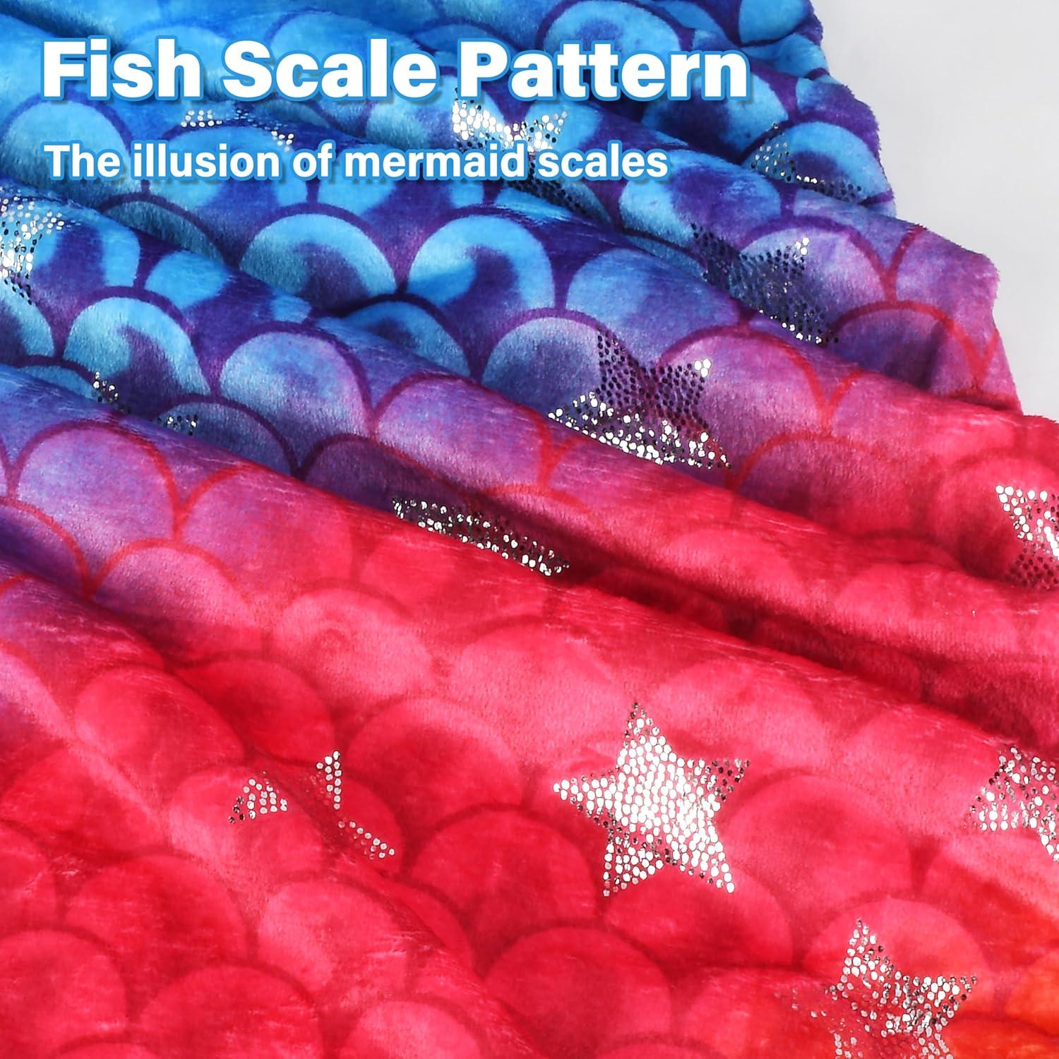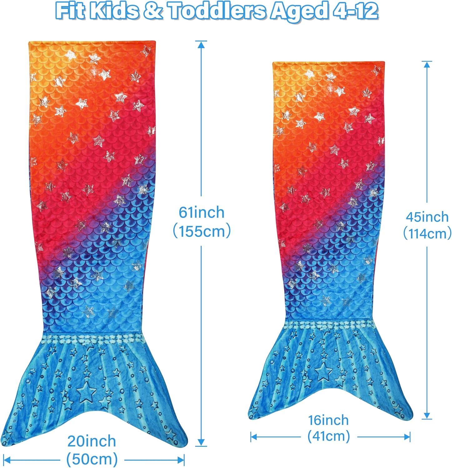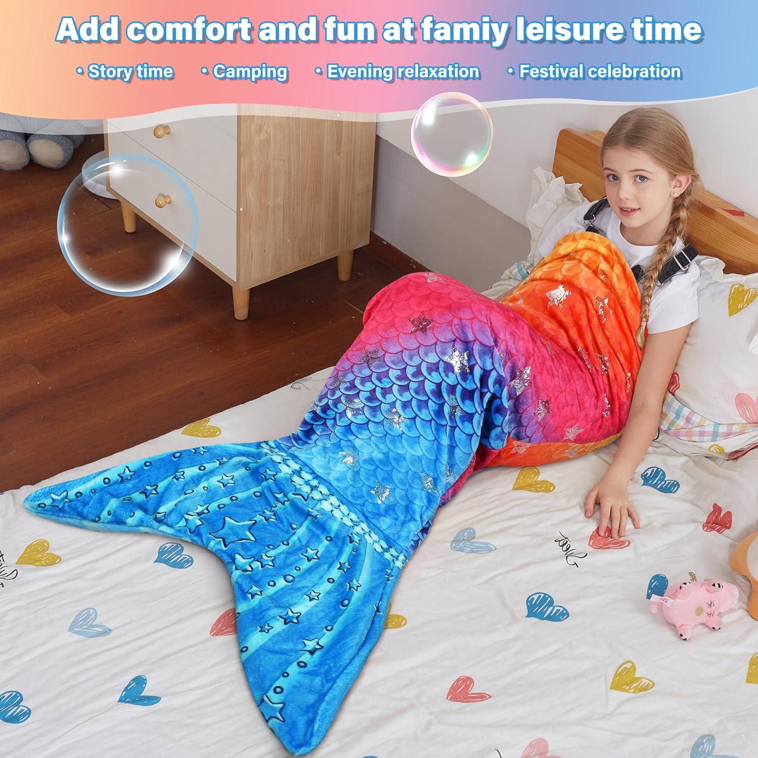 Catalonia Ultra Soft Mermaid Tail Blanket for Kids, Fish Tail Snuggly Blanket, Cozy Fleece Mermaid Gift for Girls Toddlers(Rainbow Sparkling Stars)