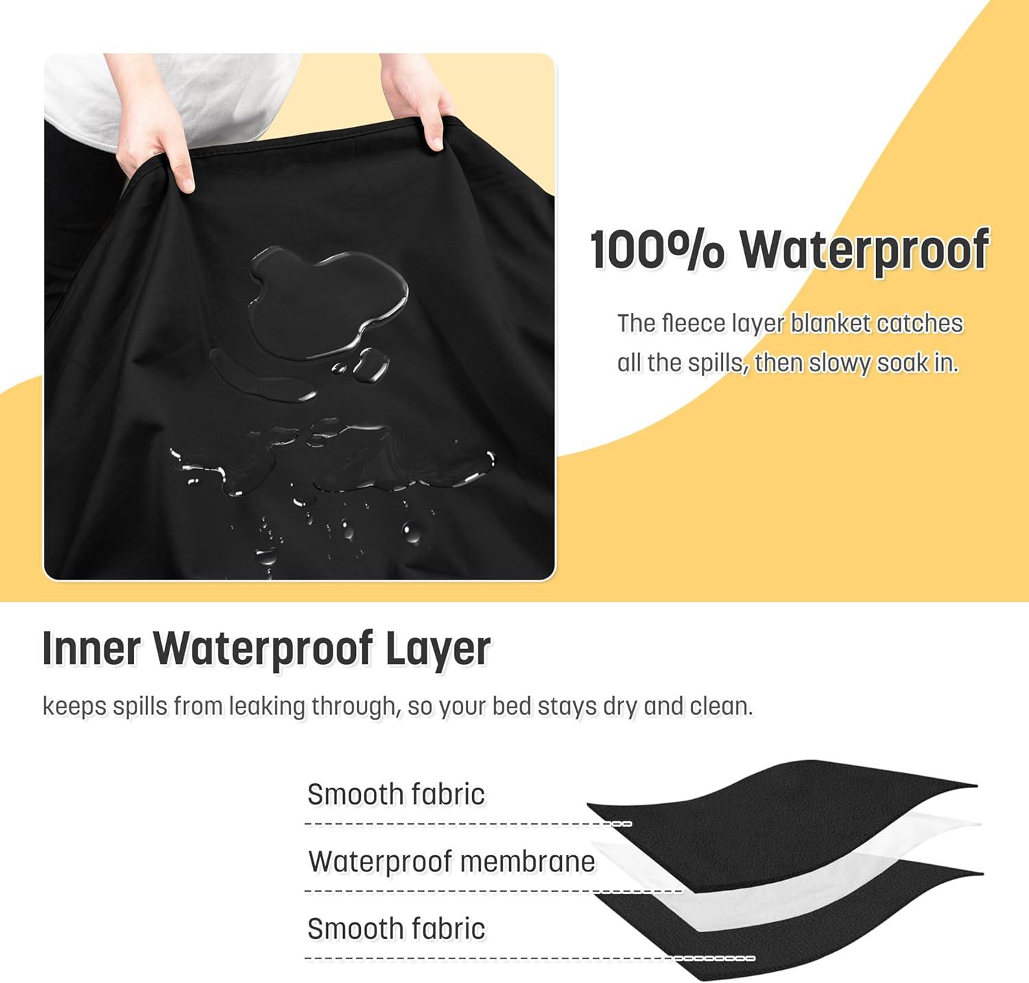 Catalonia Waterproof Reversible Blanket for Bed, Leak Proof & Stain Proof Bed Cover for Sofa, Couch(Black)