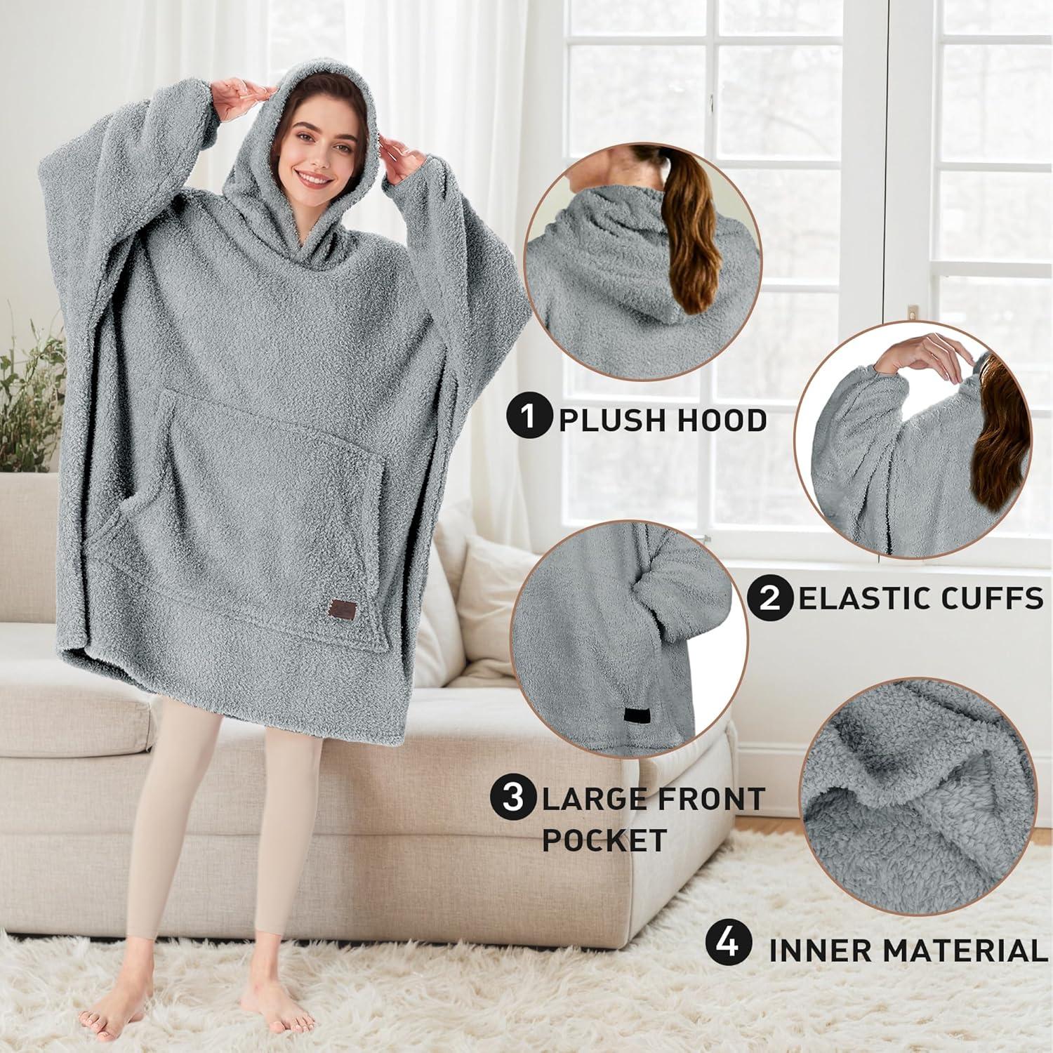 Catalonia Wearable Blanket Hoodie – Oversized Hoodie Blanket, Sweatshirt Blanket for Women Men Adults(Gray)