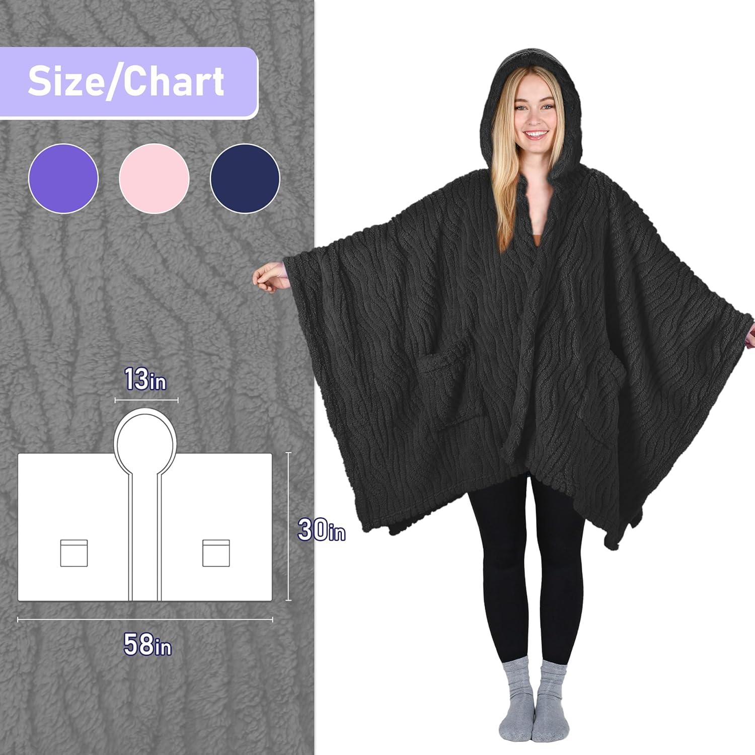 Catalonia Women’s Poncho Cape, Sherpa Cloak Coat, Snuggly Hooded Wearable Blanket, Gift Idea for Mom and Teen Girls(Charcoal Grey)