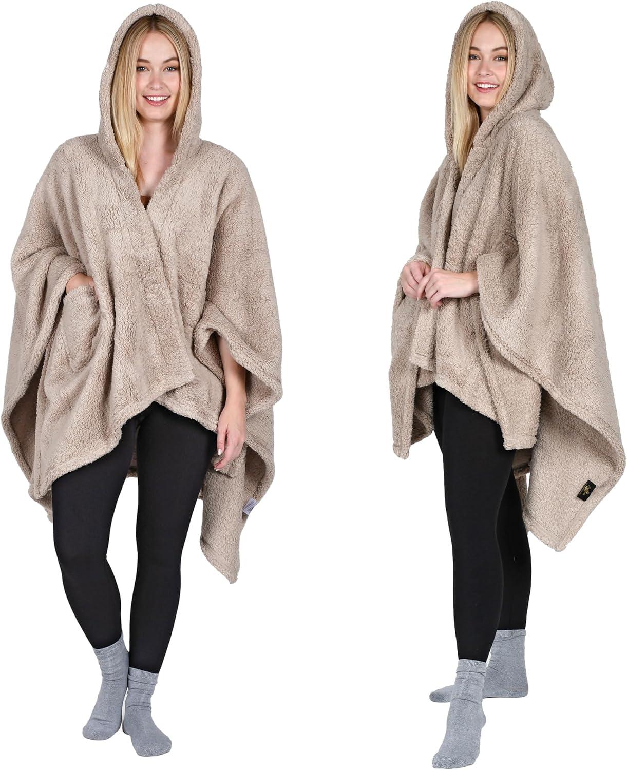 Catalonia Women’s Poncho Cape, Sherpa Cloak Coat, Snuggly Hooded Wearable Blanket, Gift Idea for Mom and Teen Girls(Latte)